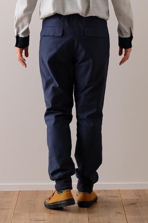 全体にはゆったりとしたサイズ感、ラフでカジュアルなデザインながらも、ディテールにこだわったatelier naruseらしいコットンパンツに仕立てています。
