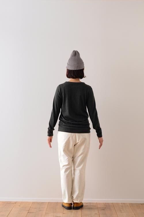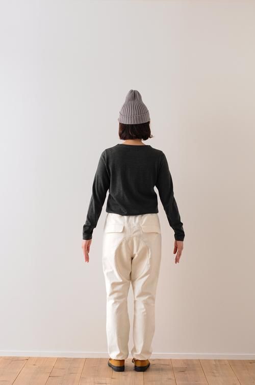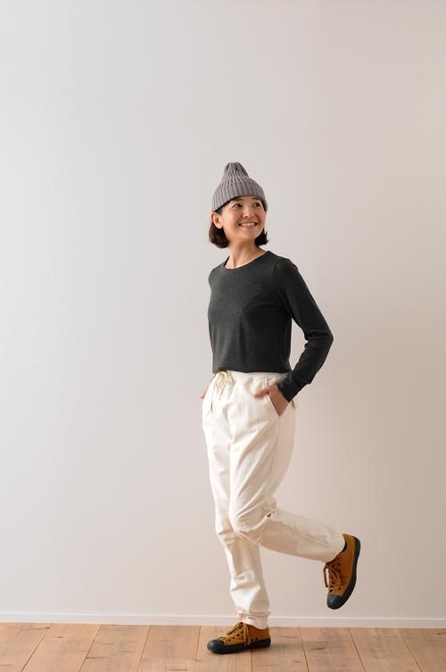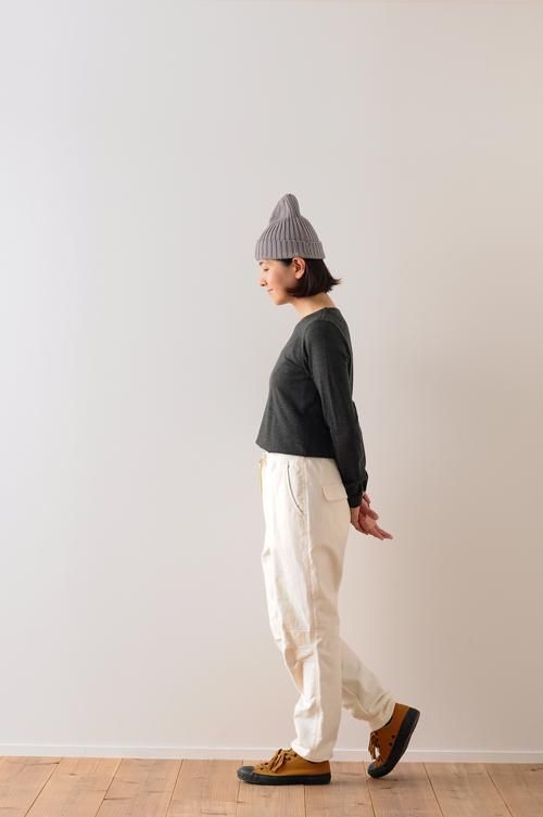 全体にはゆったりとしたサイズ感、ラフでカジュアルなデザインながらも、ディテールにこだわったatelier naruseらしいコットンパンツに仕立てています。
