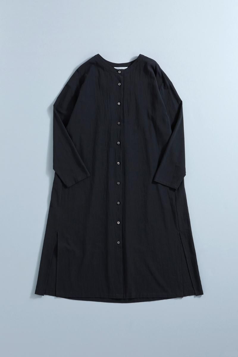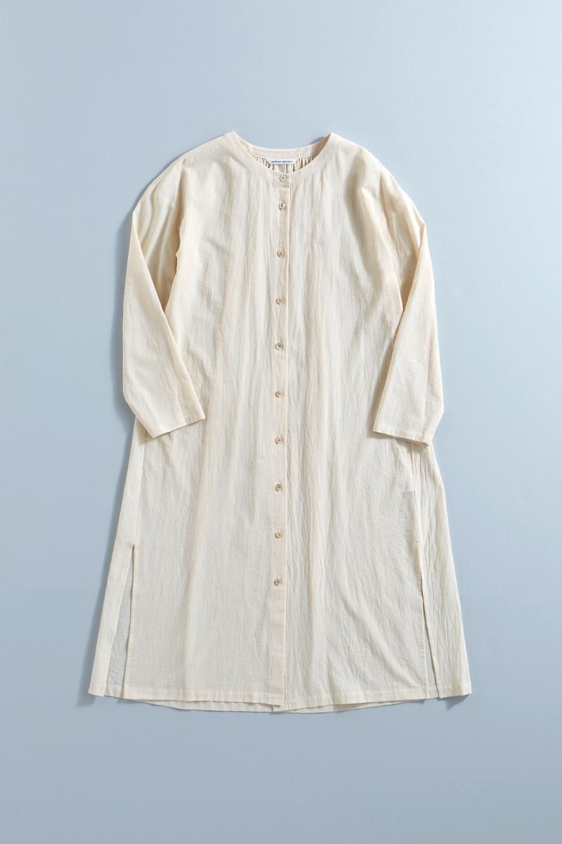 縦長のラインに、サイドには深めのスリットのはいったロング丈のシャツを、サラリとかろやかなコットン地でつくりました。これからの季節、そして真夏まで着ていただける一枚です。