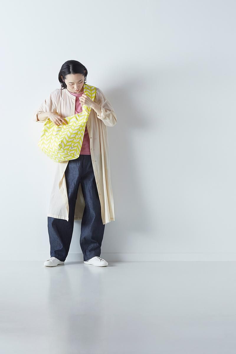 使用している布地は、薄手のかるくて涼しいコットン地。独特な風合い、そして、ナチュラルなしわ感と清涼感があるドライな質感です。 また、ほどよいエイジングもたのしみな生地のため、たくさん、長く着ていただきたい一着です。