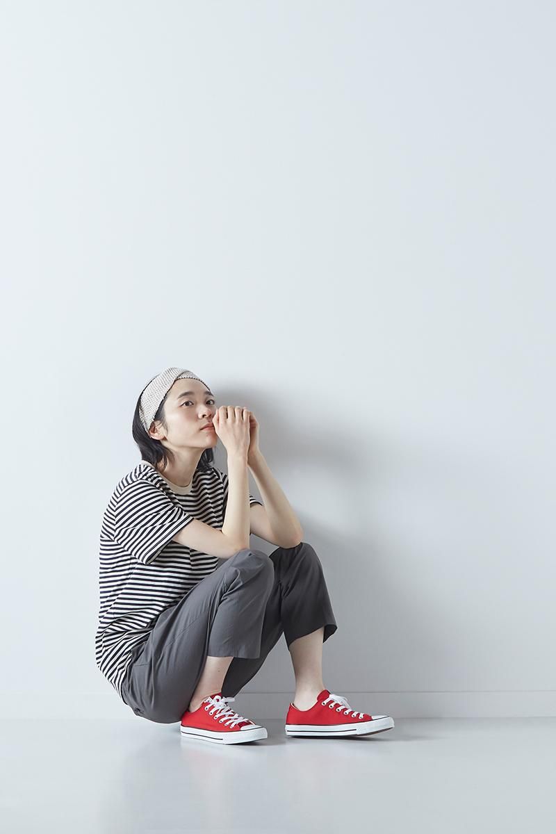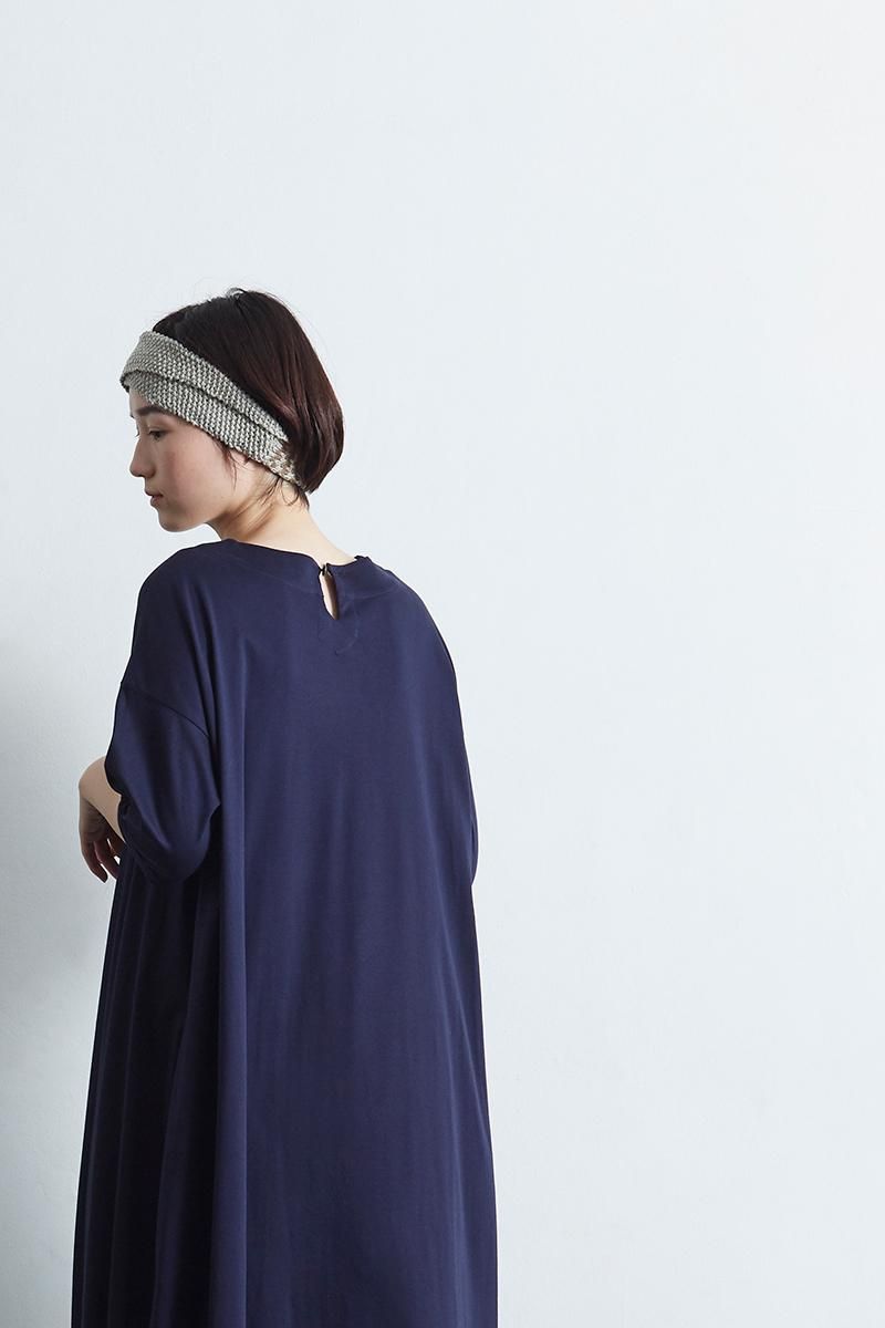 そして、長時間つけていても締めつけがない、かるくて、やさしいつけ心地のニットターバンは、トップからゆるやかに巾のサイズ感を狭くしてゆくことでずれにくい仕様となっているほか、横からの見え感もすっきりと自然です。