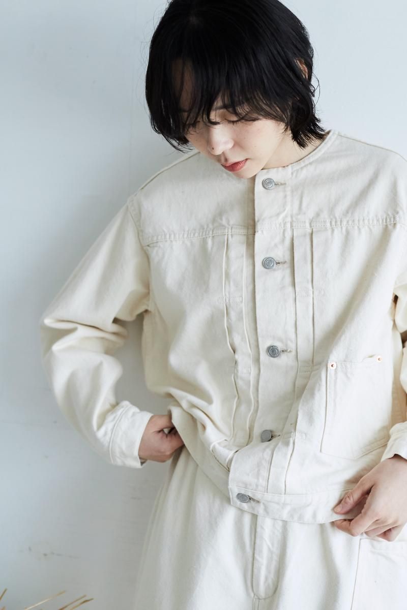 Title | コットンデニム ノーカラージャケット / キナリ |