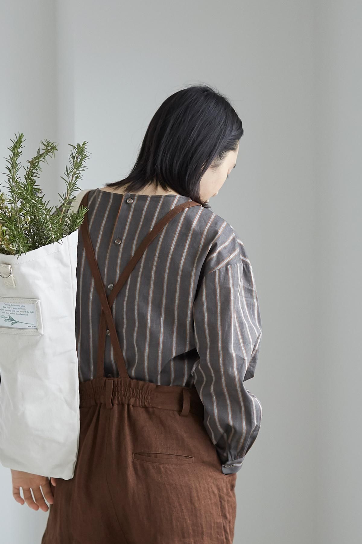 フロントはすっきりとシンプルに。バックにちいさなクルミボタンが並ぶスモックブラウスを、リネンとコットンをミックスしたHerdmans(ハードマン)のコットンリネン地でつくりました。