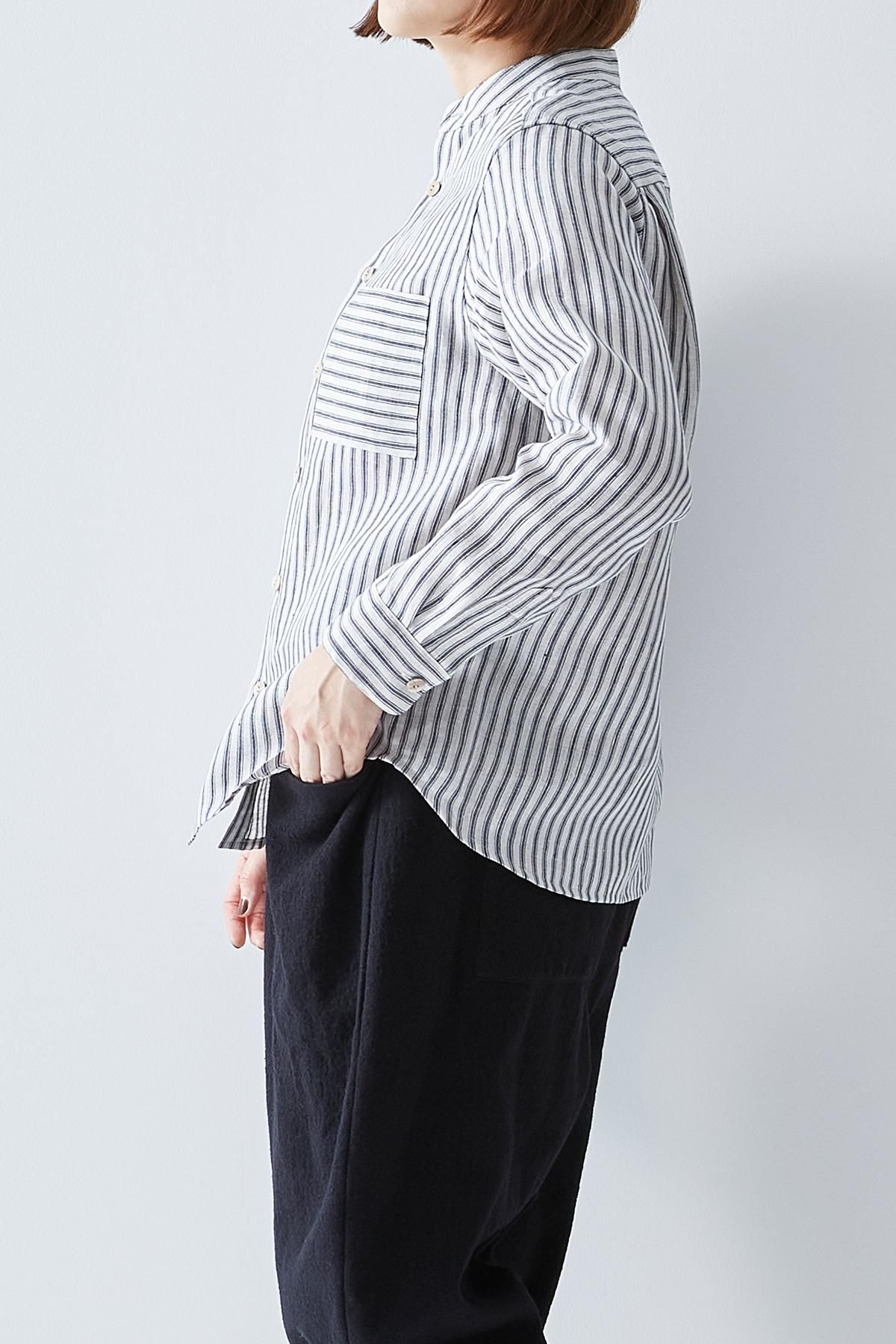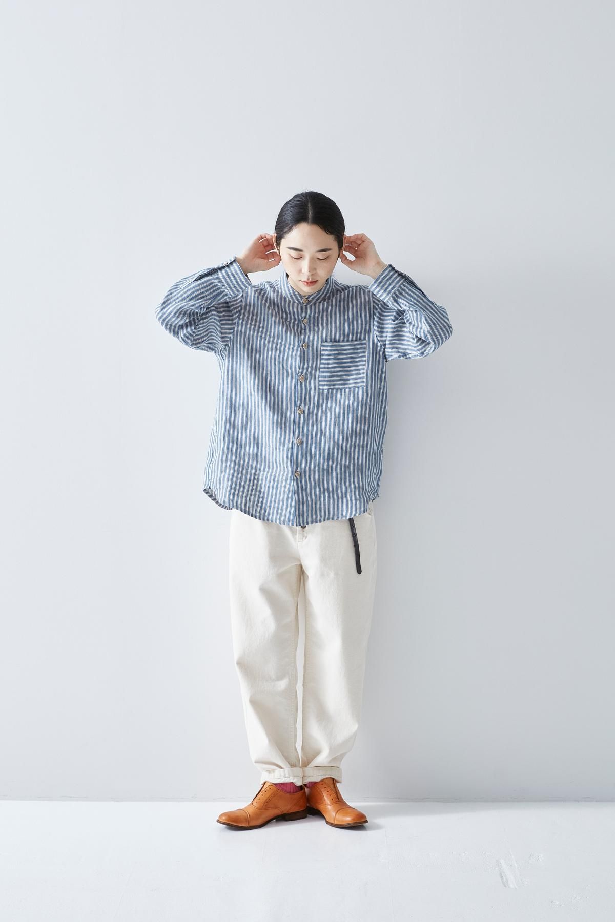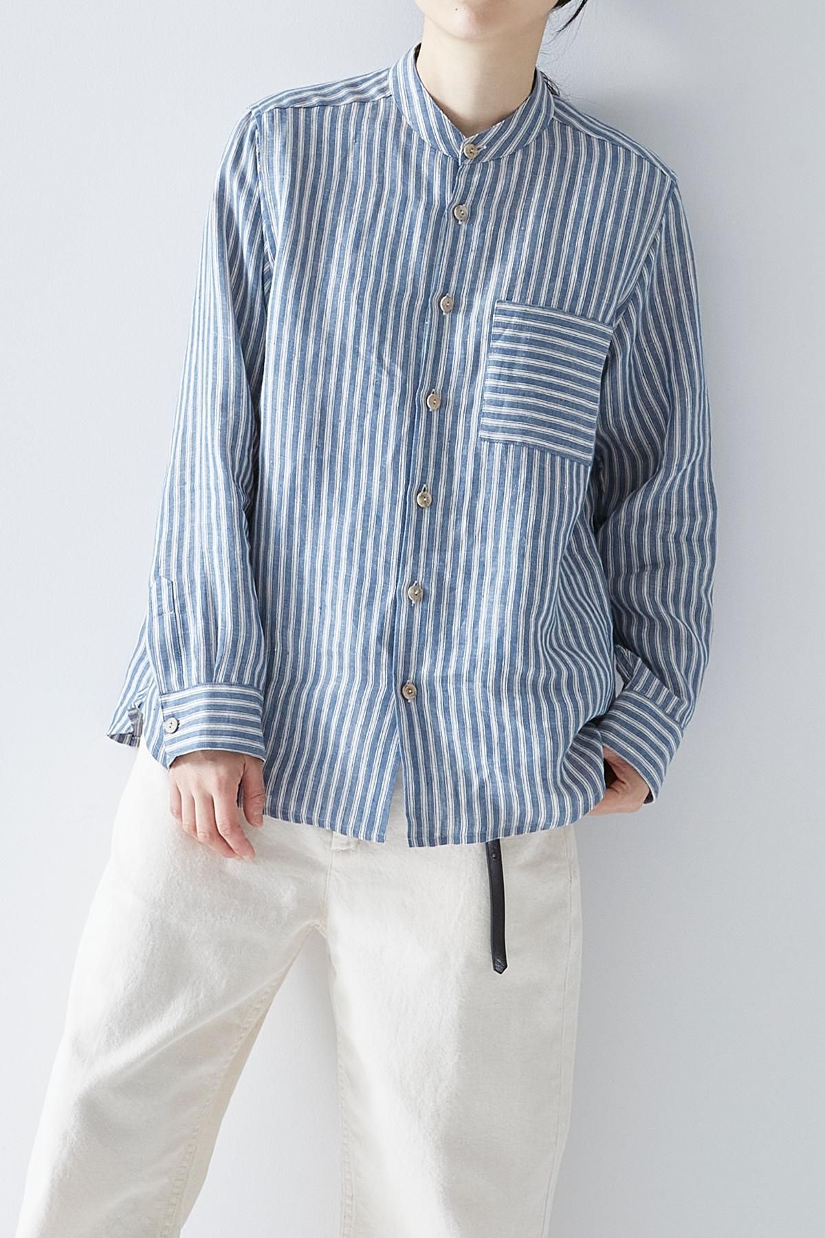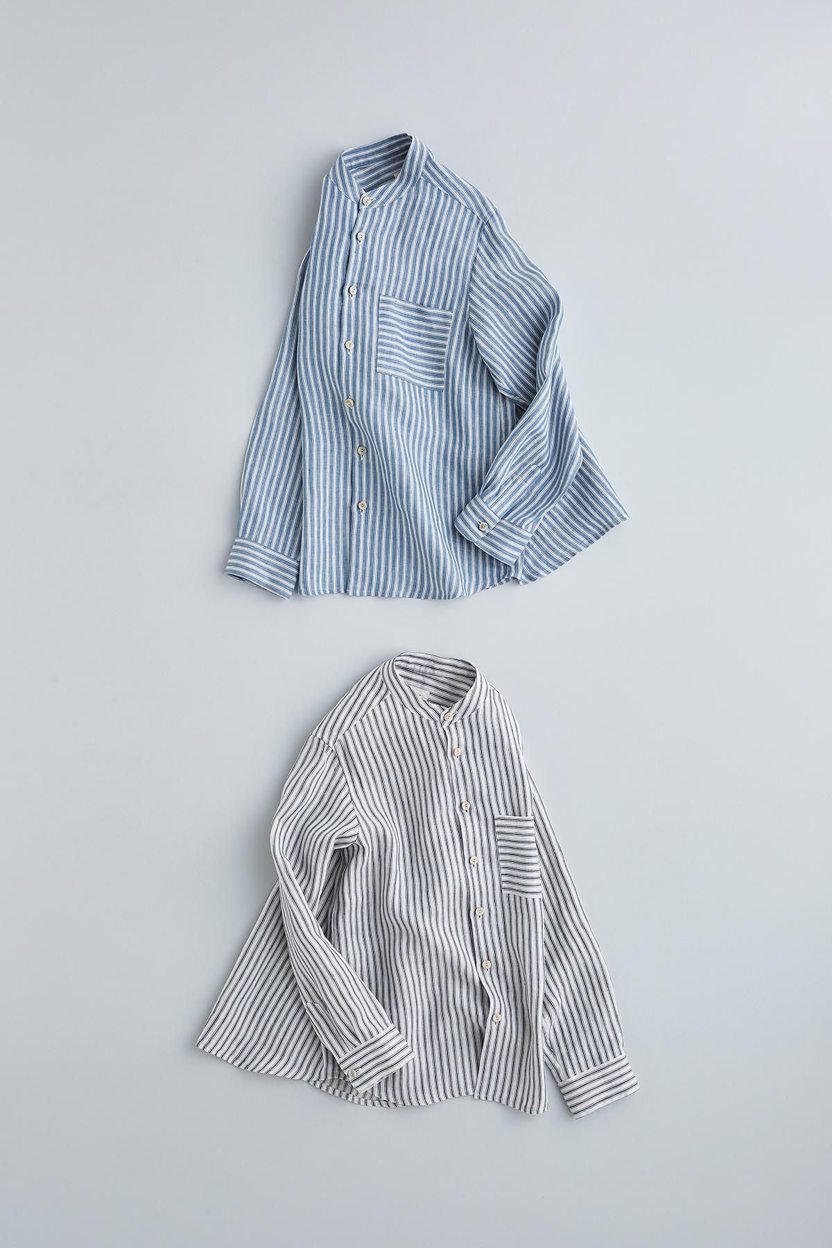 Title | リネンバンドカラーシャツ(ダブルストライプ) |