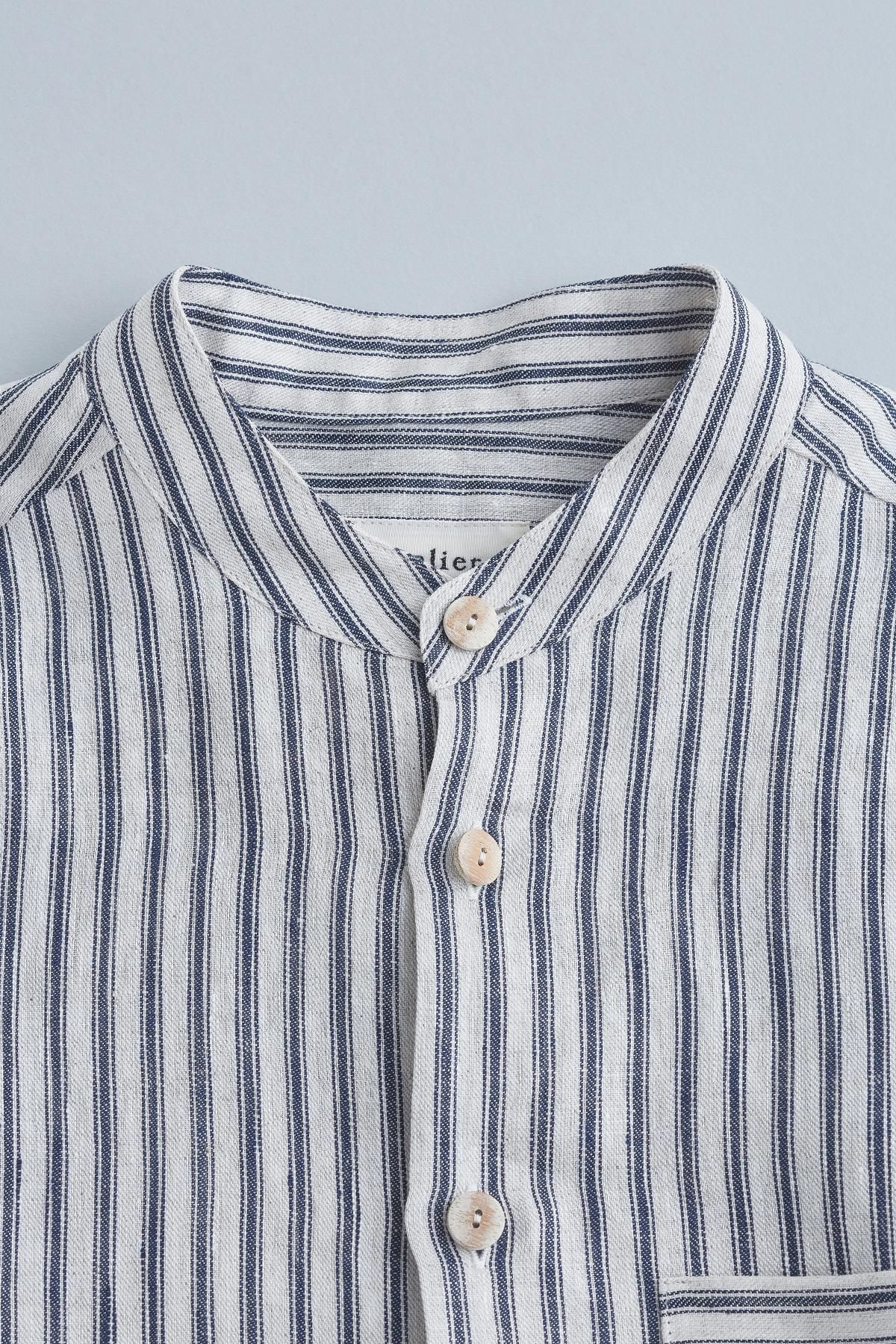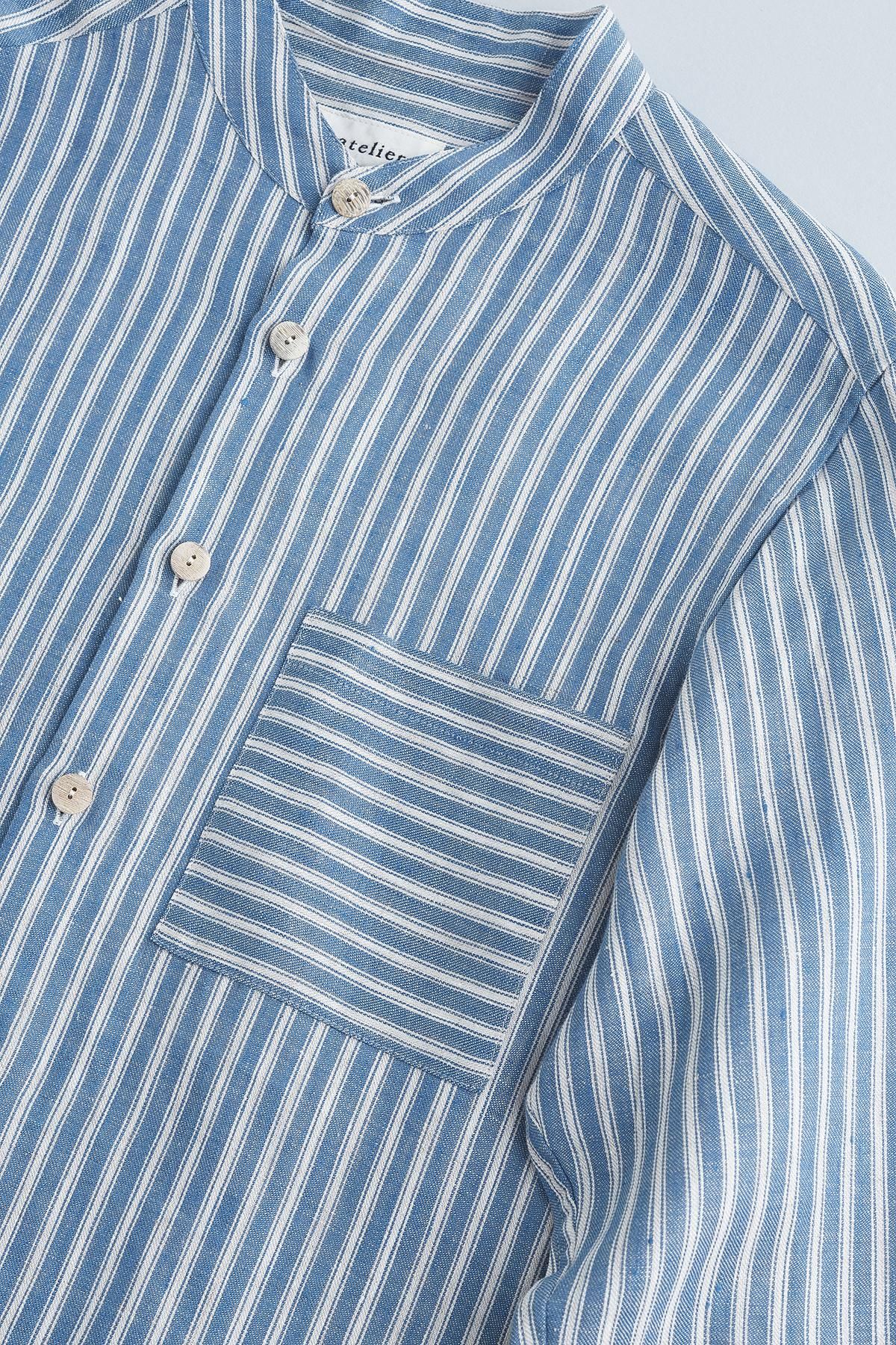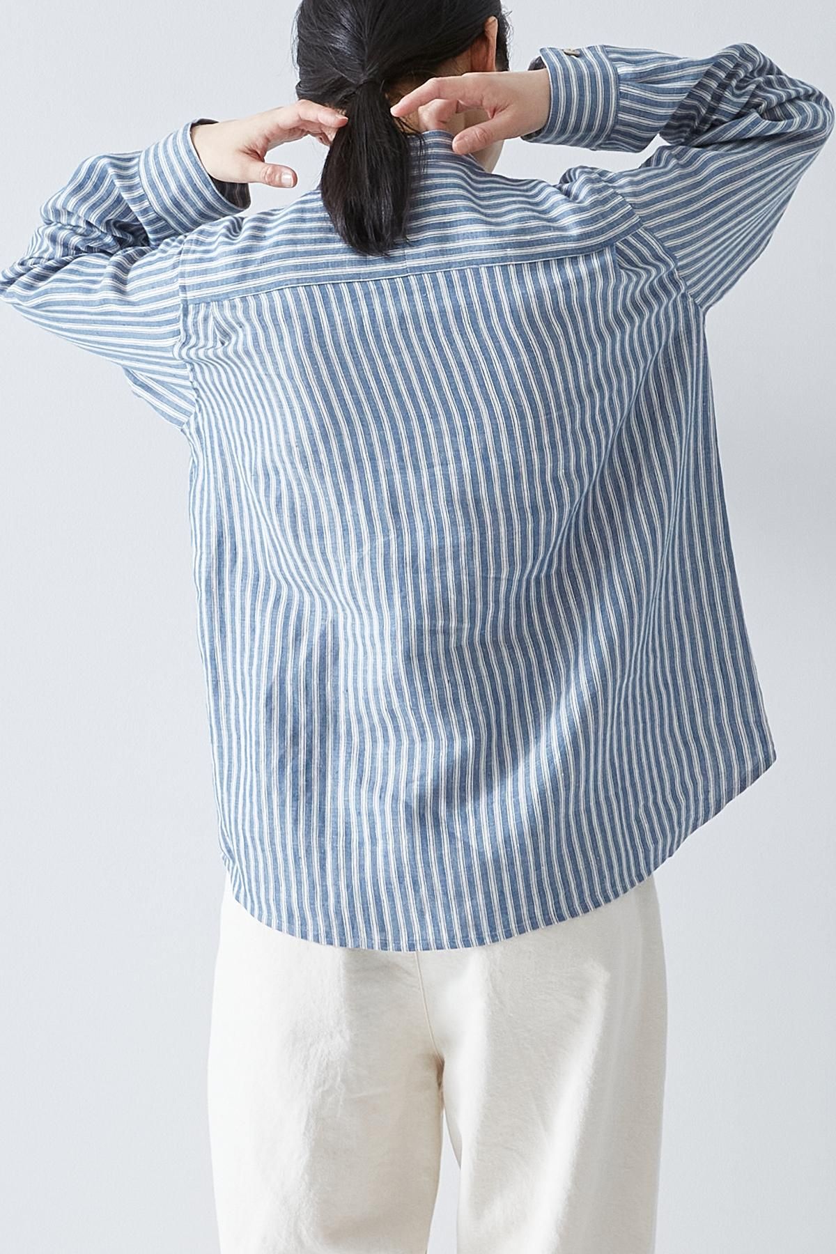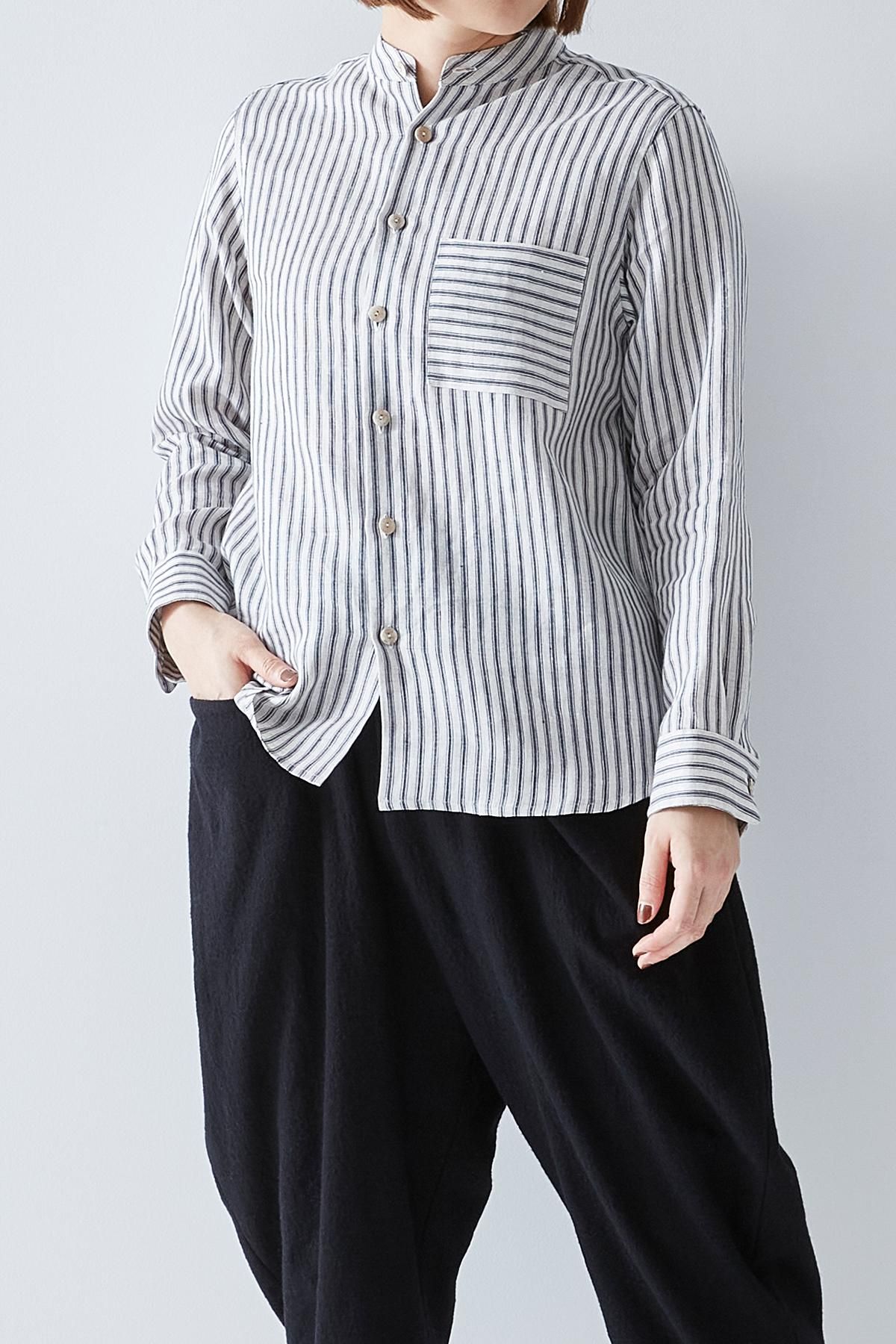 Title | リネンバンドカラーシャツ(ダブルストライプ) |