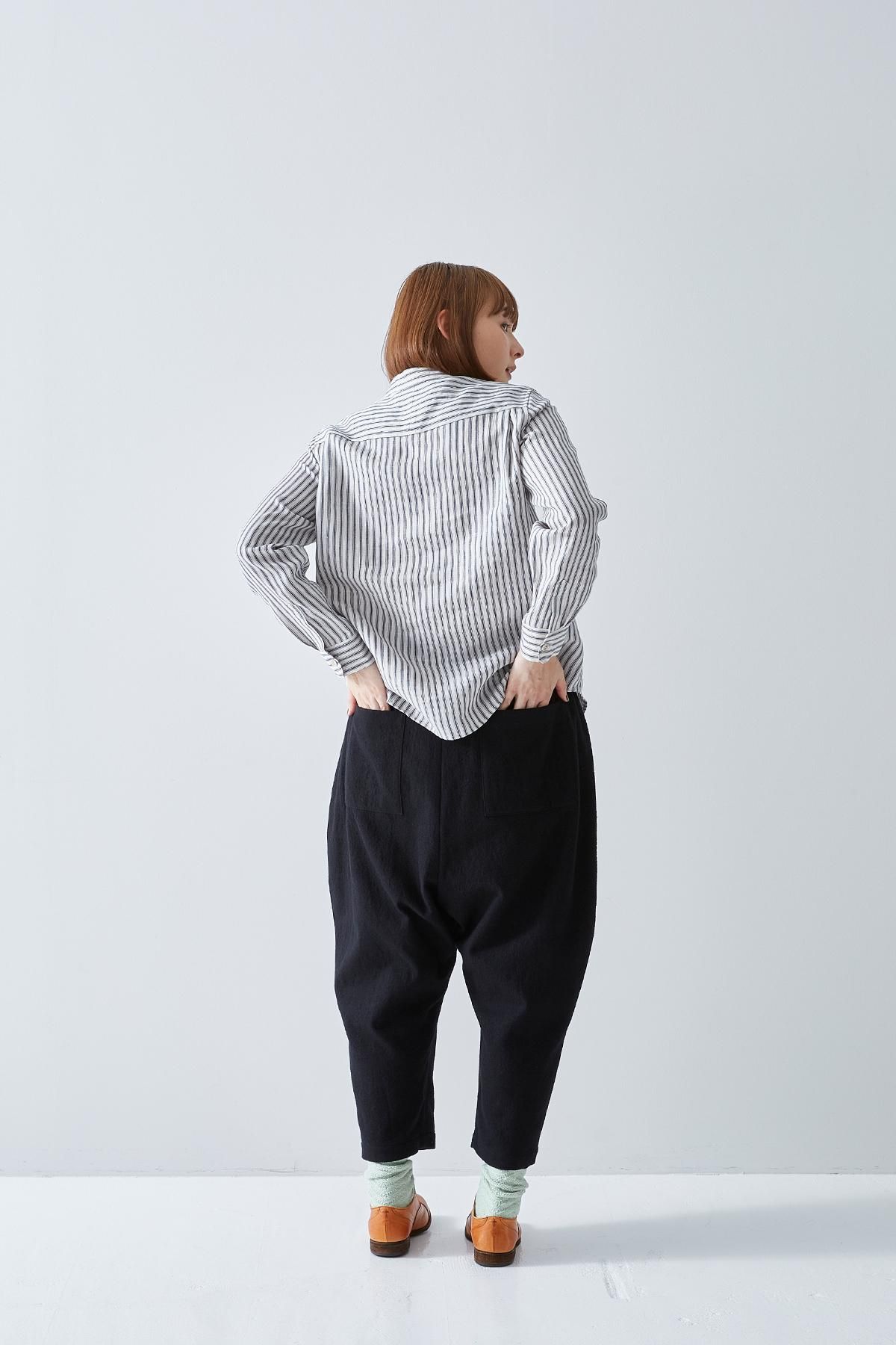 ・使用している布地は、先染めリネンの2/1綾ダブルストライプ地です