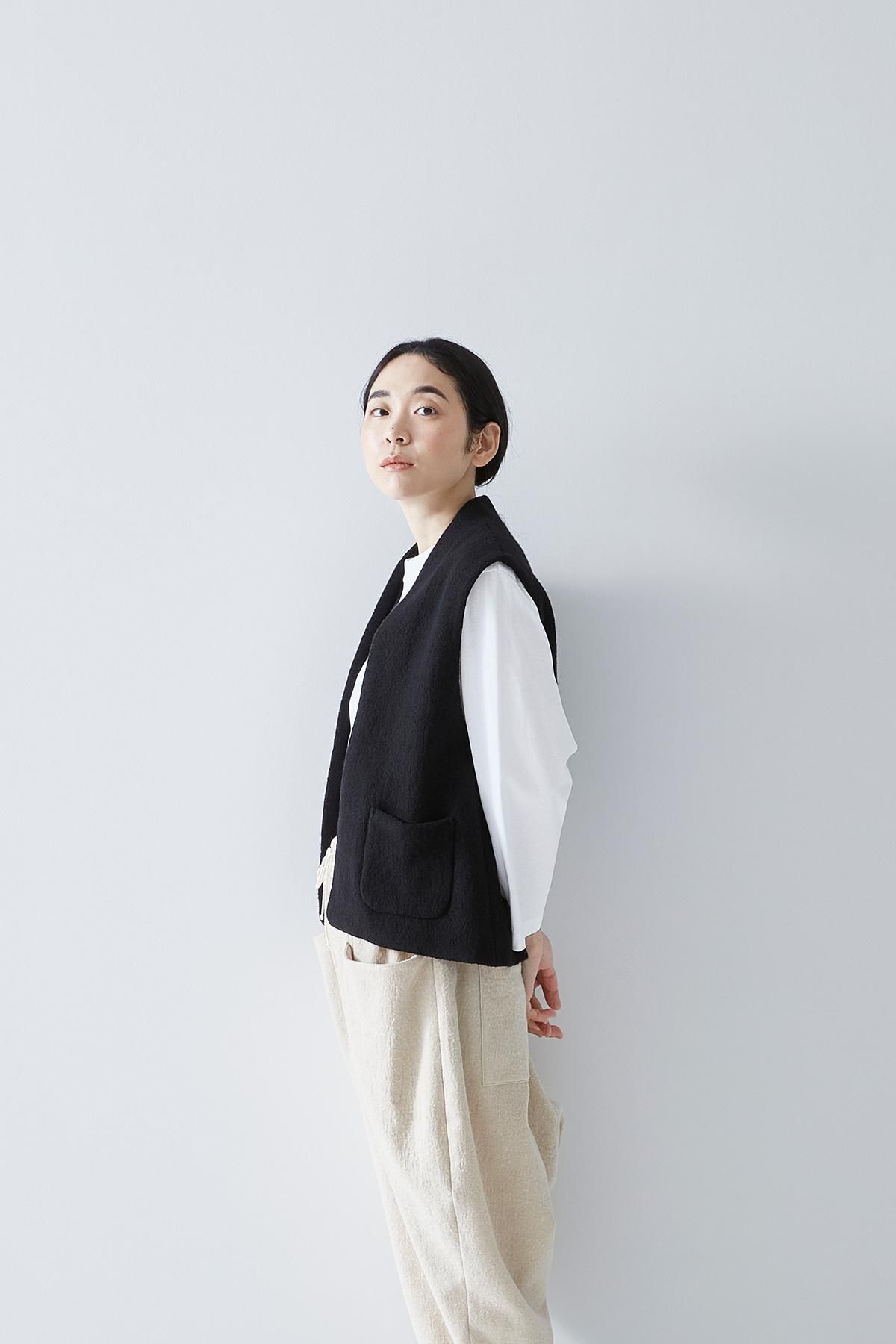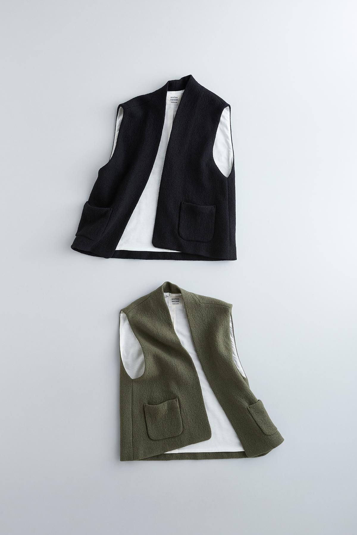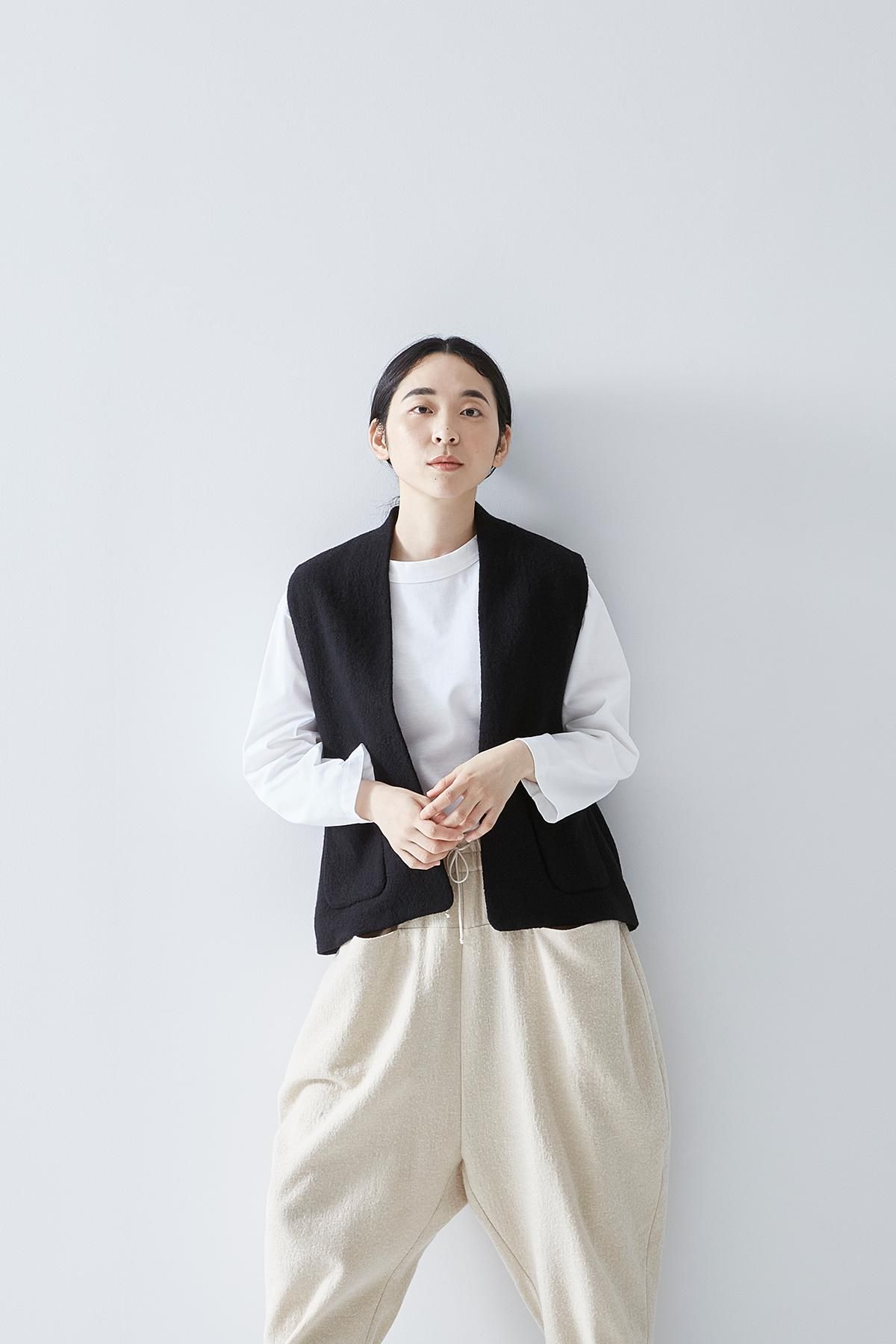 ・ベストらしいコンパクトなサイズ感ながら、身巾、アームホールともにゆったりとデザインをすることで、かろやかな着心地に仕上げています