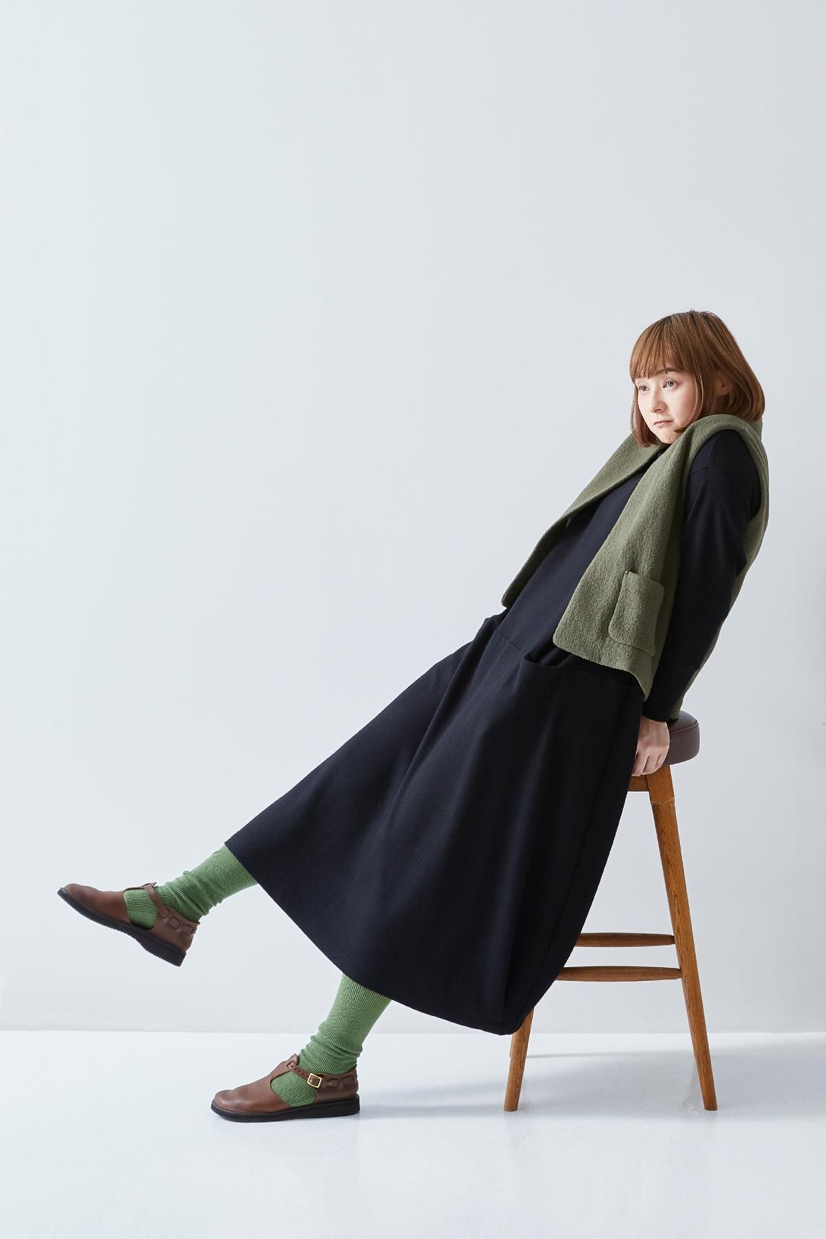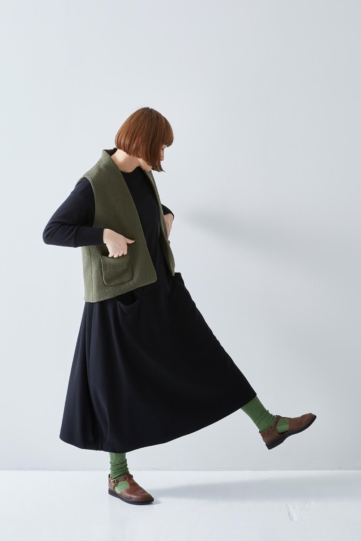 一度も毛を刈られたことがない羊からとれる最初のウール(ヴァージンウール)。そんな貴重な素材を使用するため、保温性や防水性にも優れた、あきふゆのあたたかなベストです。