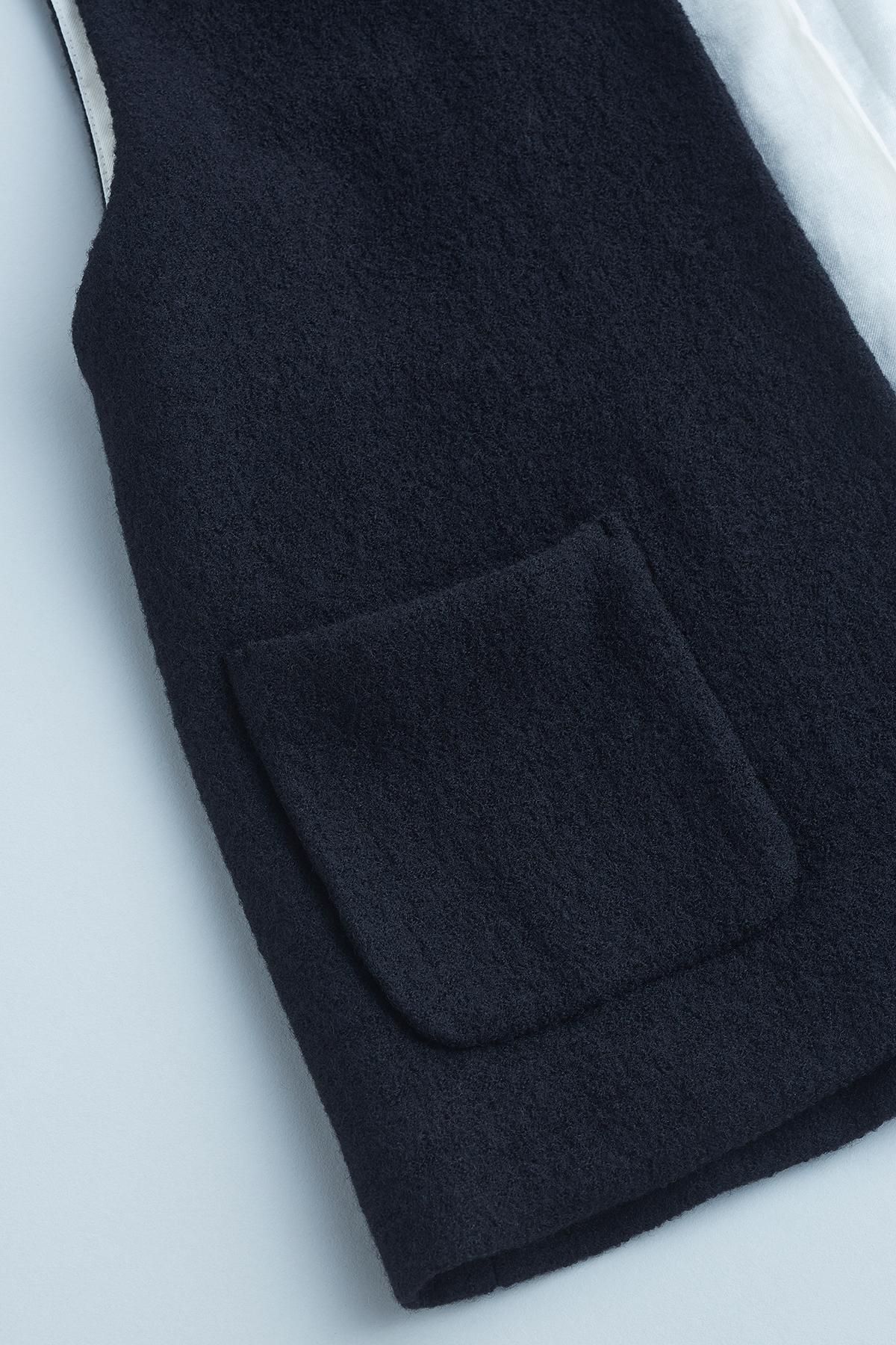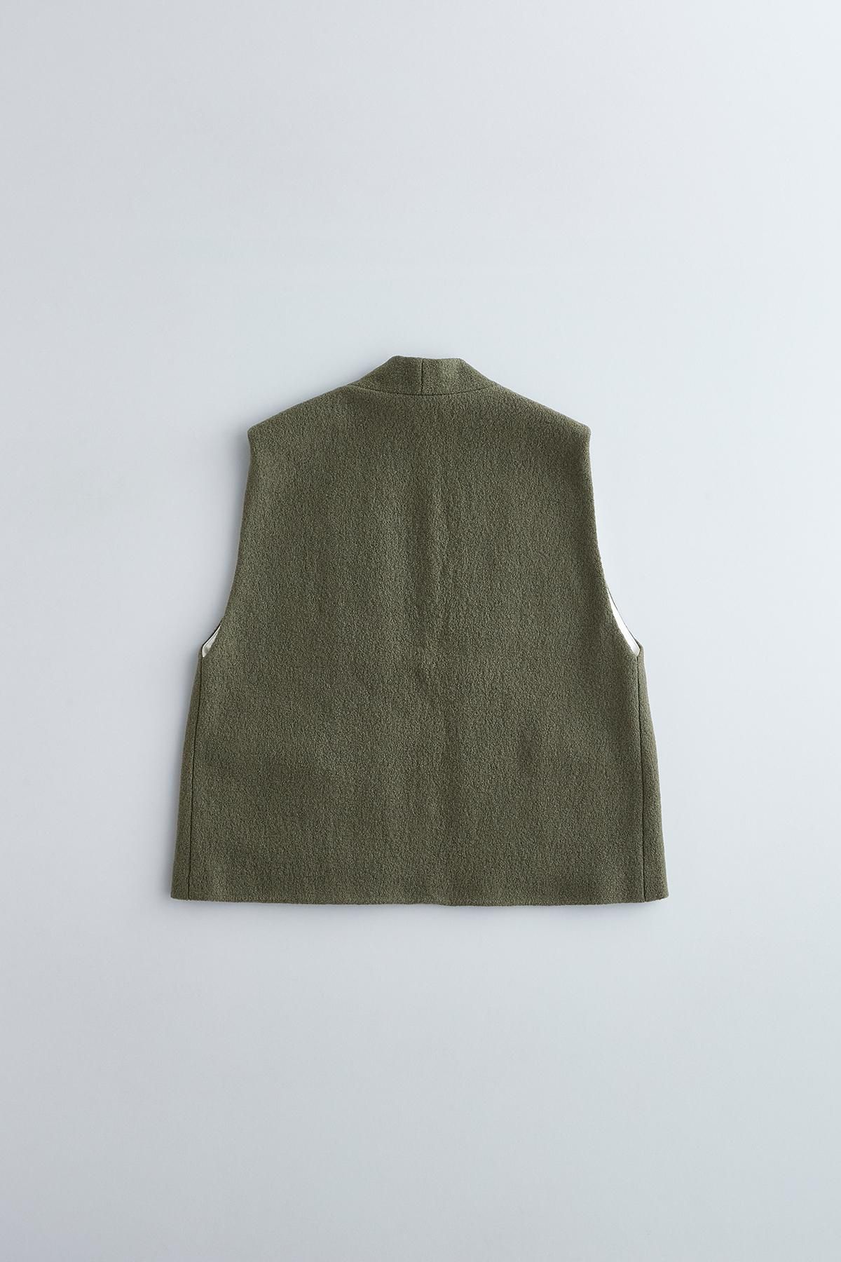 ・ポケットは丁寧な中縫い仕立てで、モードな装いにも似合うベストになっています