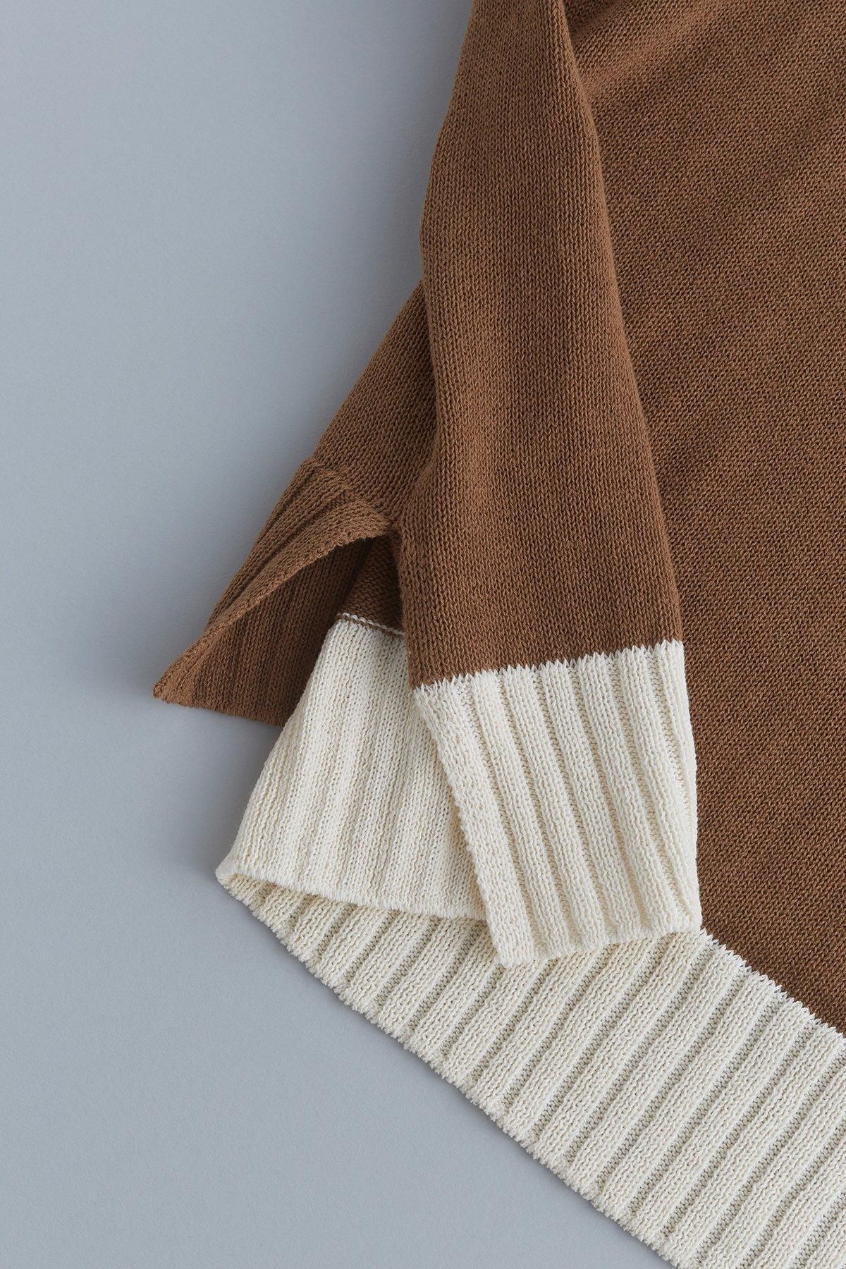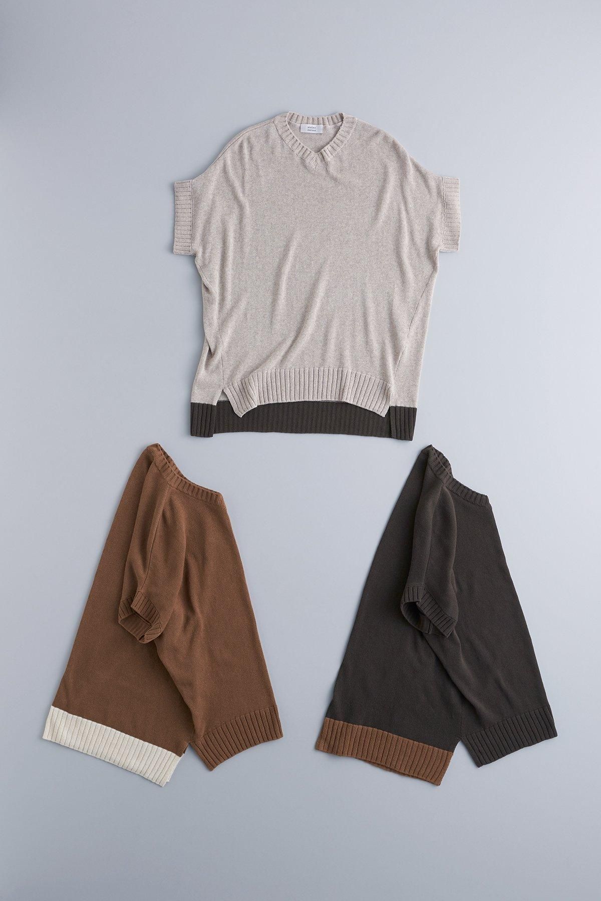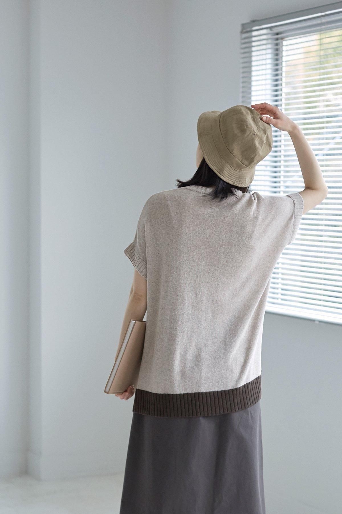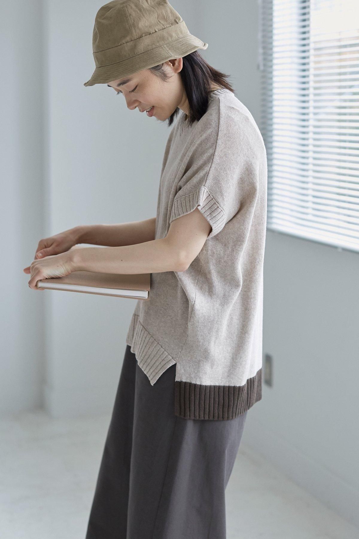 後ろリブ部分の配色にビビットなアクセントを持たせたドルマンニット。ざっくりと編むことで、春夏のニットらしい、ゆったりとリラックスした着心地です。