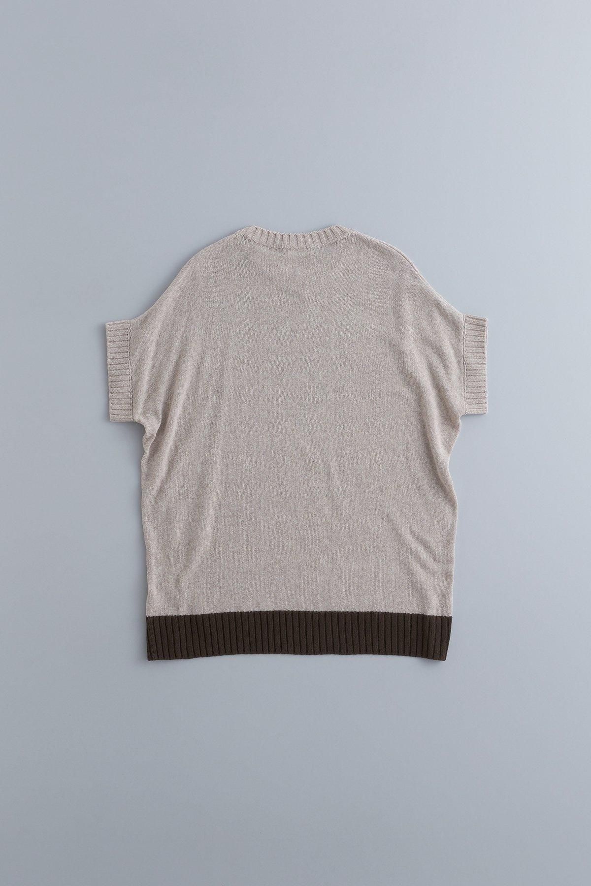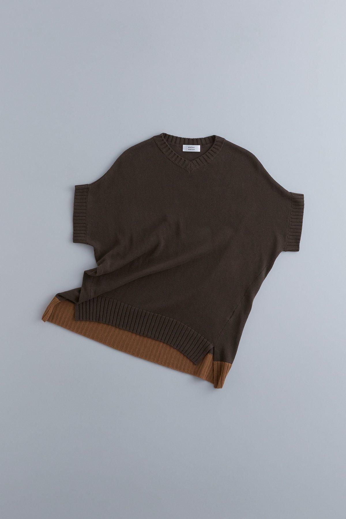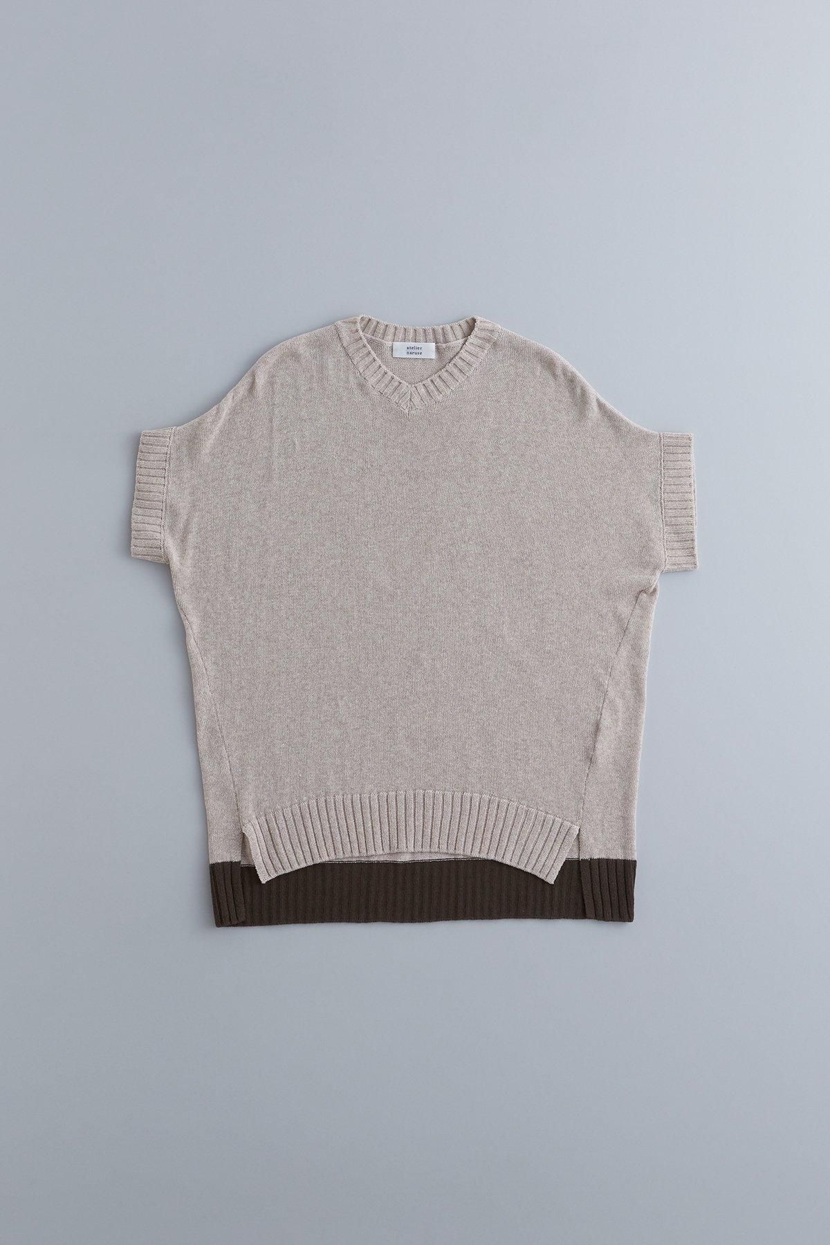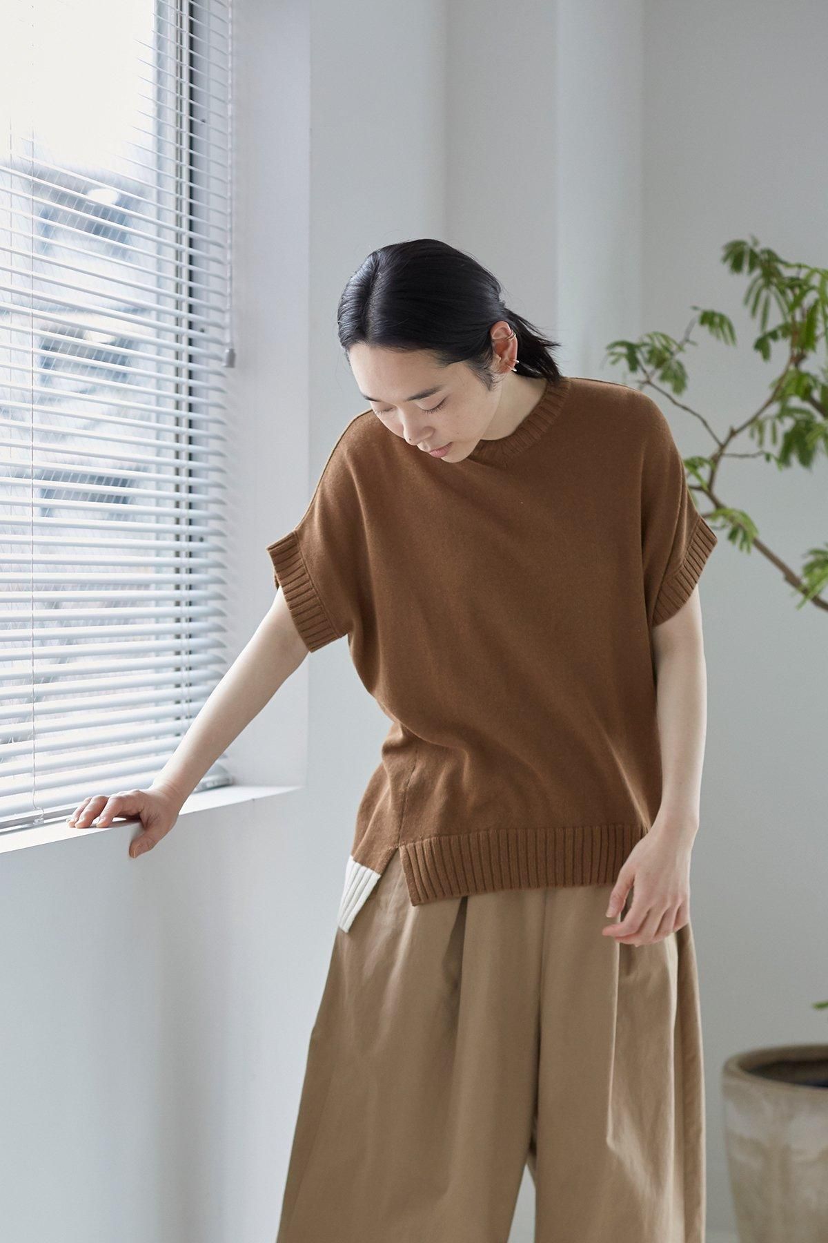 後ろリブ部分の配色にビビットなアクセントを持たせたドルマンニット。ざっくりと編むことで、春夏のニットらしい、ゆったりとリラックスした着心地です。