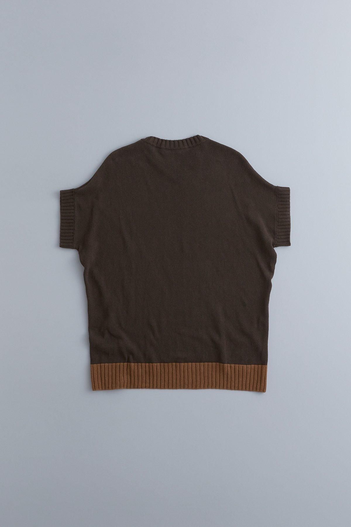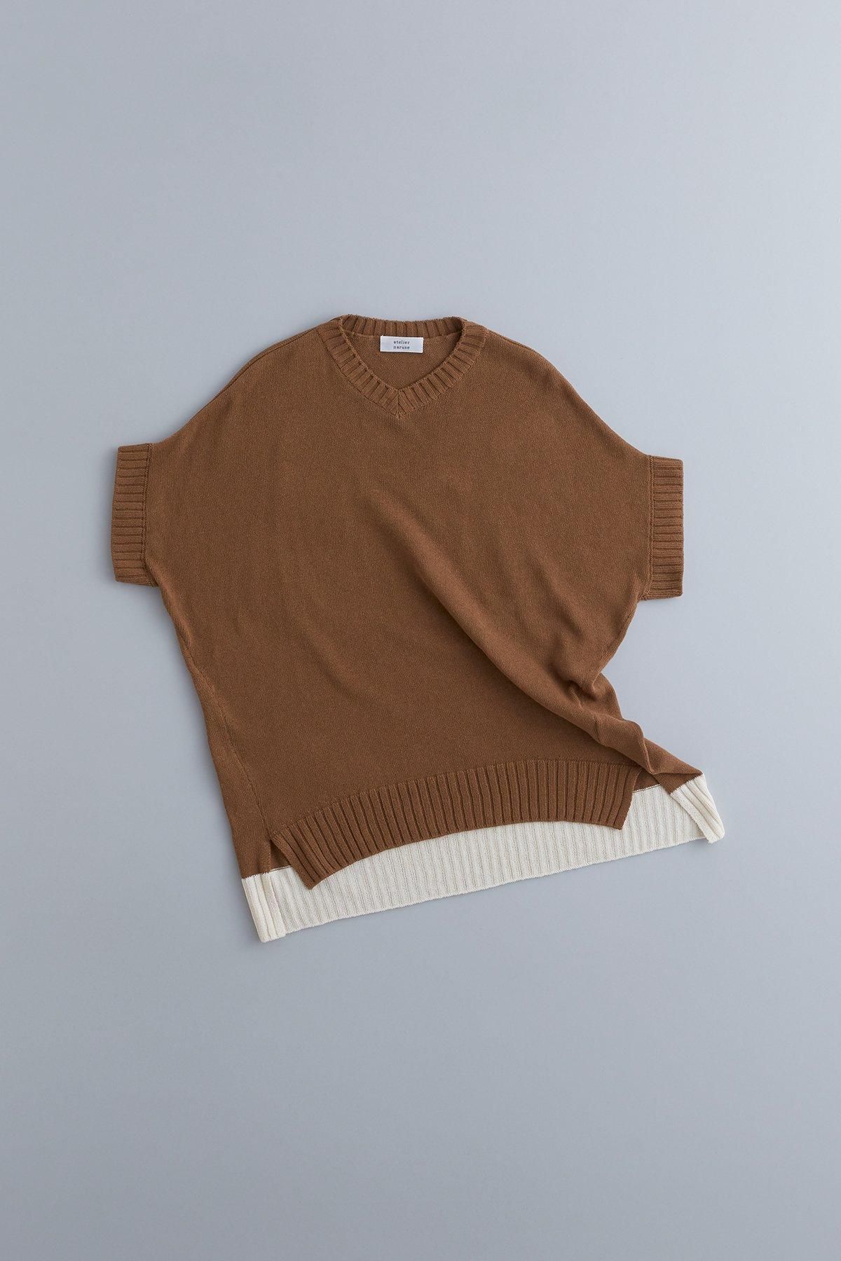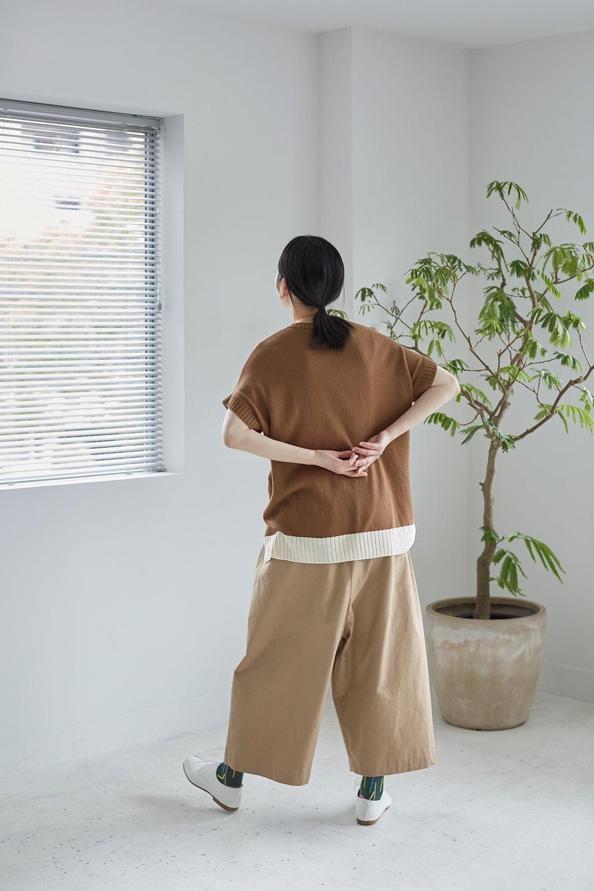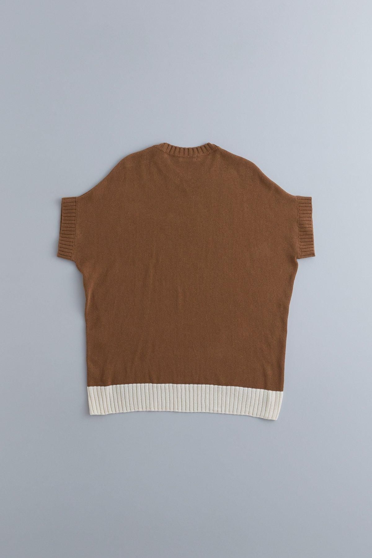 後ろリブ部分の配色にビビットなアクセントを持たせたドルマンニット。ざっくりと編むことで、春夏のニットらしい、ゆったりとリラックスした着心地です。