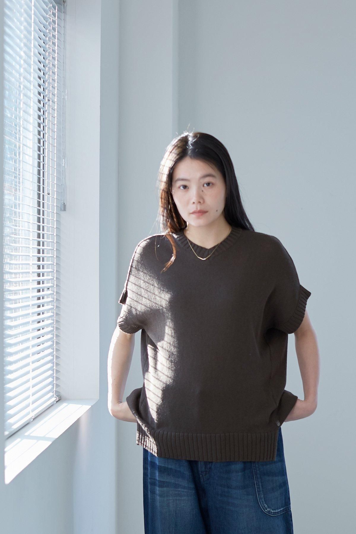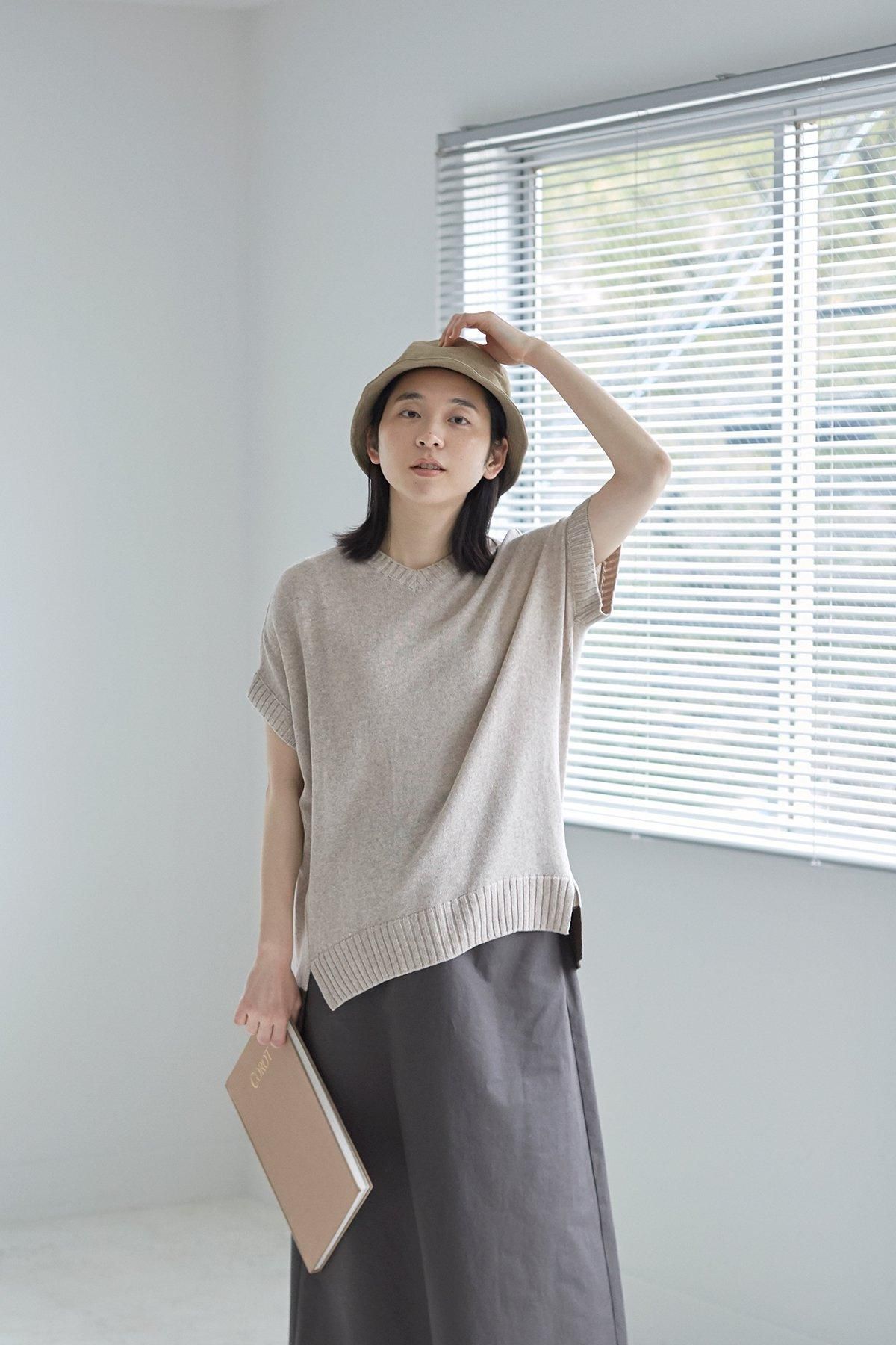 ・7ゲージで度目をあまく編んだ、やわらかいサマーニットです
