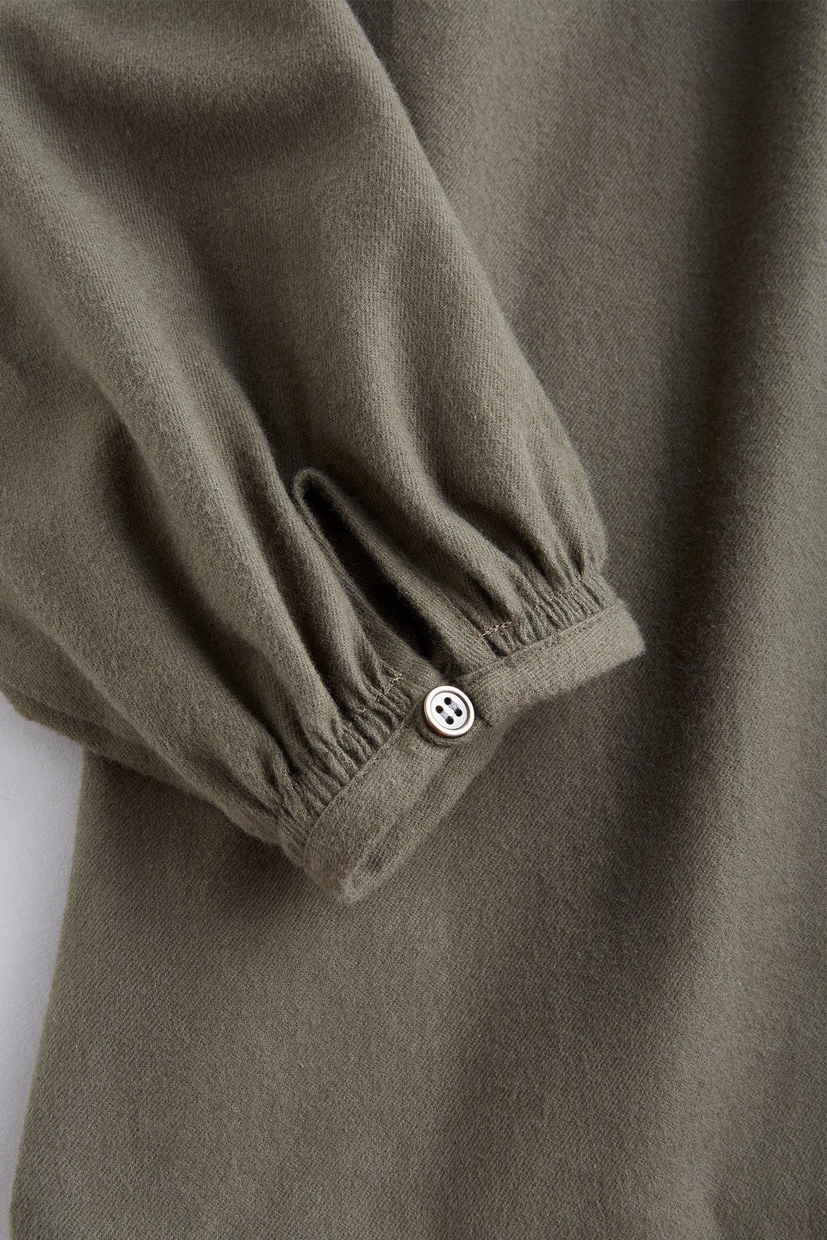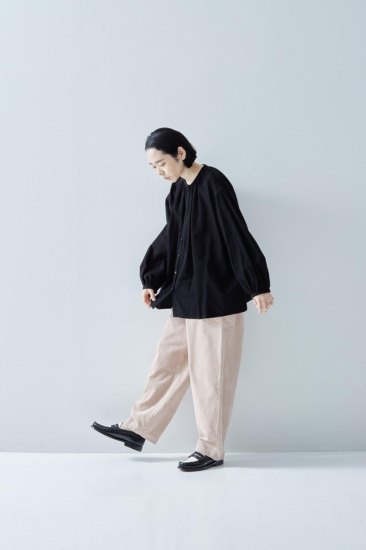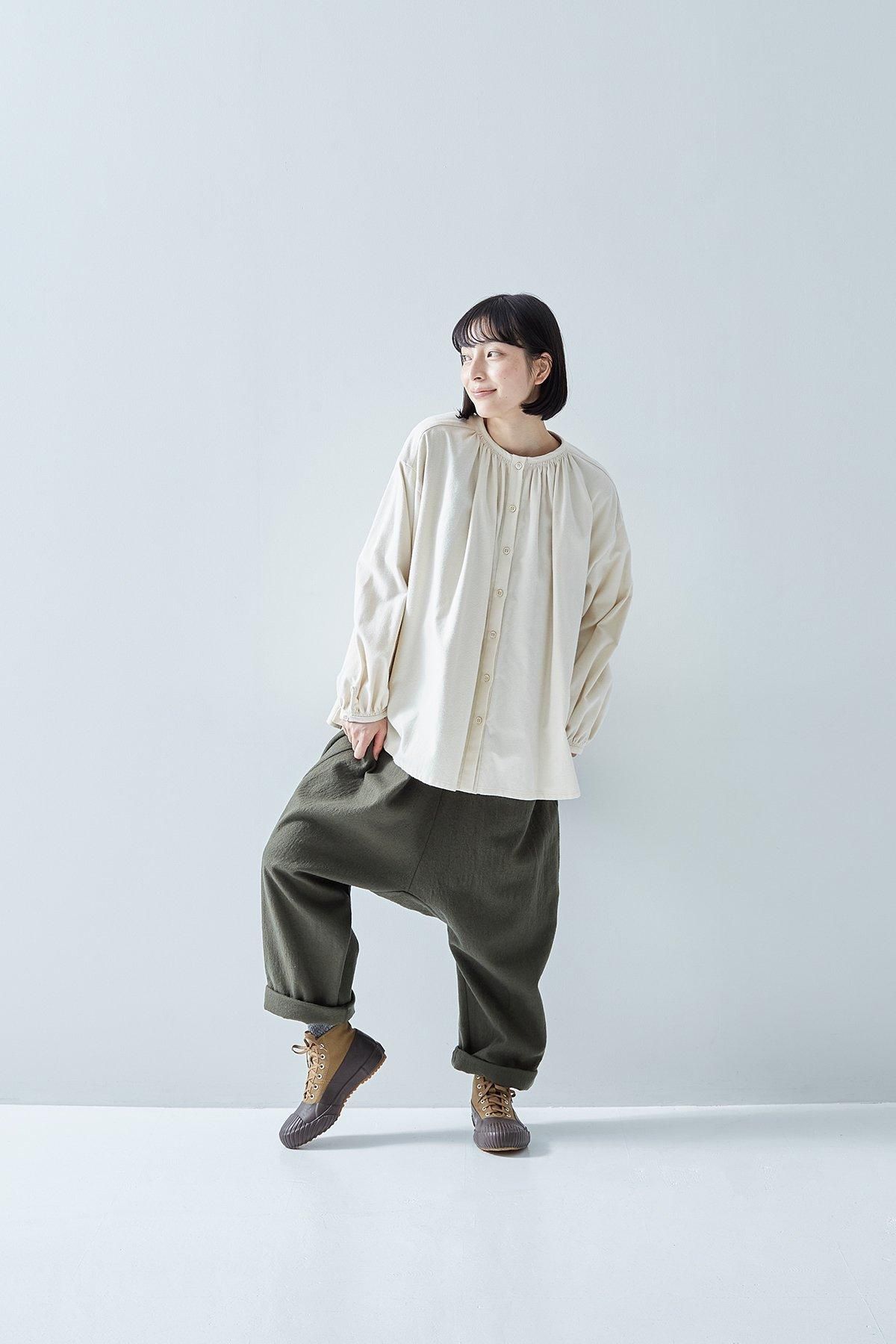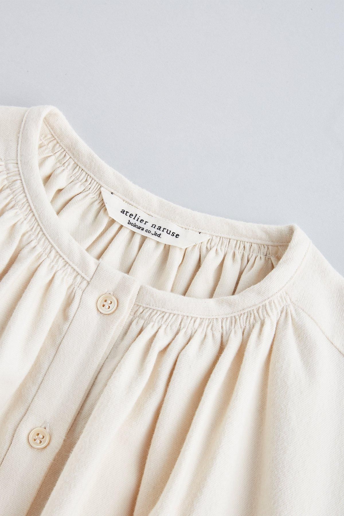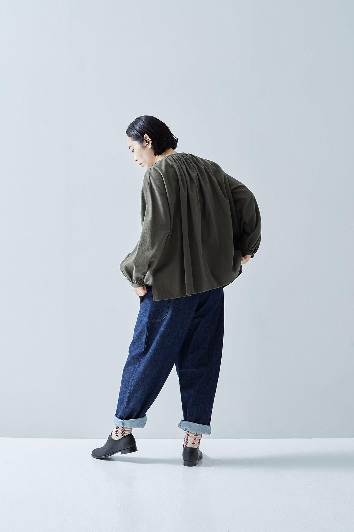 繊細なネックや袖口のステッチギャザーや肩ヨークといったアンティークブラウスのようなディテールを取り入れたオーガニックコットンのブラウスです。