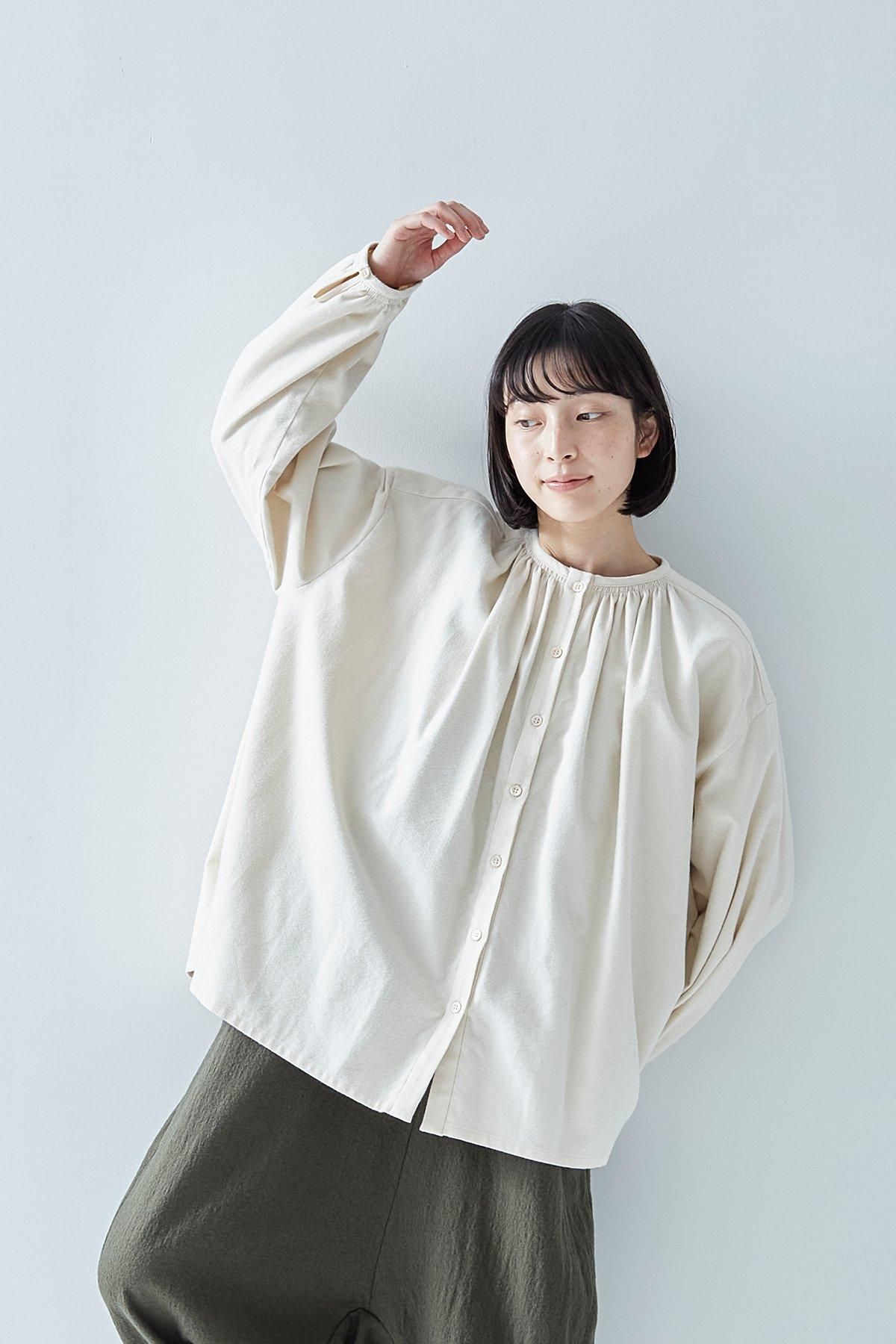 | Title | 起毛オーガニックコットンステッチギャザーブラウス |