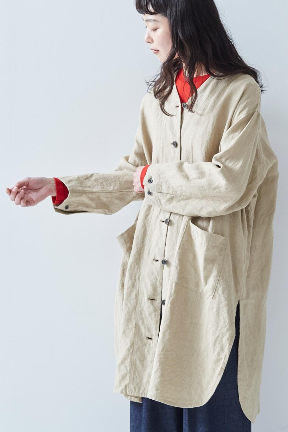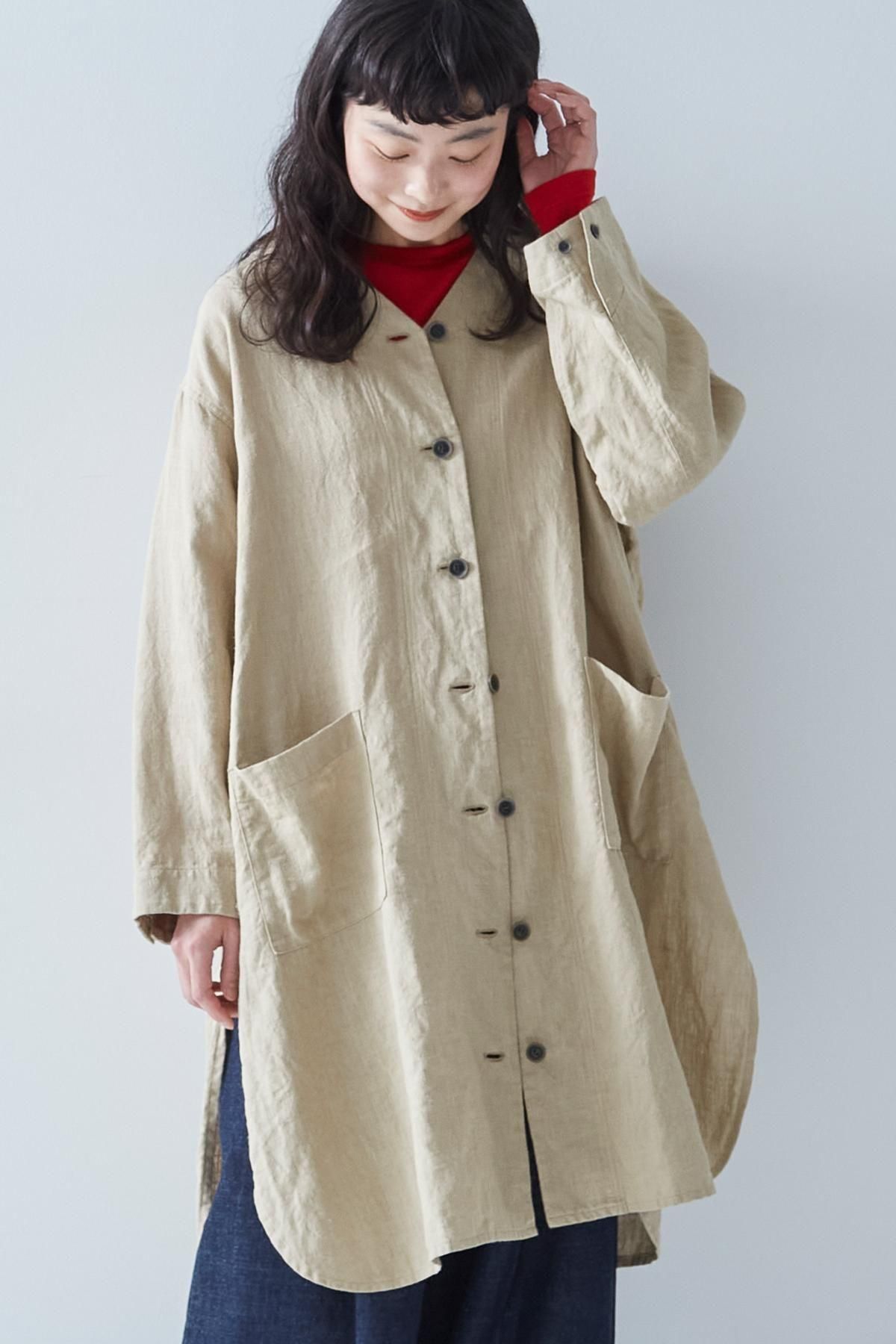・ウォッシャブルウールですが、一度目の洗濯時はやや縦方向に縮みがあるため縮み分を考慮したサイズで仕上げています(※着丈で5cm、袖丈で2.5cmほど縦方向に縮みます)