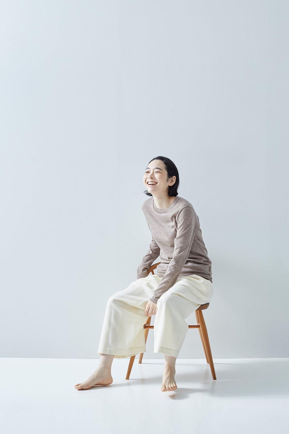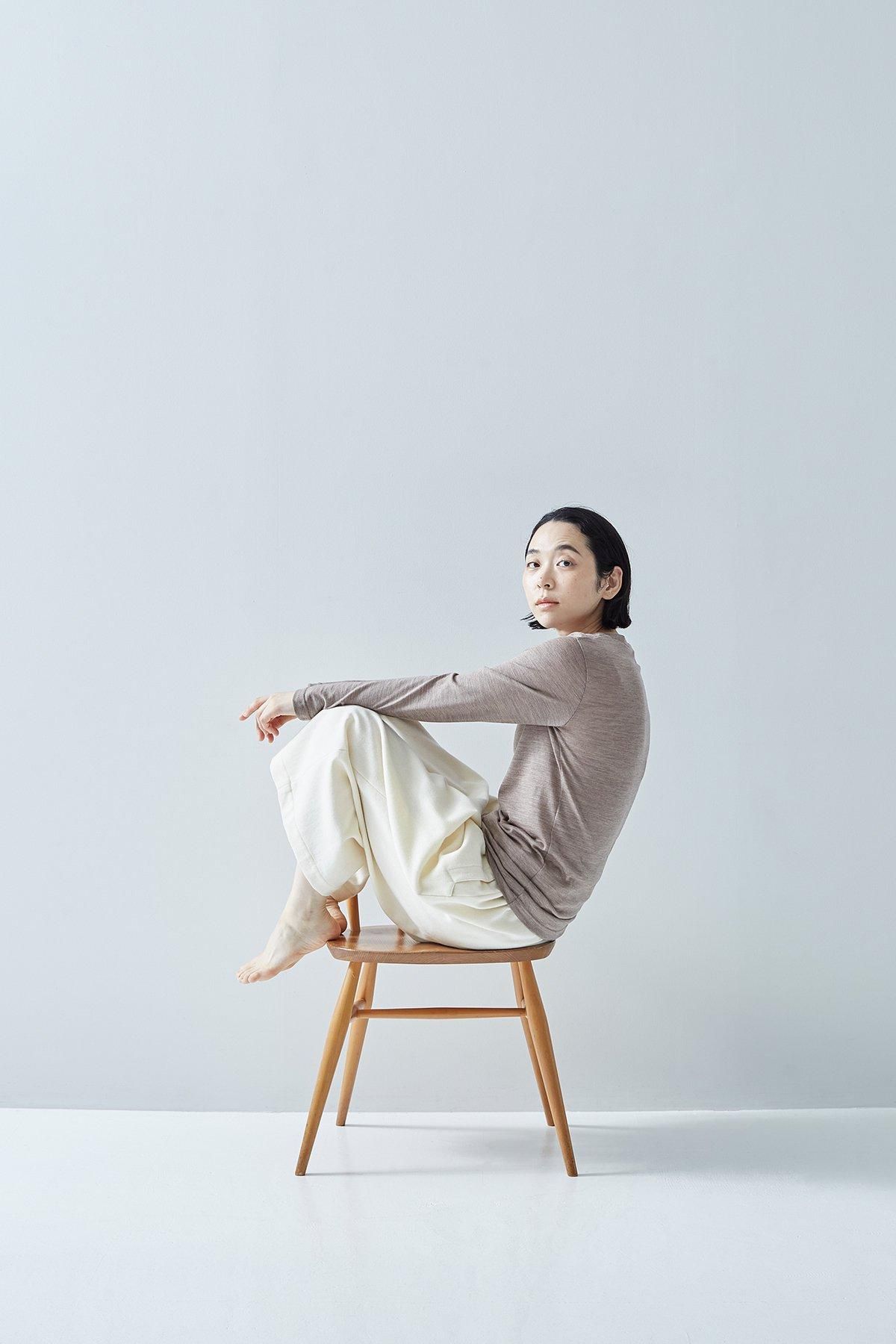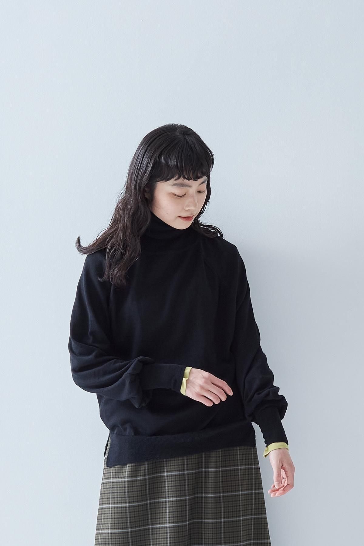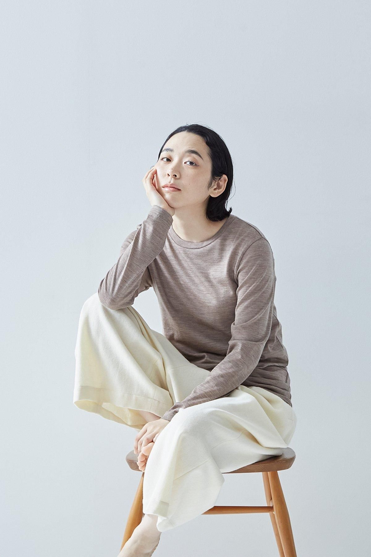 また、ネックのあきはちいさめ、身巾と袖巾に若干ゆとりを持たせたサイズ感のため、インナーとしてはもちろん、1枚でウールカットソーとして着ていただくこともできます。