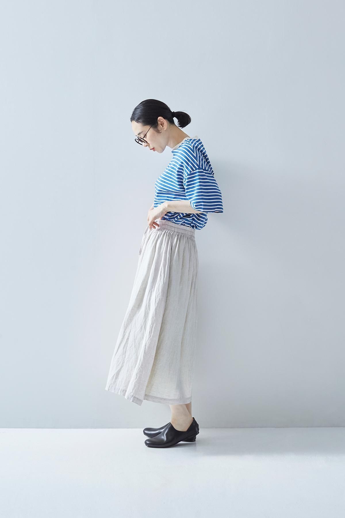 リネンをたっぷりと贅沢につかった、ナチュラルな風合いと繊細なギャザーから生まれる自然な落ち感を活かしたリネンスカートが、期中のニュー・アイテムとして登場です。