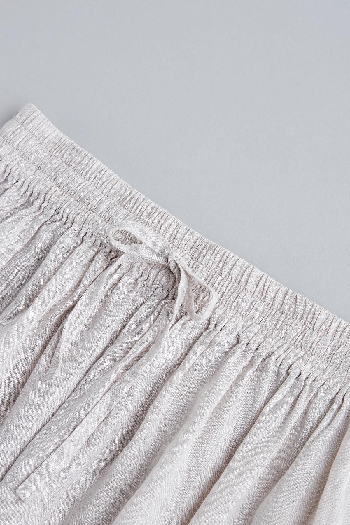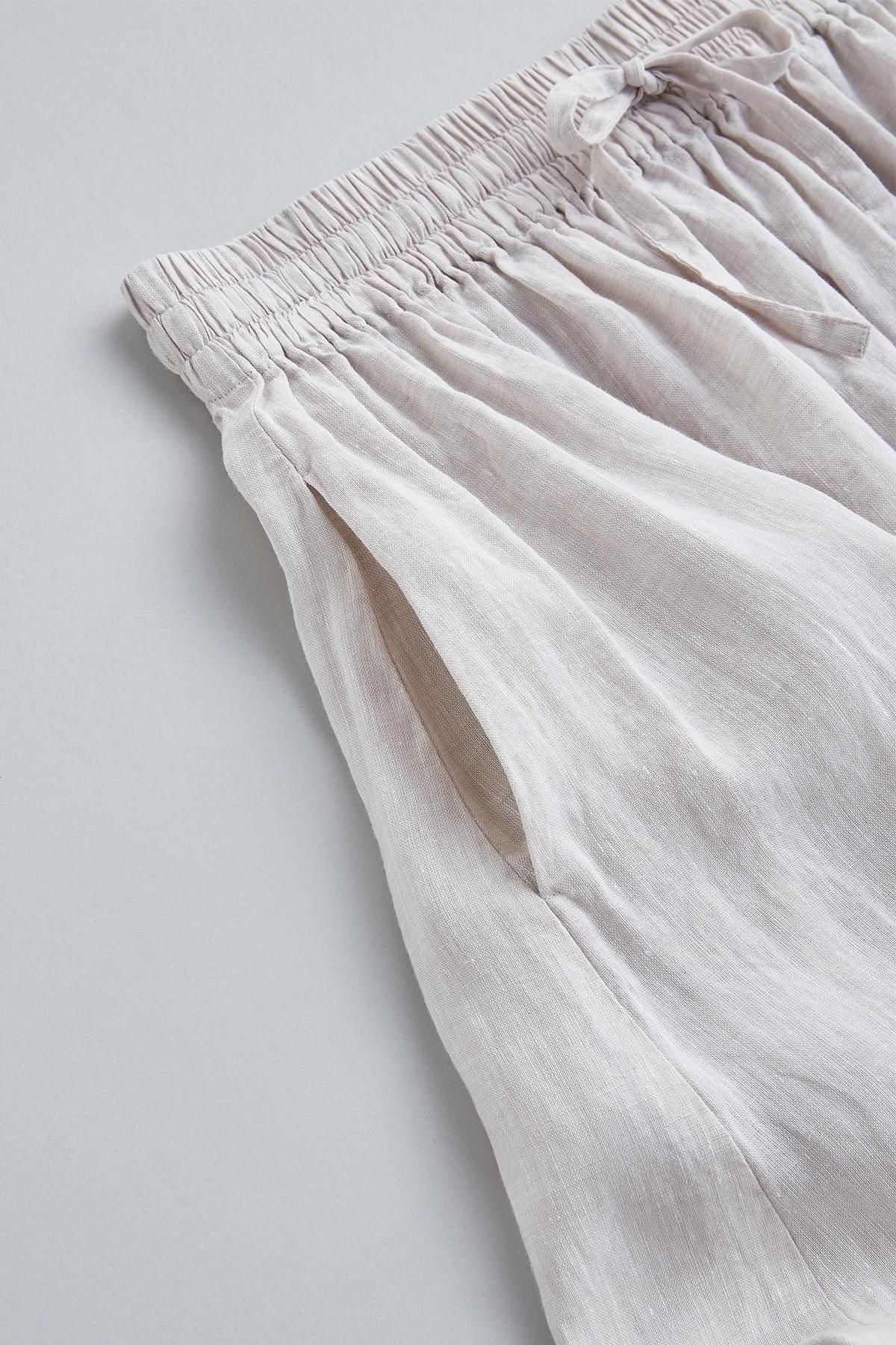 ・使用している布地は、フレンチリネン。フレンチリネンは、フランス産のフラックス(亜麻)を原料としてつくられた生地で、リネンのなかでも最高級とされています。吸湿速乾に優れ、肌触りがよく、着るたびに肌になじみ、光沢感が増してきます。
