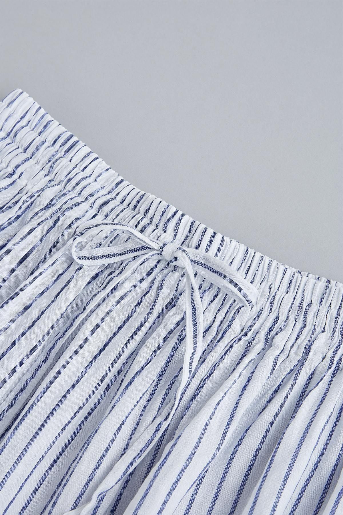 Color | ライトベイジュ / ネイビー / ストライプ | Material | リネン100% |