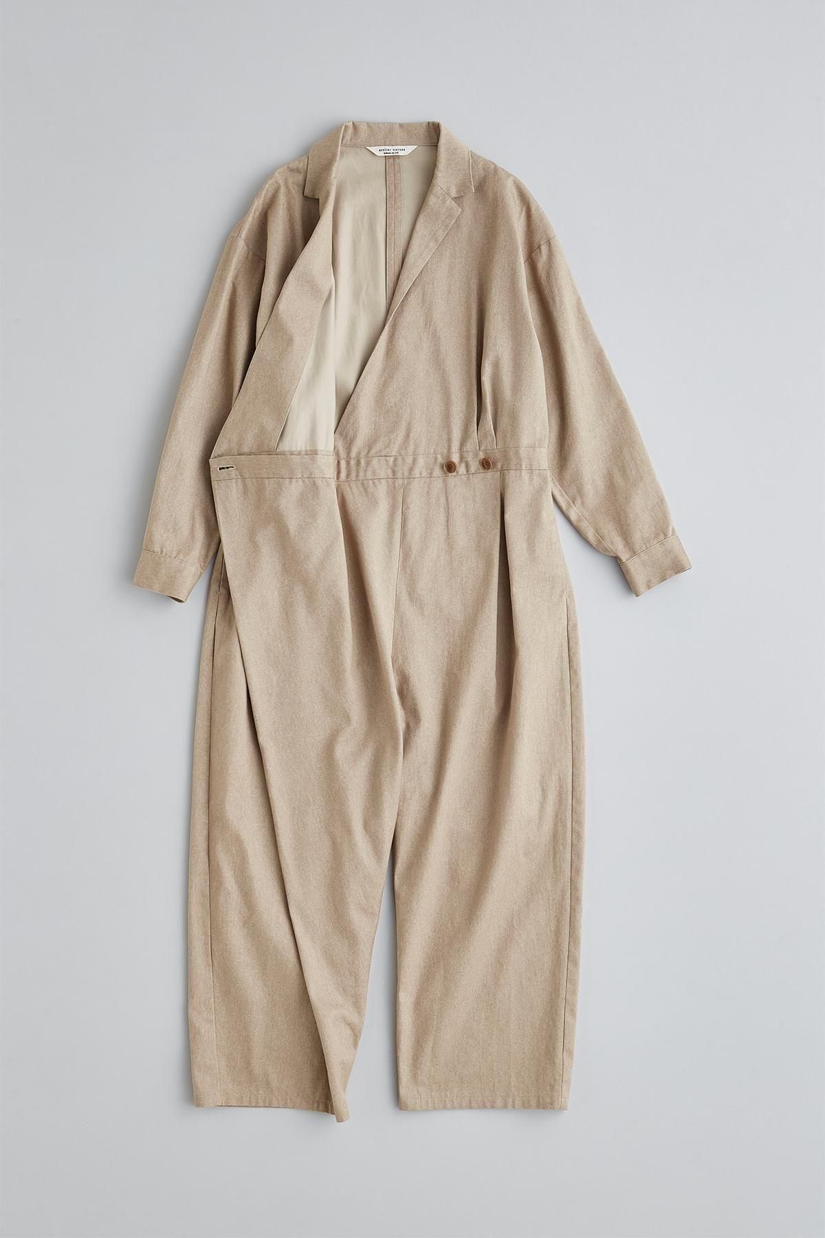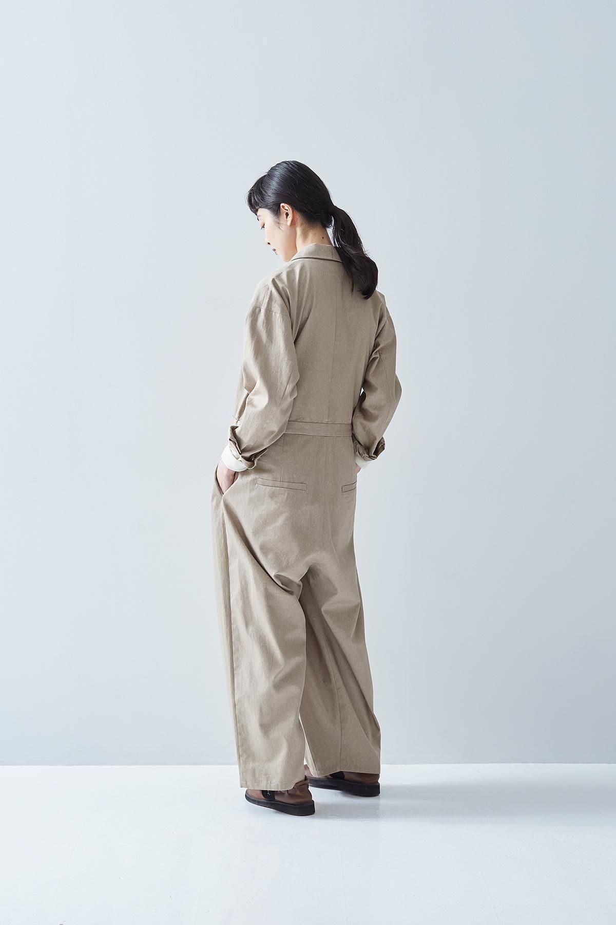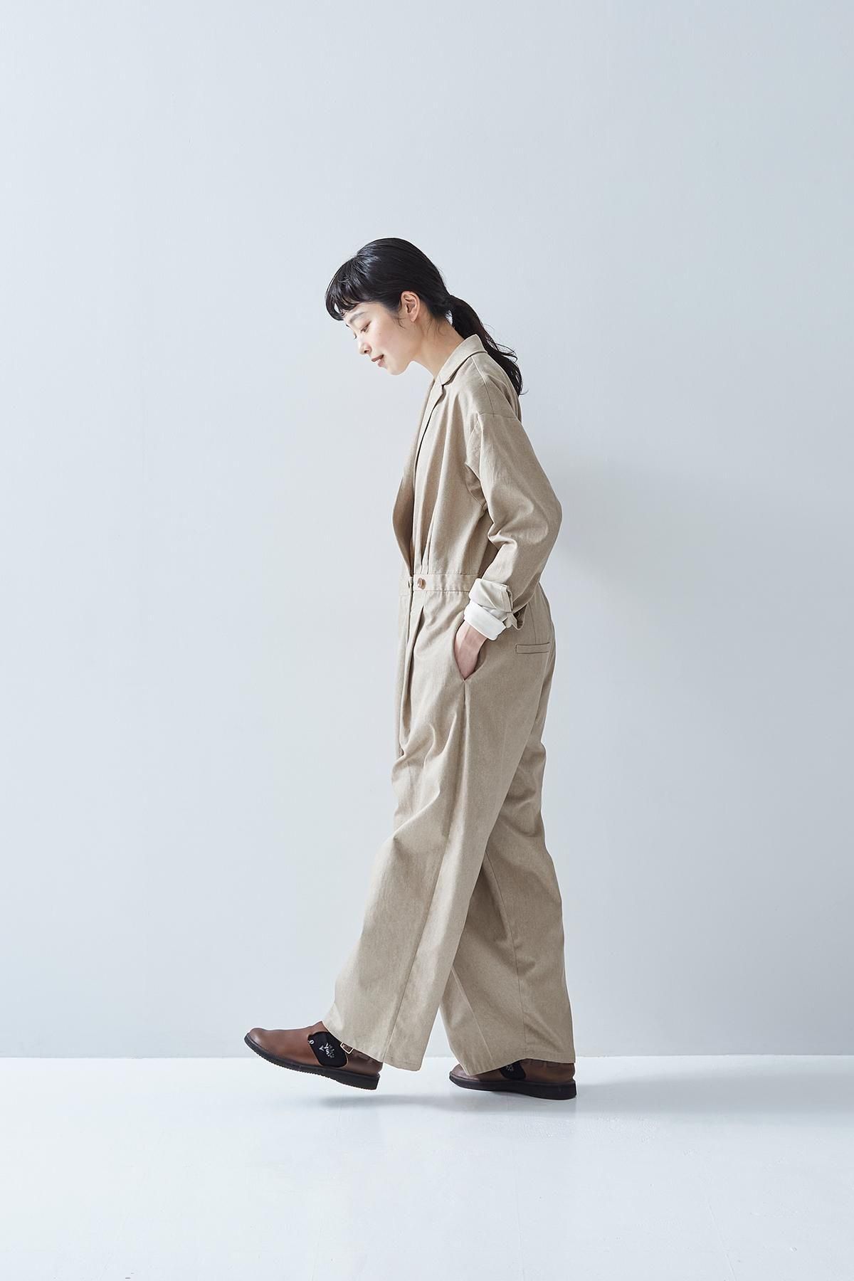 新作の袖付きジャンプスーツは、オフィススタイルにも対応できるカジュアルながらも大人の女性にぴったりな洗練されたデザインです。