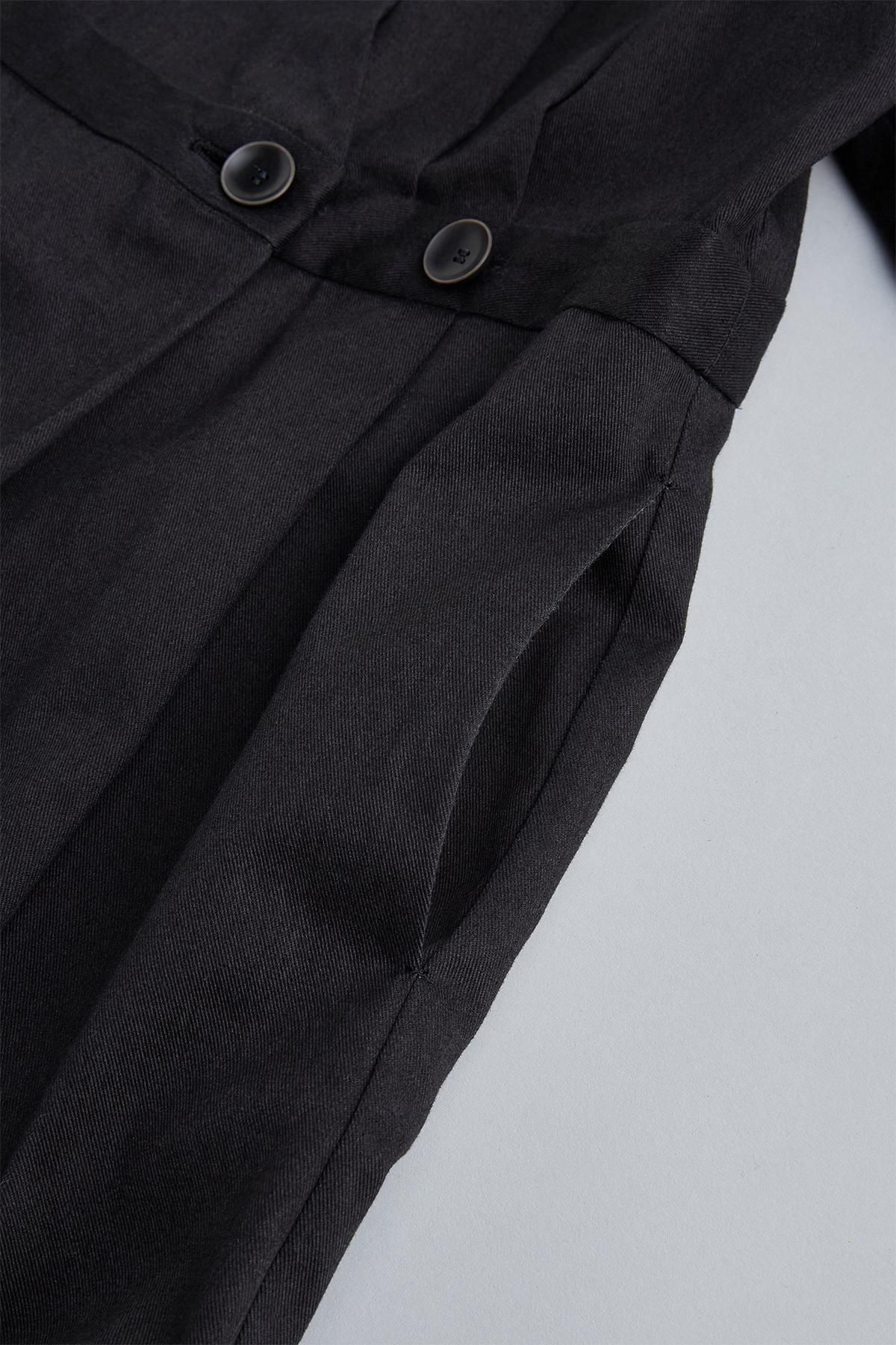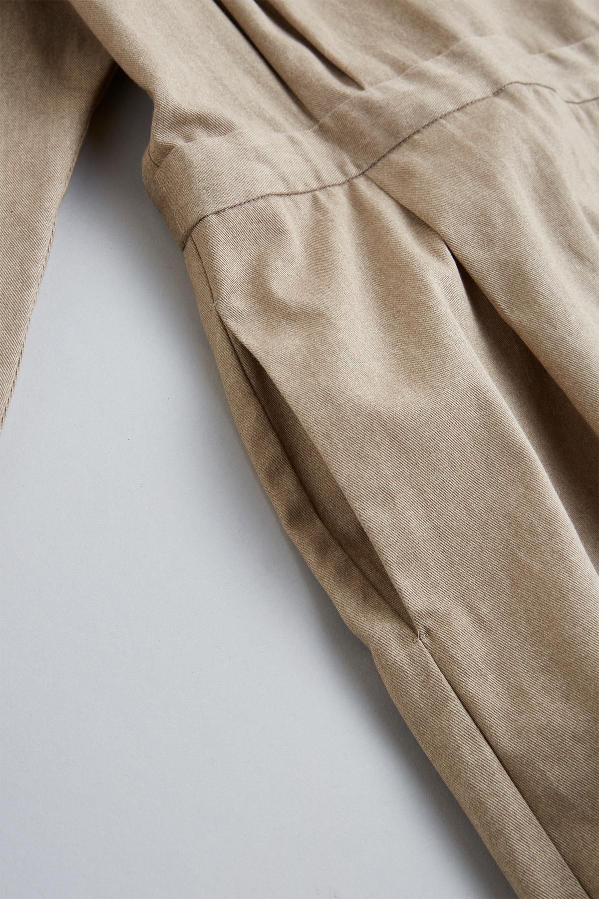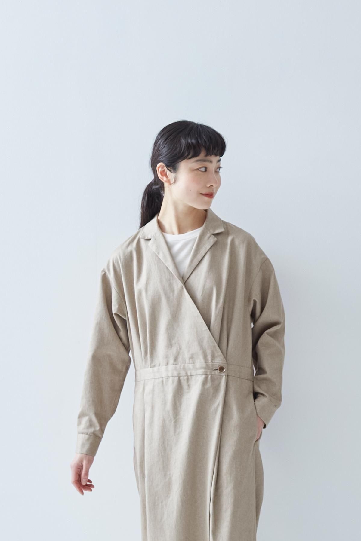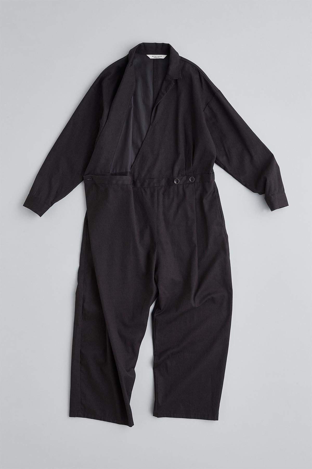 また、カシュクールデザインにより開け閉めするボタンの数を最小限にしジャンプスーツにありがちな着脱の手間を軽減しています。