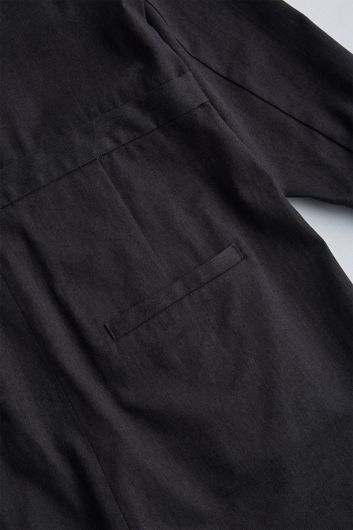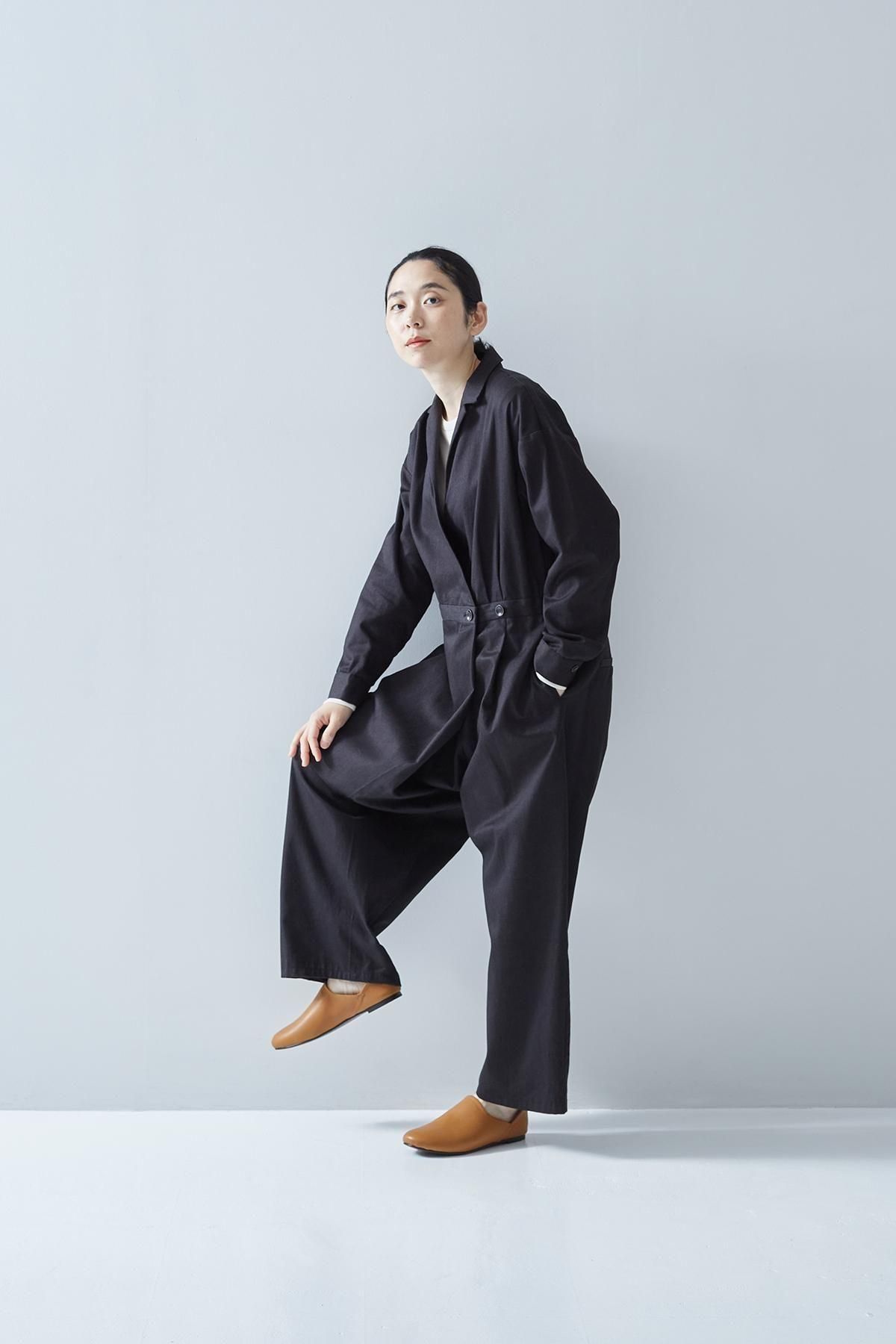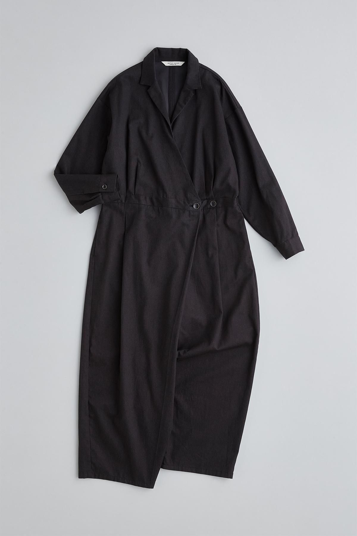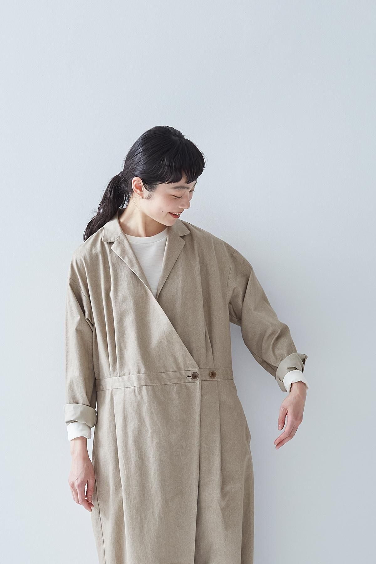 また、カシュクールデザインにより開け閉めするボタンの数を最小限にしジャンプスーツにありがちな着脱の手間を軽減しています。