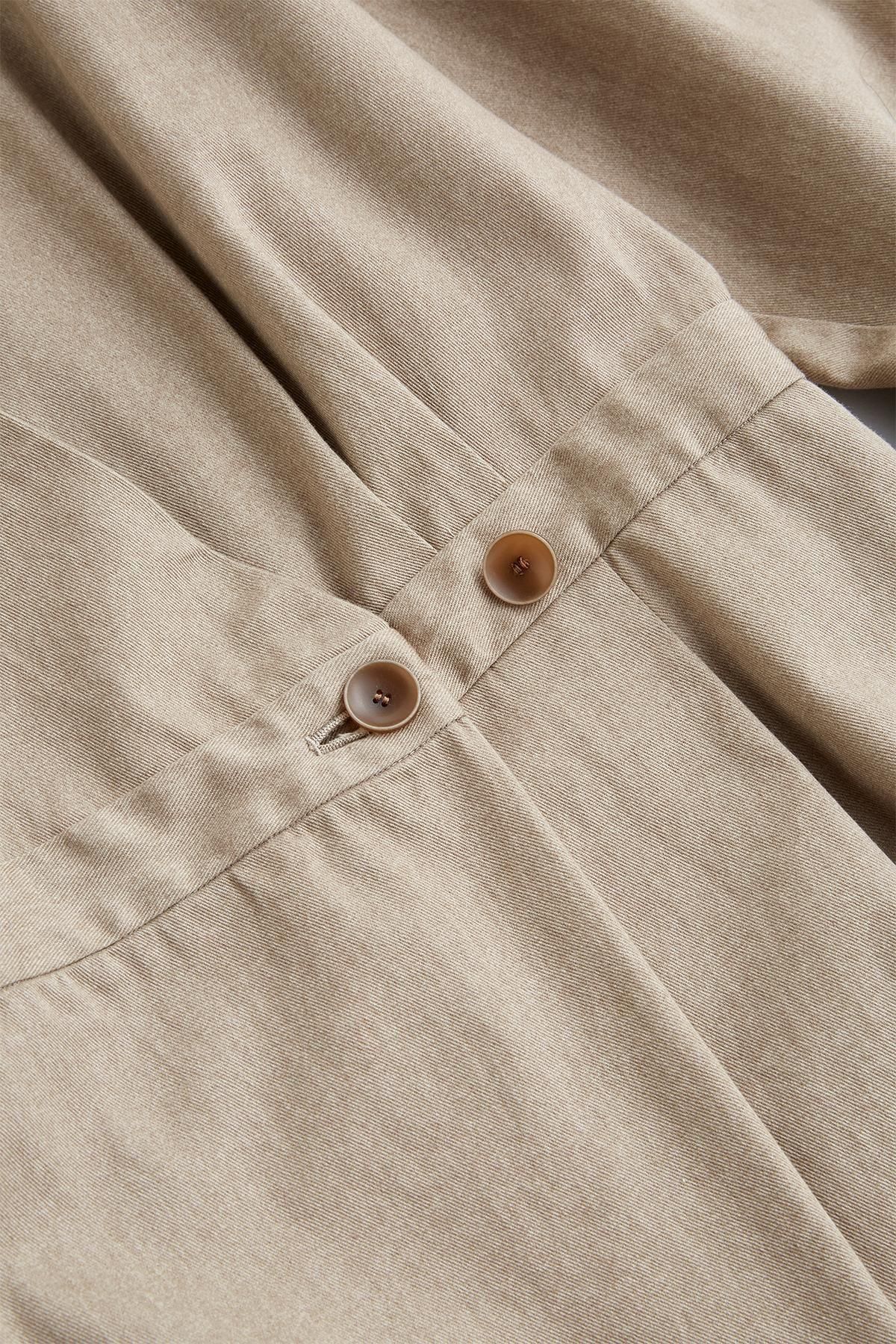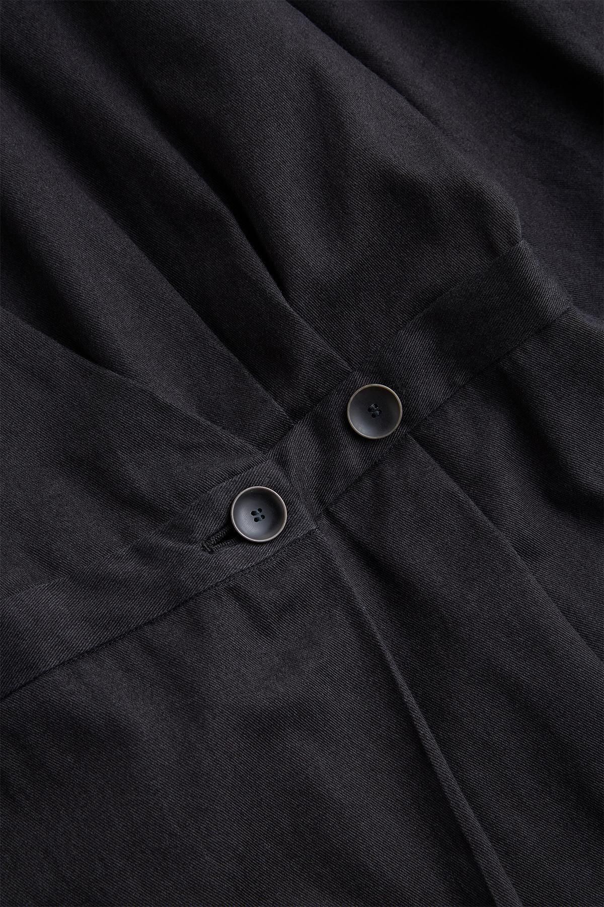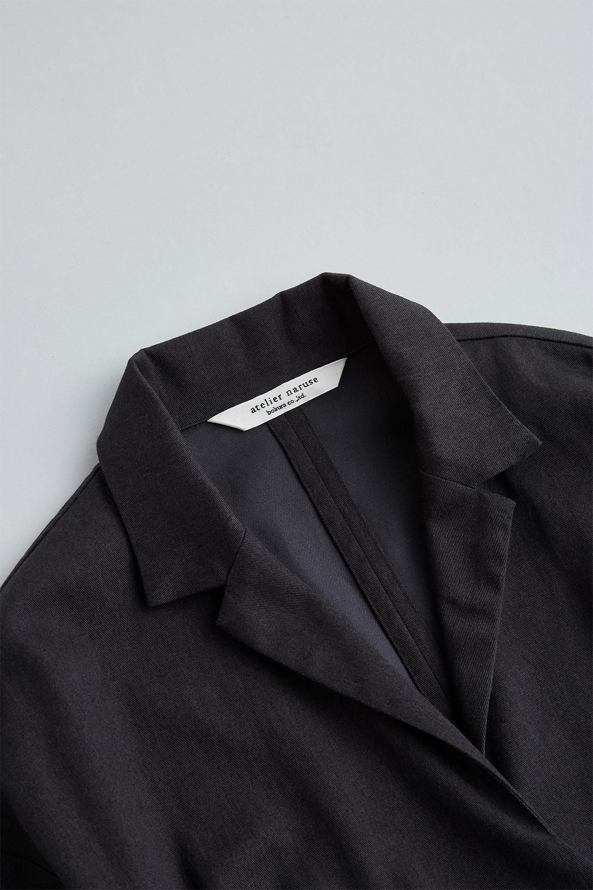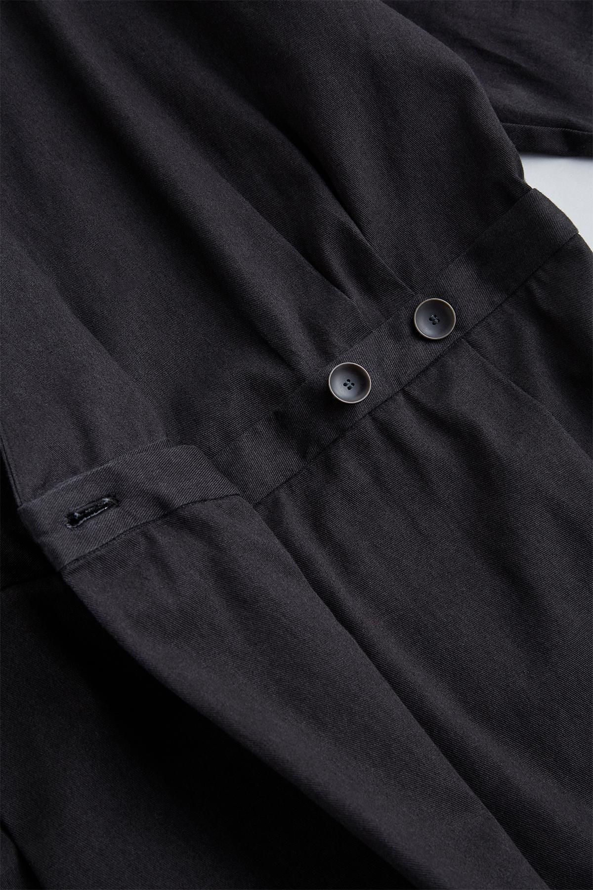 また、カシュクールデザインにより開け閉めするボタンの数を最小限にしジャンプスーツにありがちな着脱の手間を軽減しています。