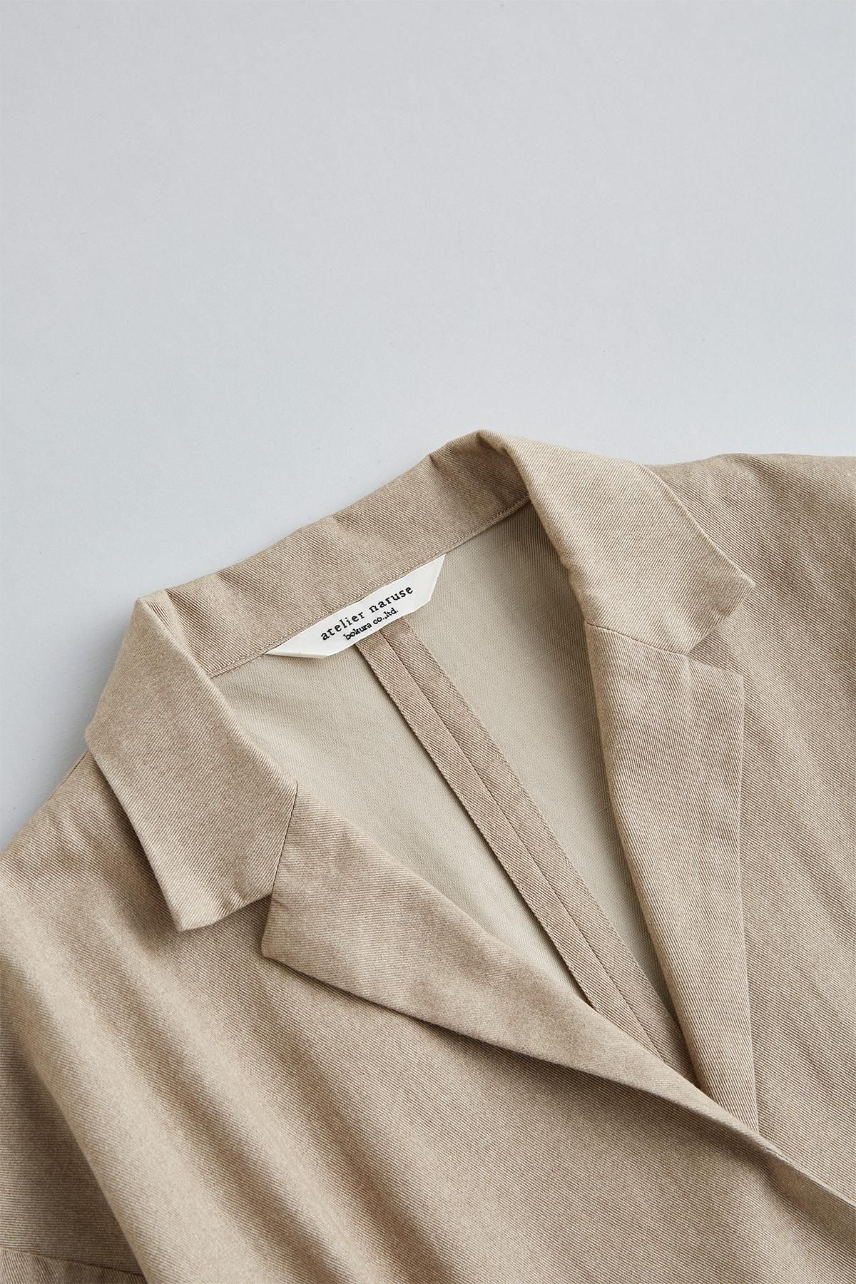 ・使用している生地は、丈夫さと軽さを兼ね備えた中肉厚の20番手コットンツイル。ヴィンテージ感のあるムラ染めが特徴で、着るほどに味わい深さを増します。