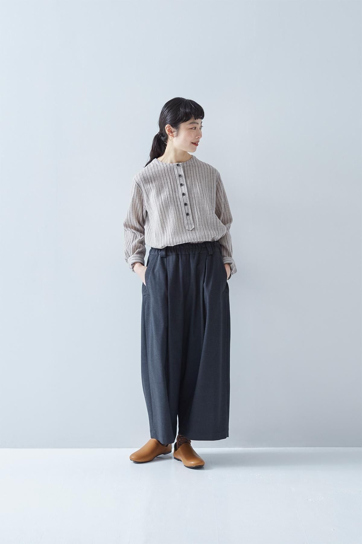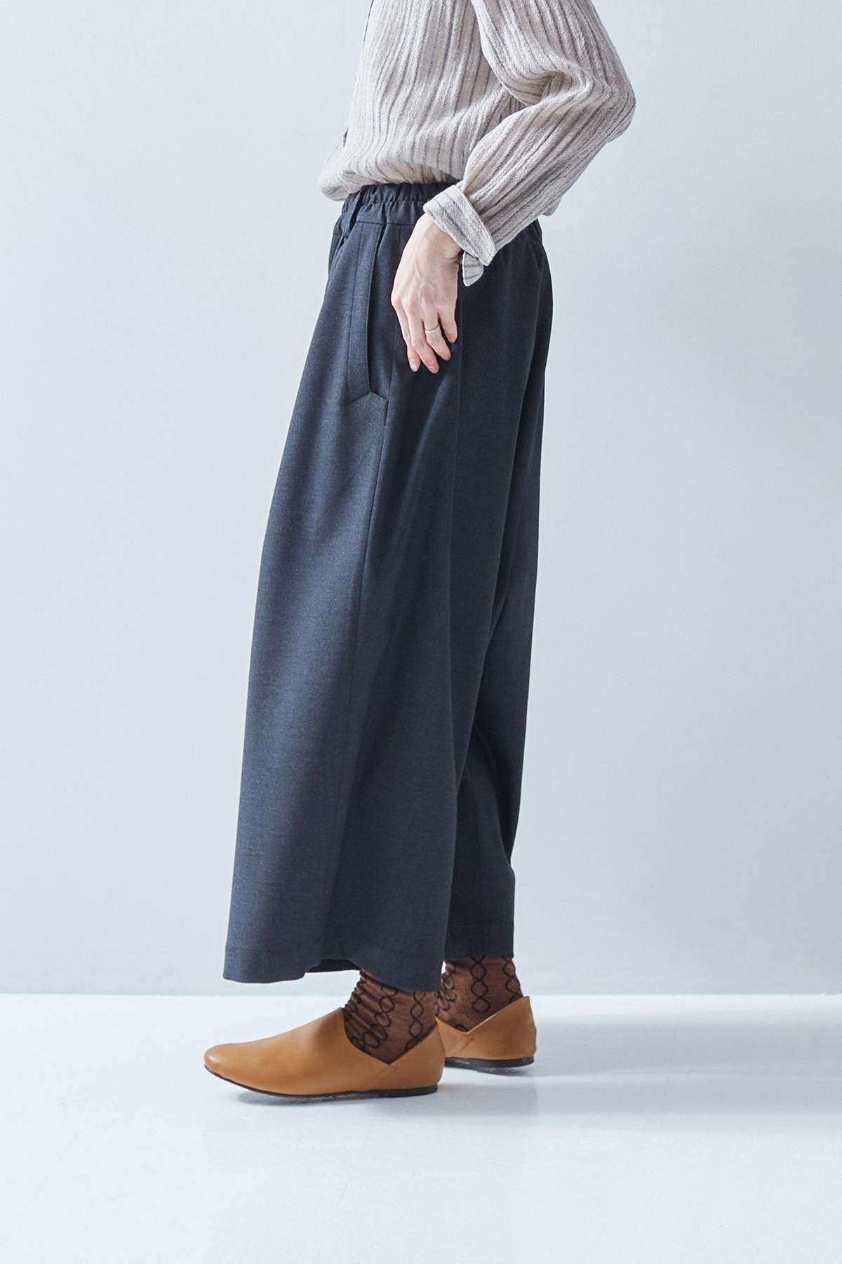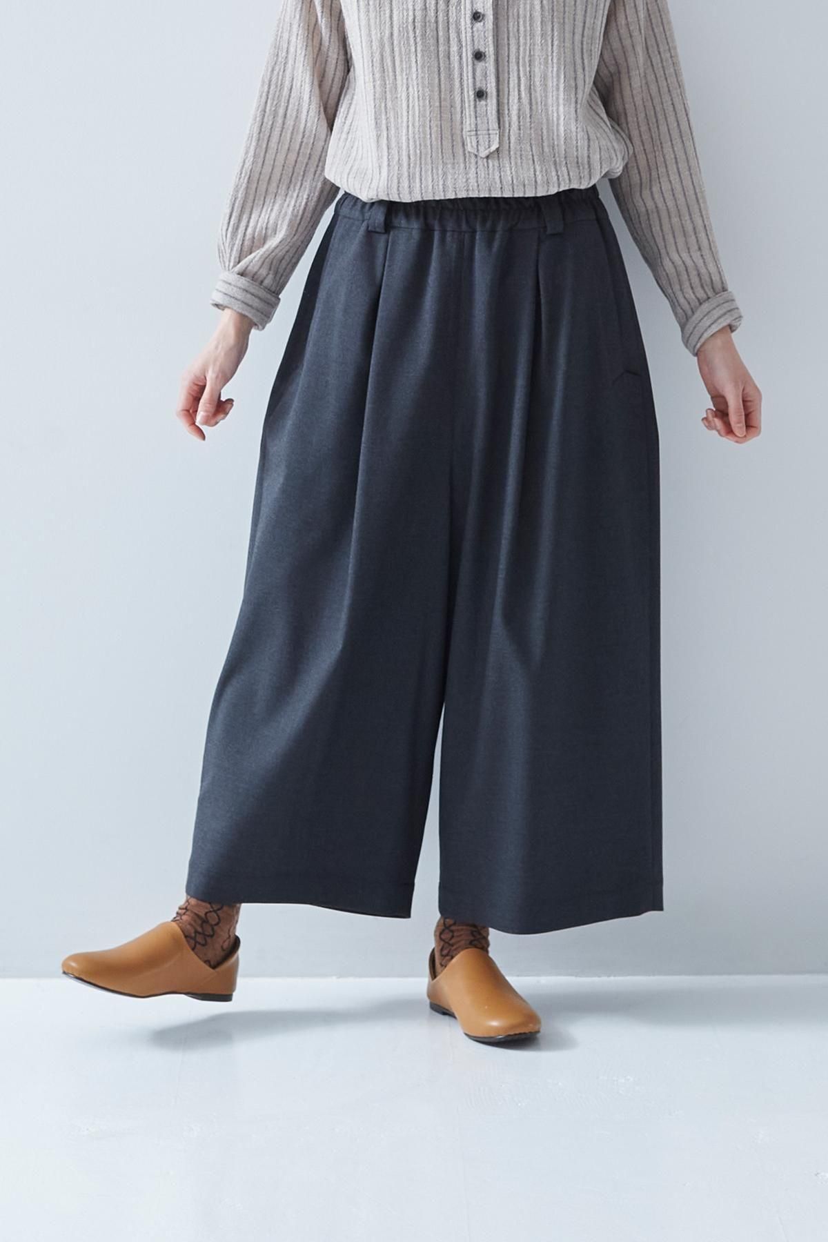 毎シーズン、生地を変えながらつくり続けている定番のガウチョパンツ。