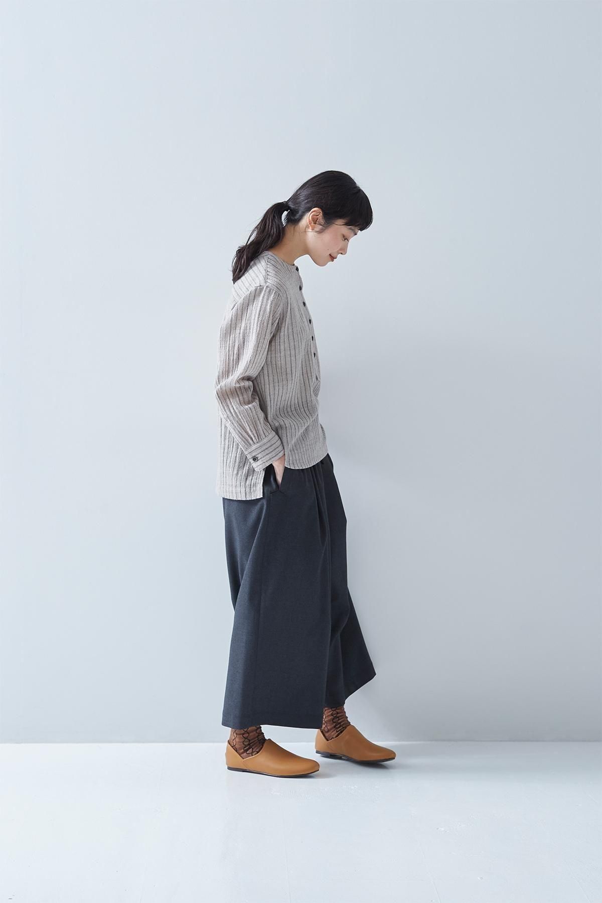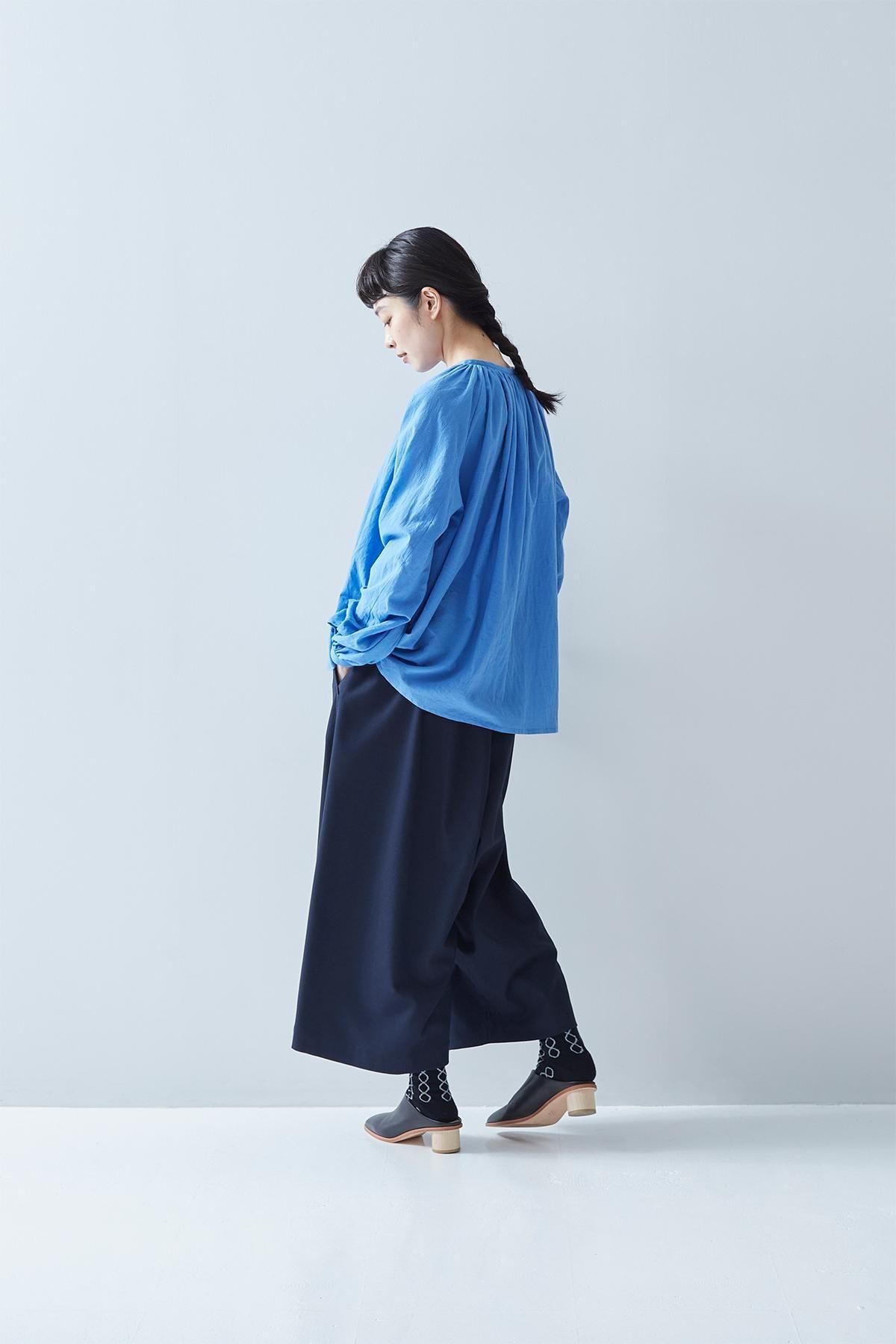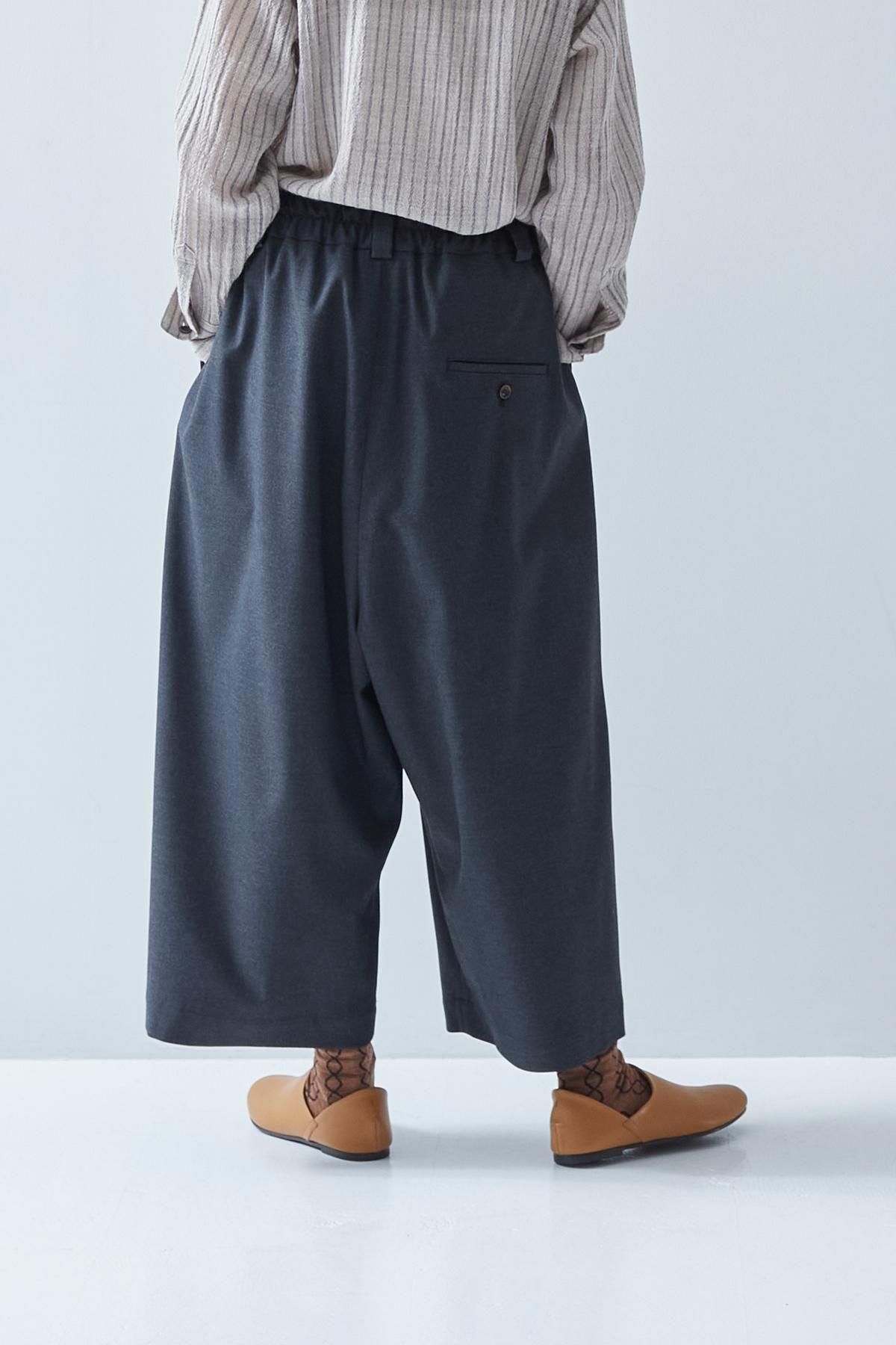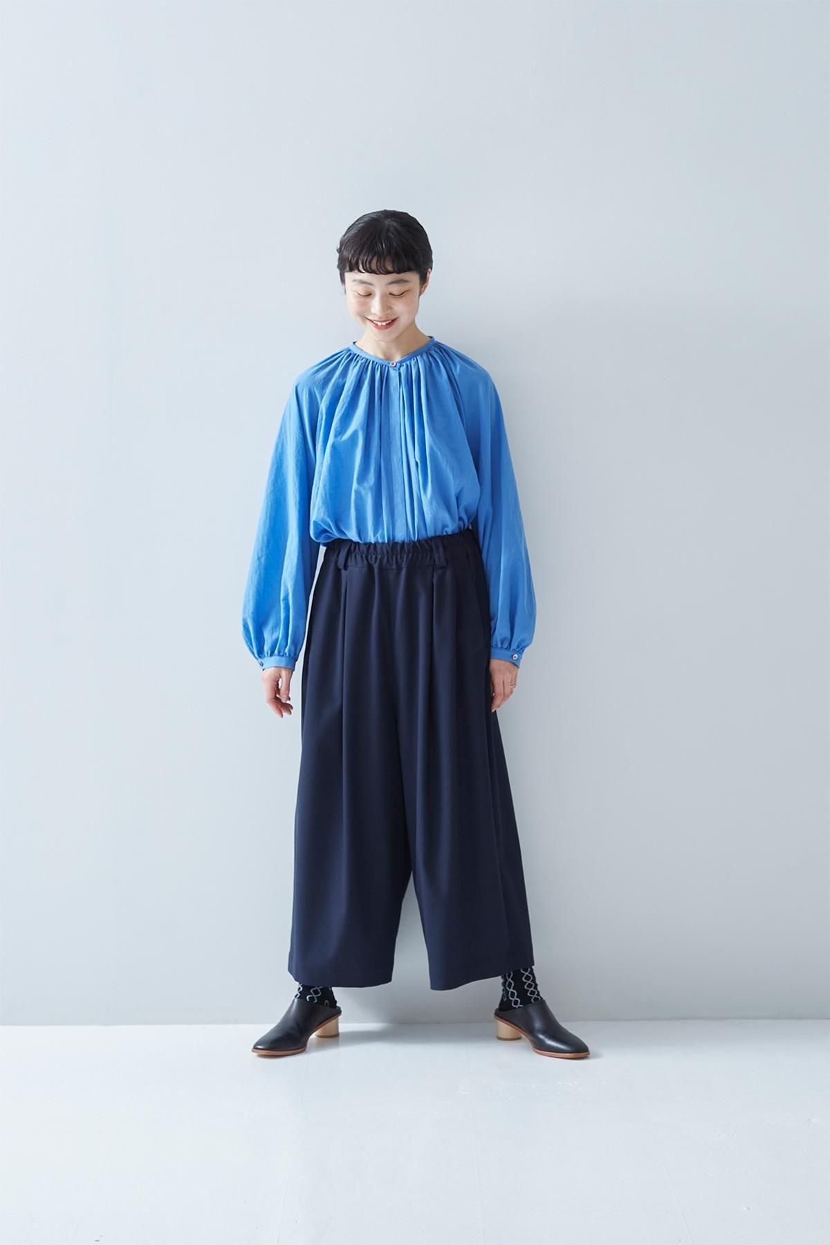 毎シーズン、生地を変えながらつくり続けている定番のガウチョパンツ。