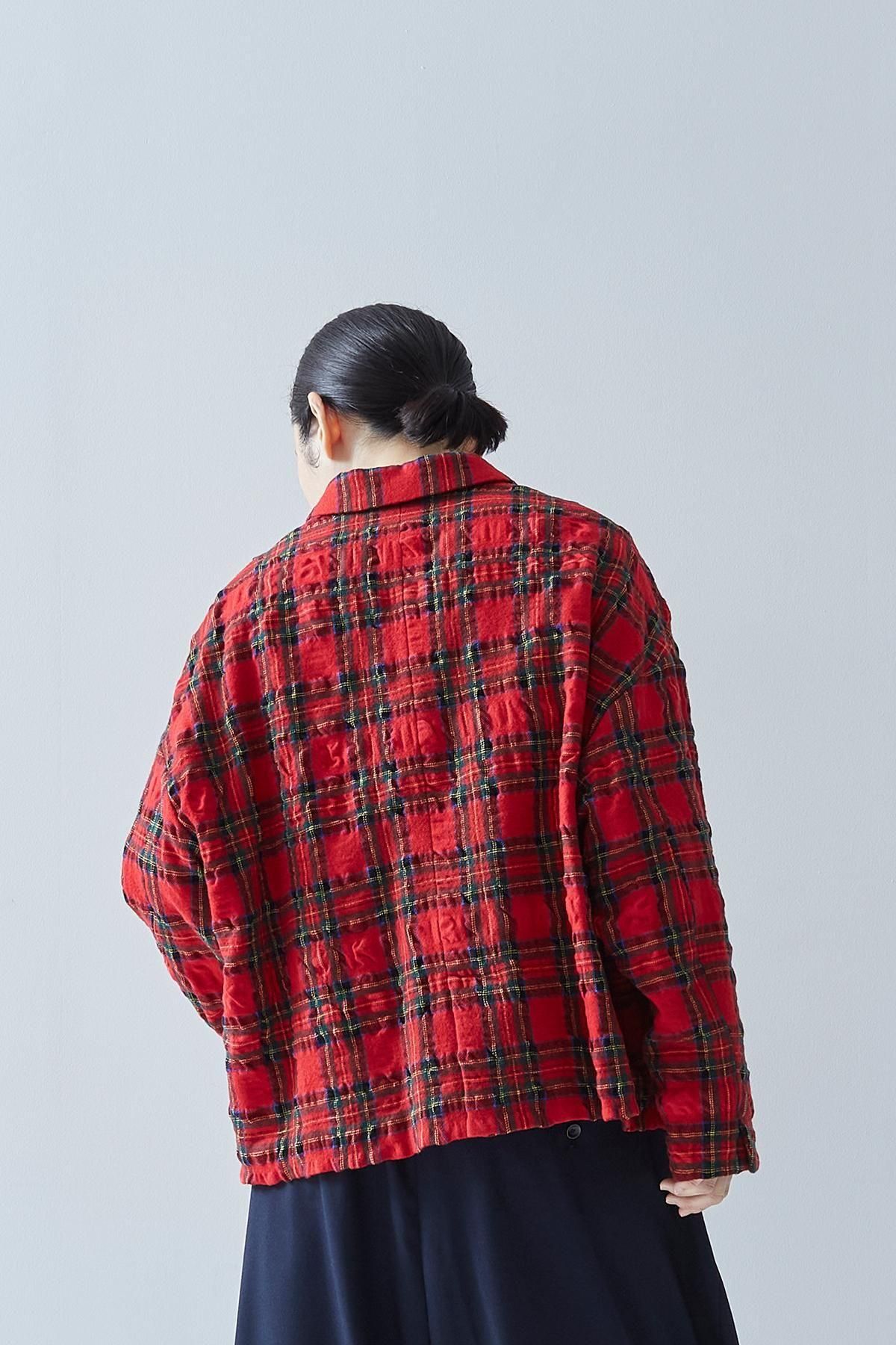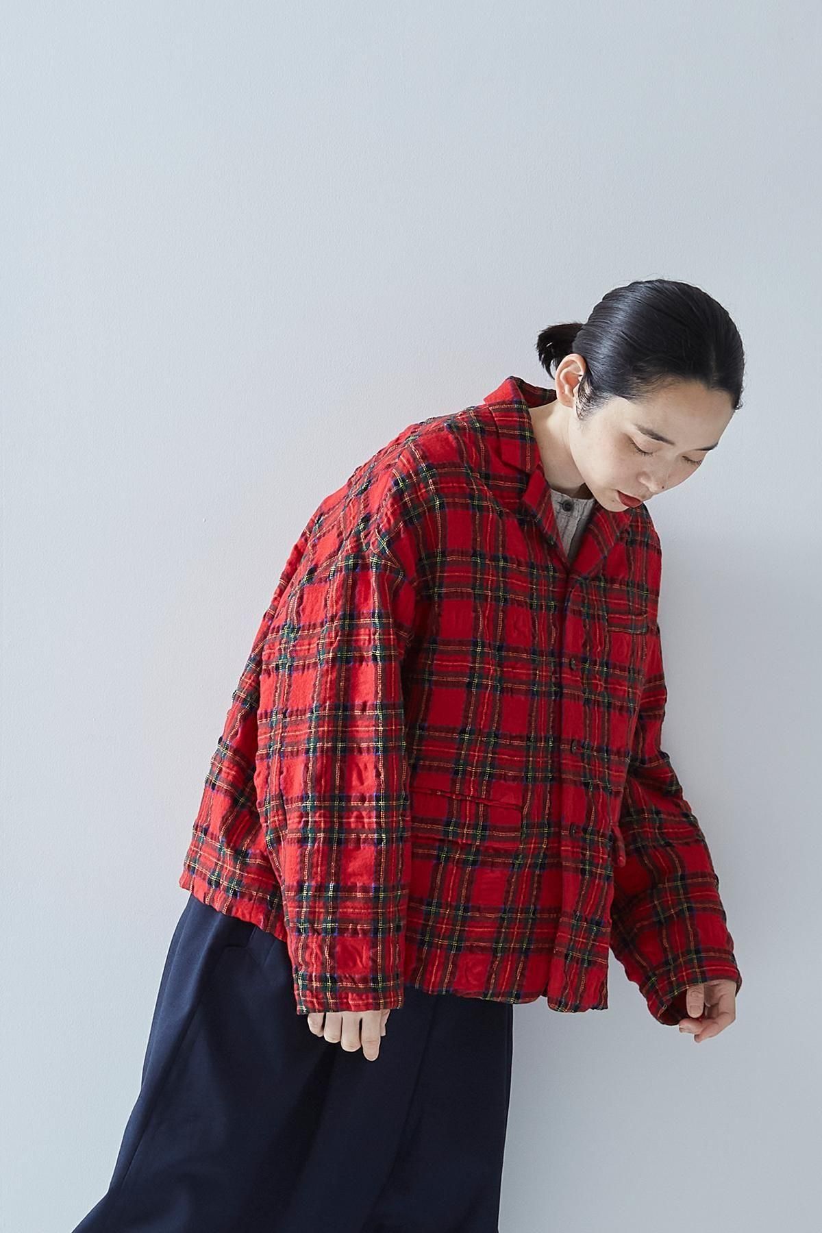 モードなコーディネートにはもちろん、ドロップショルダーのカジュアルなラインと、ワッシャー加工が施されたタータンチェック生地で、カーディガンのようにサッと気軽に羽織るデイリーユースなジャケットとしても活躍してくれる一着です。