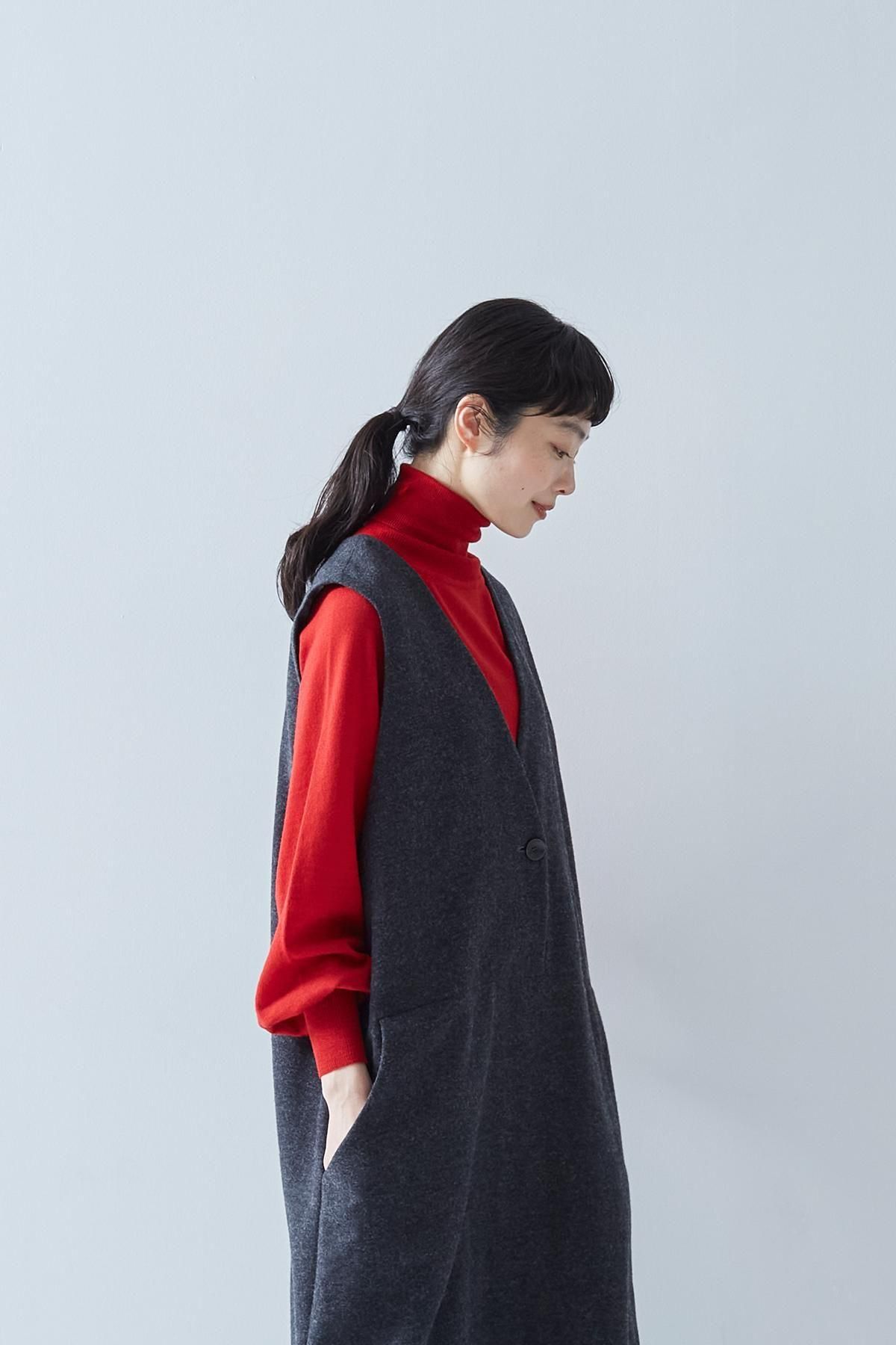 ・アームホールを大きく取ることで、袖幅の広いインナーとも合わせやすく、コーディネートのシルエットを崩すことなく着用することができます。