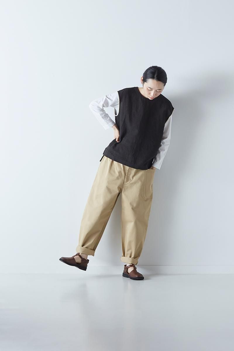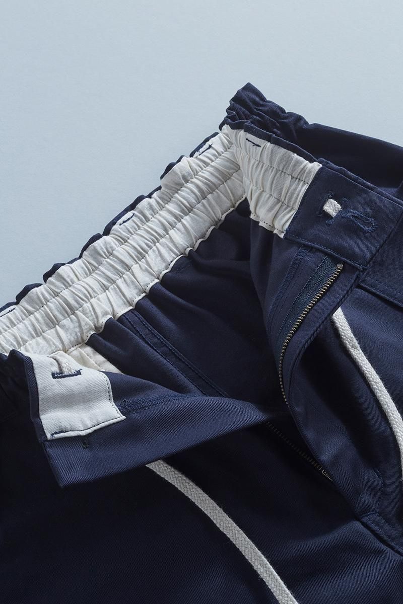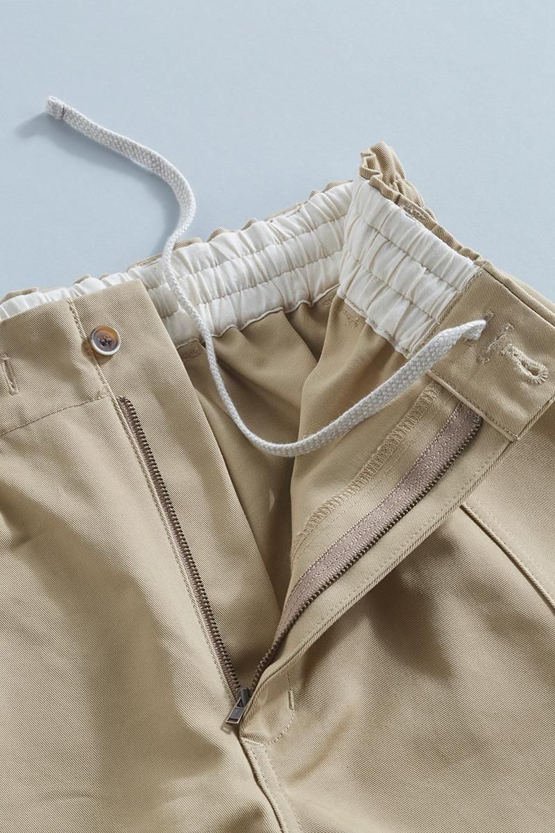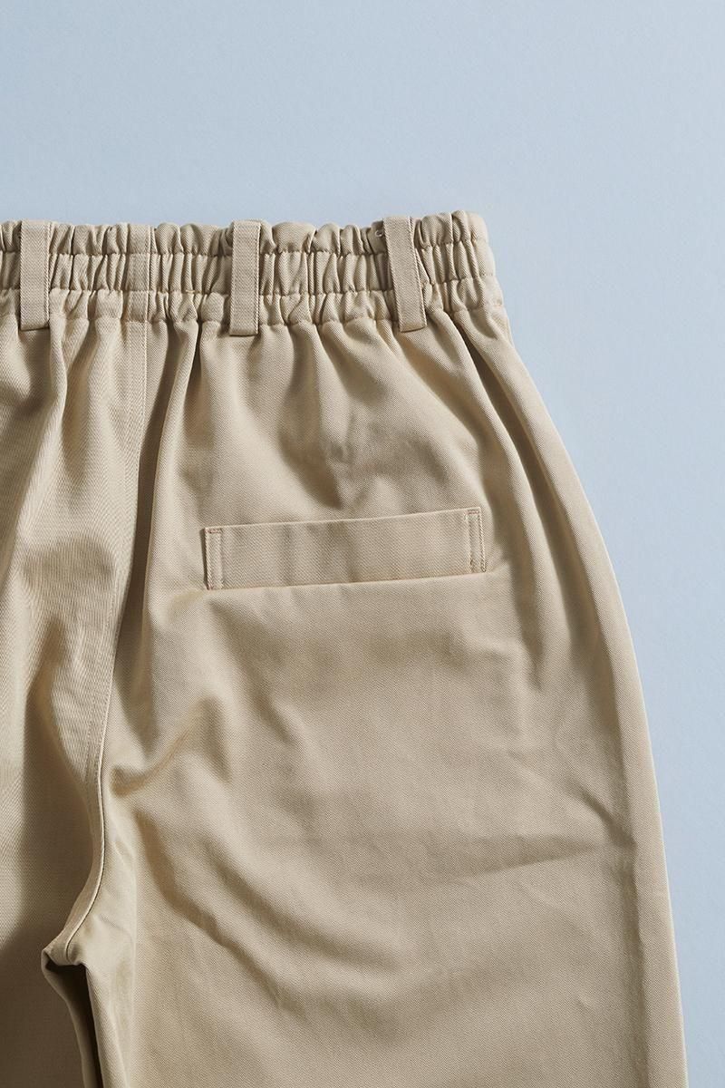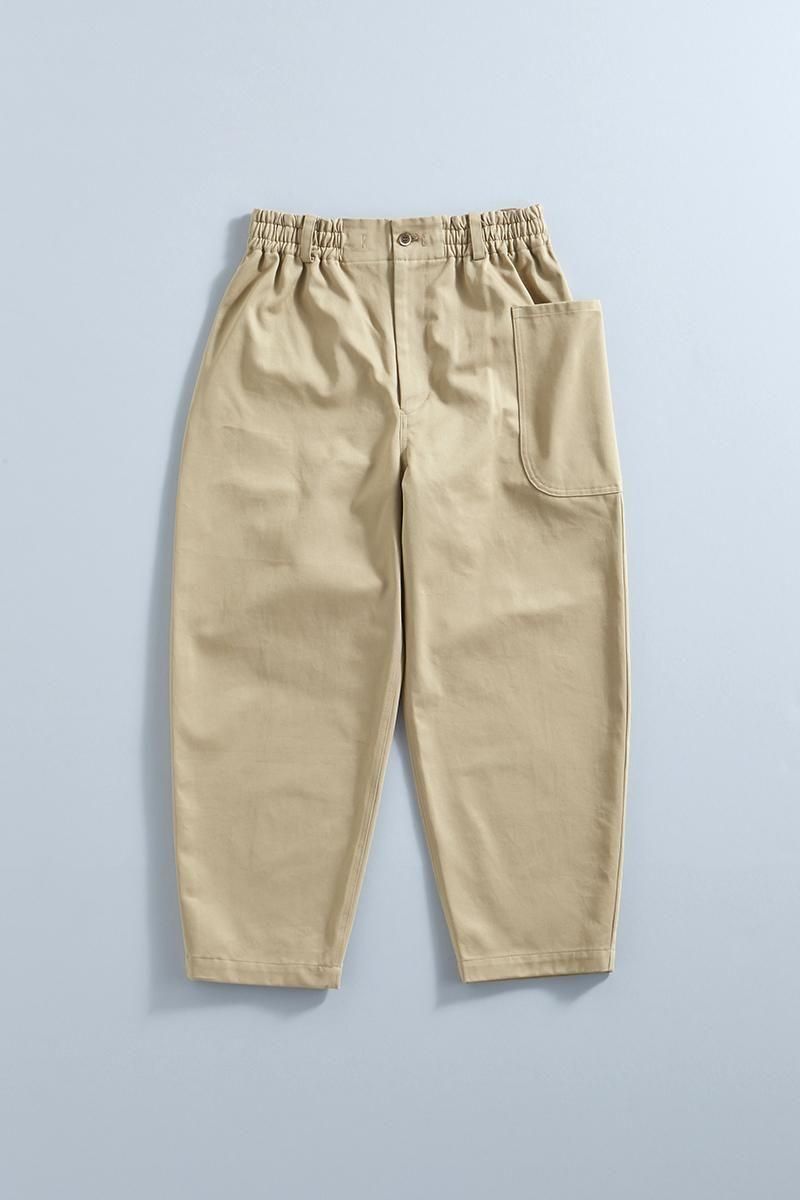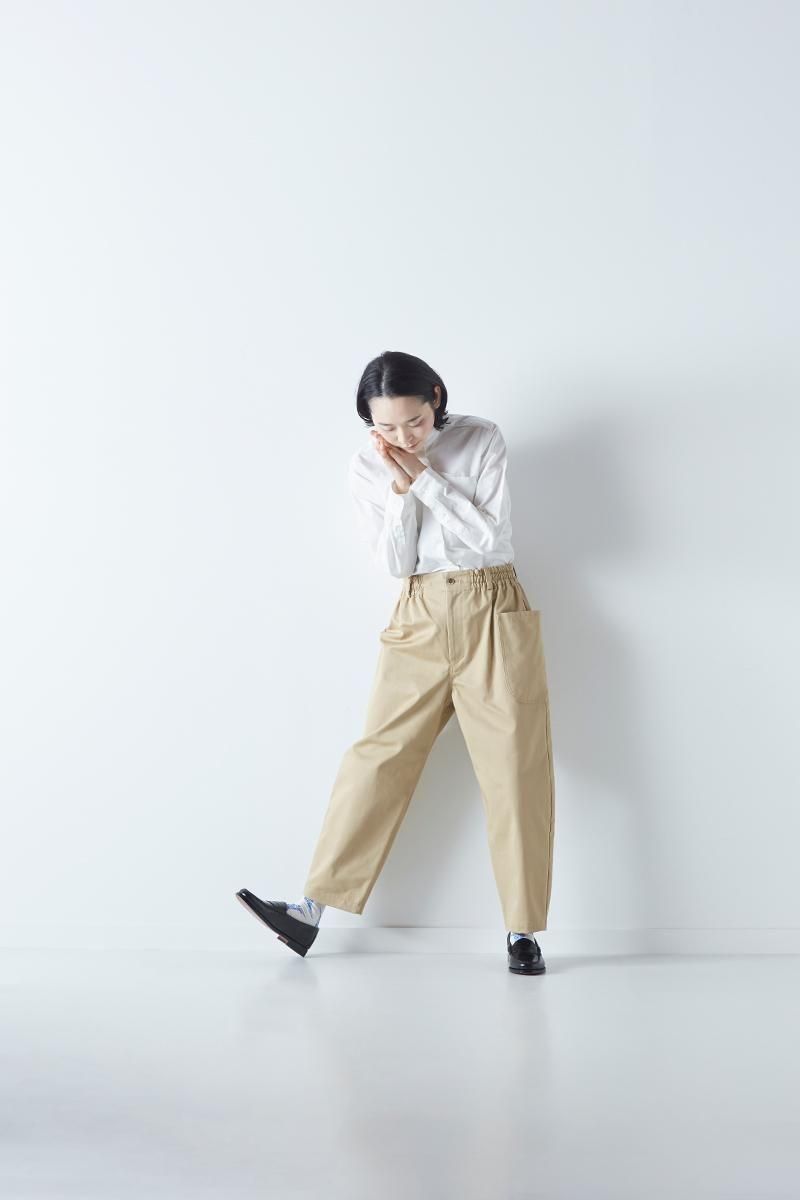 W(ウエスト)ゴム&調整可能な紐がついた、atelier naruse定番のヒップから裾にかけて細くなるバルーン型のパンツのチノver.。2021s/sは、ご要望の多かった「36サイズ」も加わります。