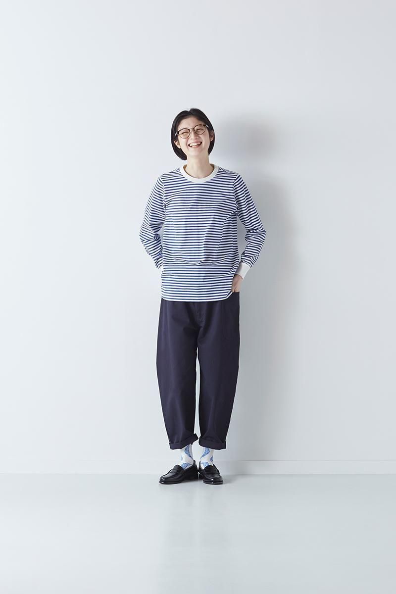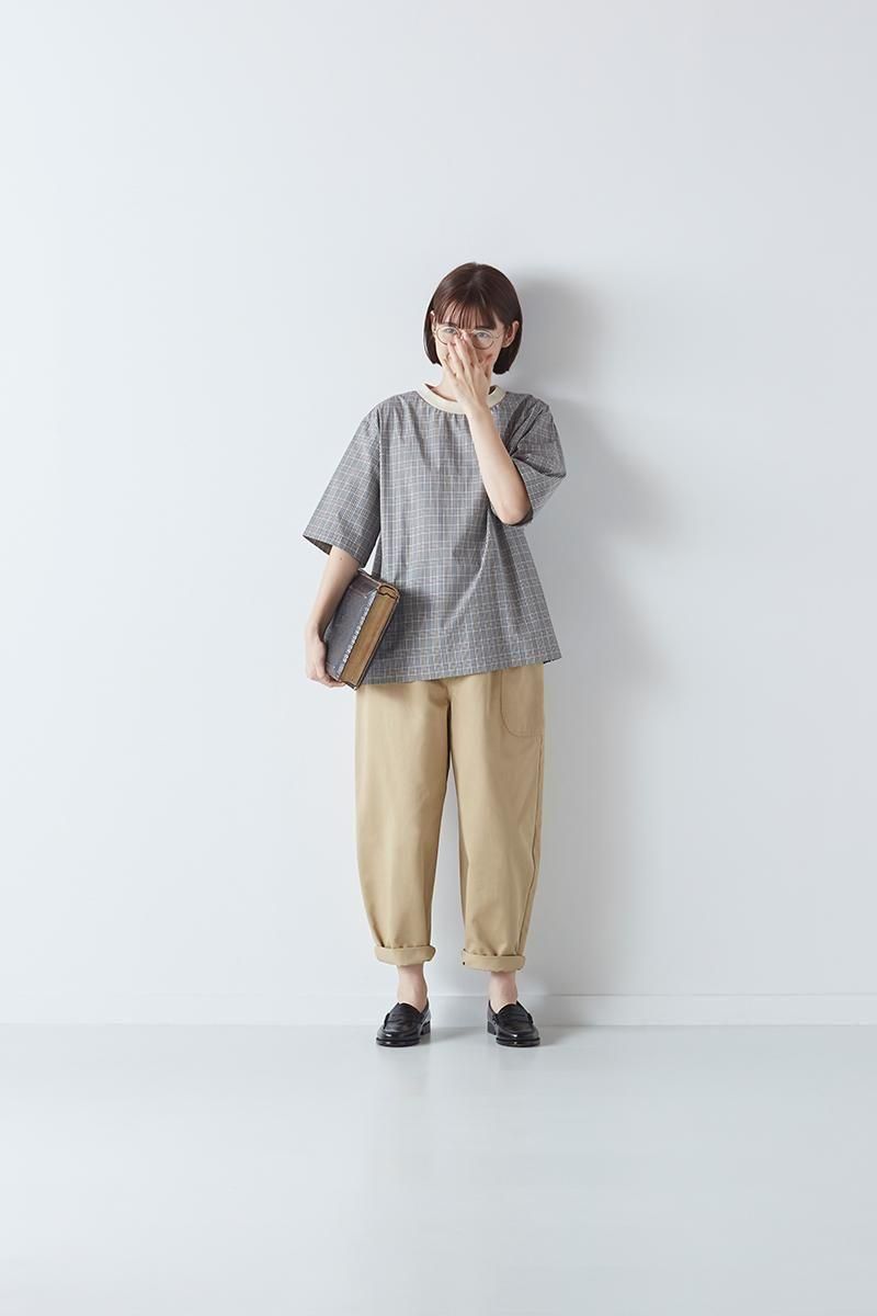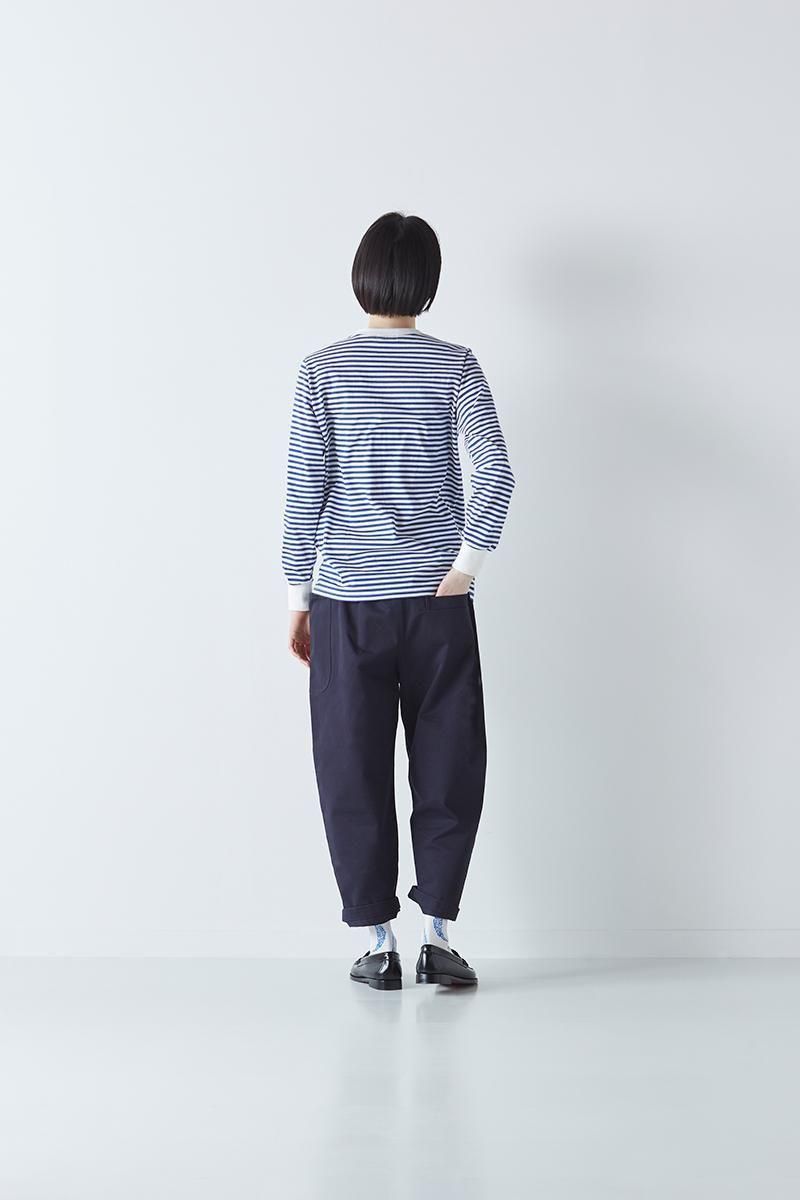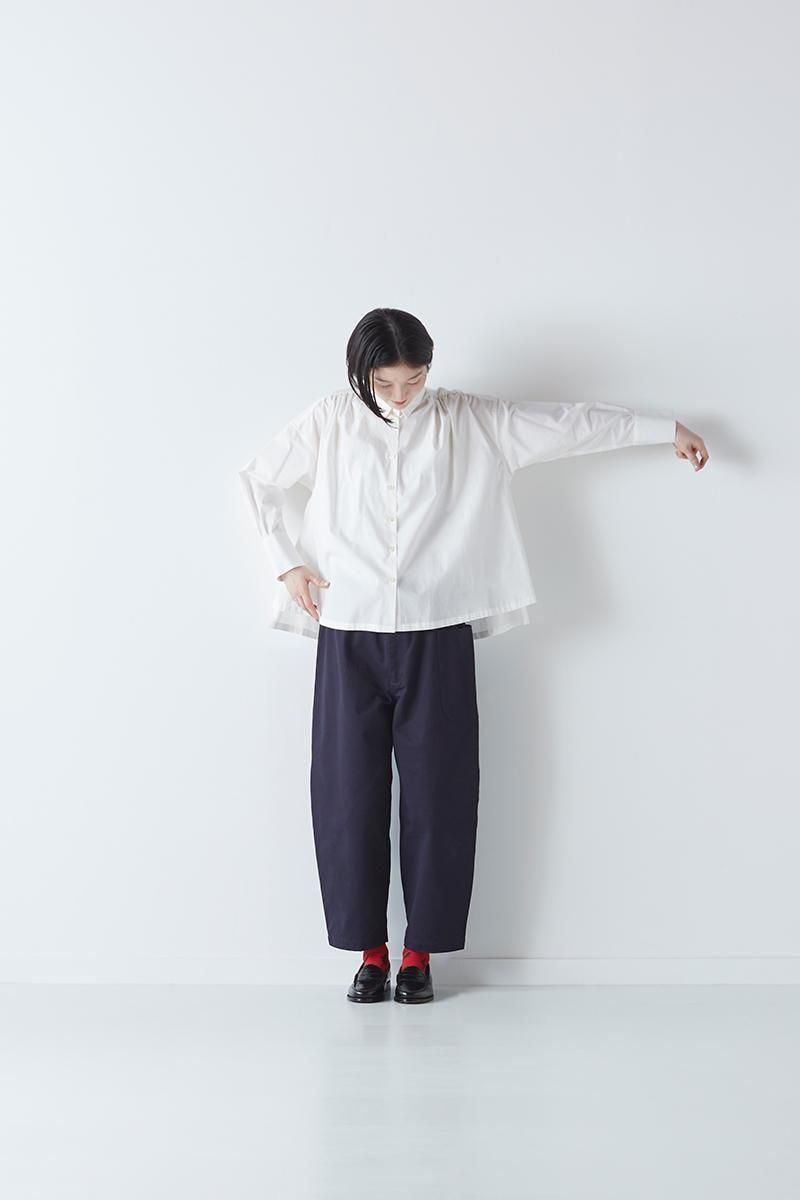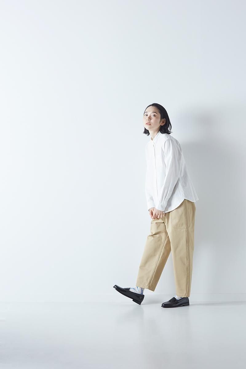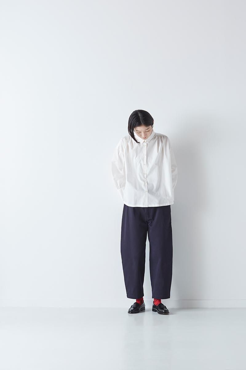 W(ウエスト)ゴム&調整可能な紐がついた、atelier naruse定番のヒップから裾にかけて細くなるバルーン型のパンツのチノver.。2021s/sは、ご要望の多かった「36サイズ」も加わります。