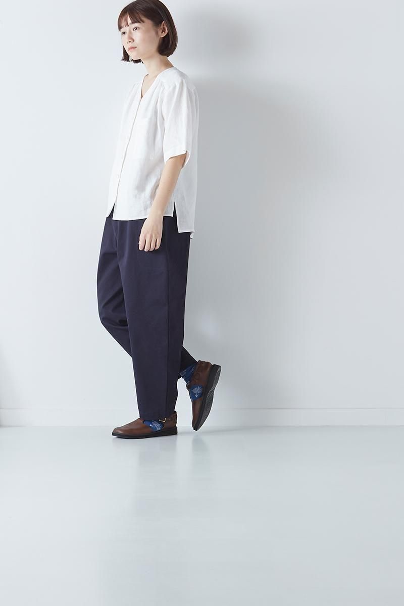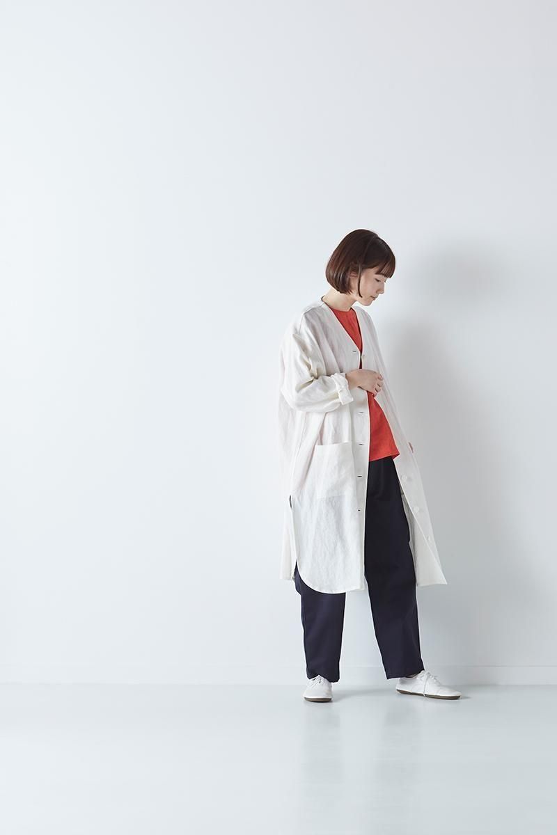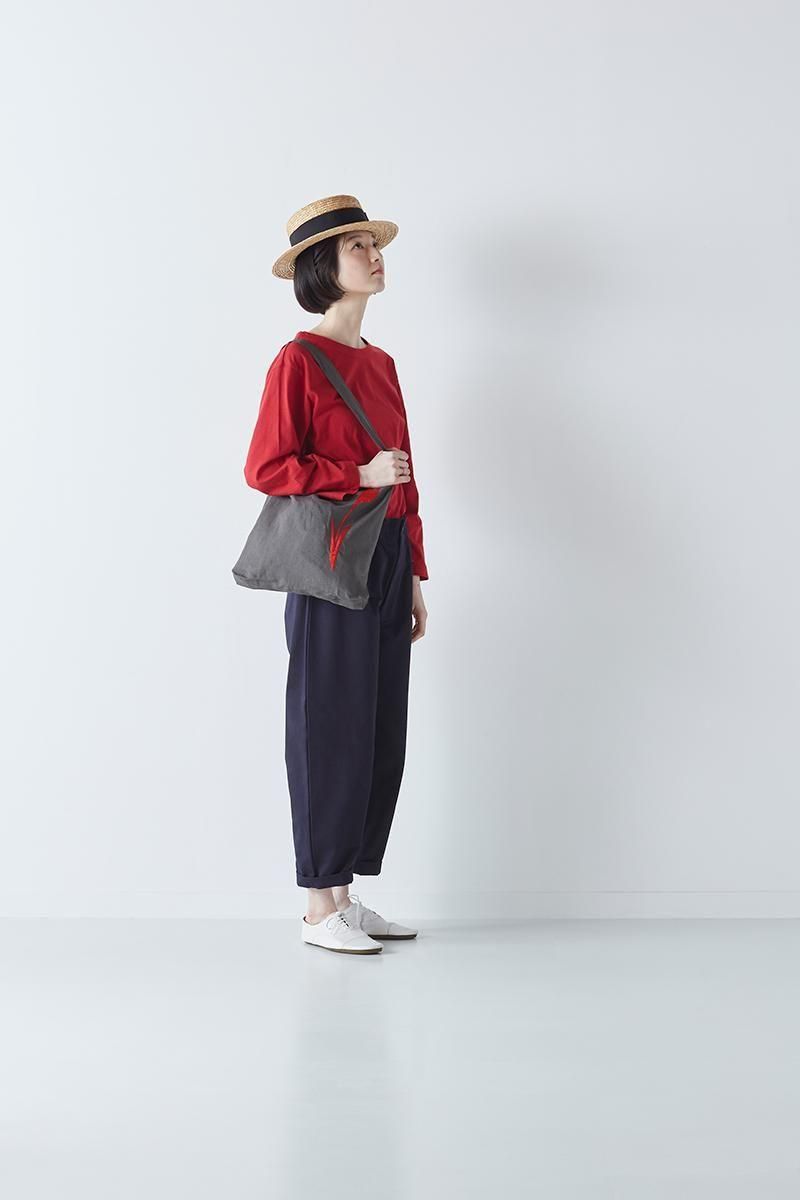 使用している布地は、毛羽のすくないKAYANUコットンチノ地。硬さのある丈夫な、中肉厚で高密度のツイルコットン地です。