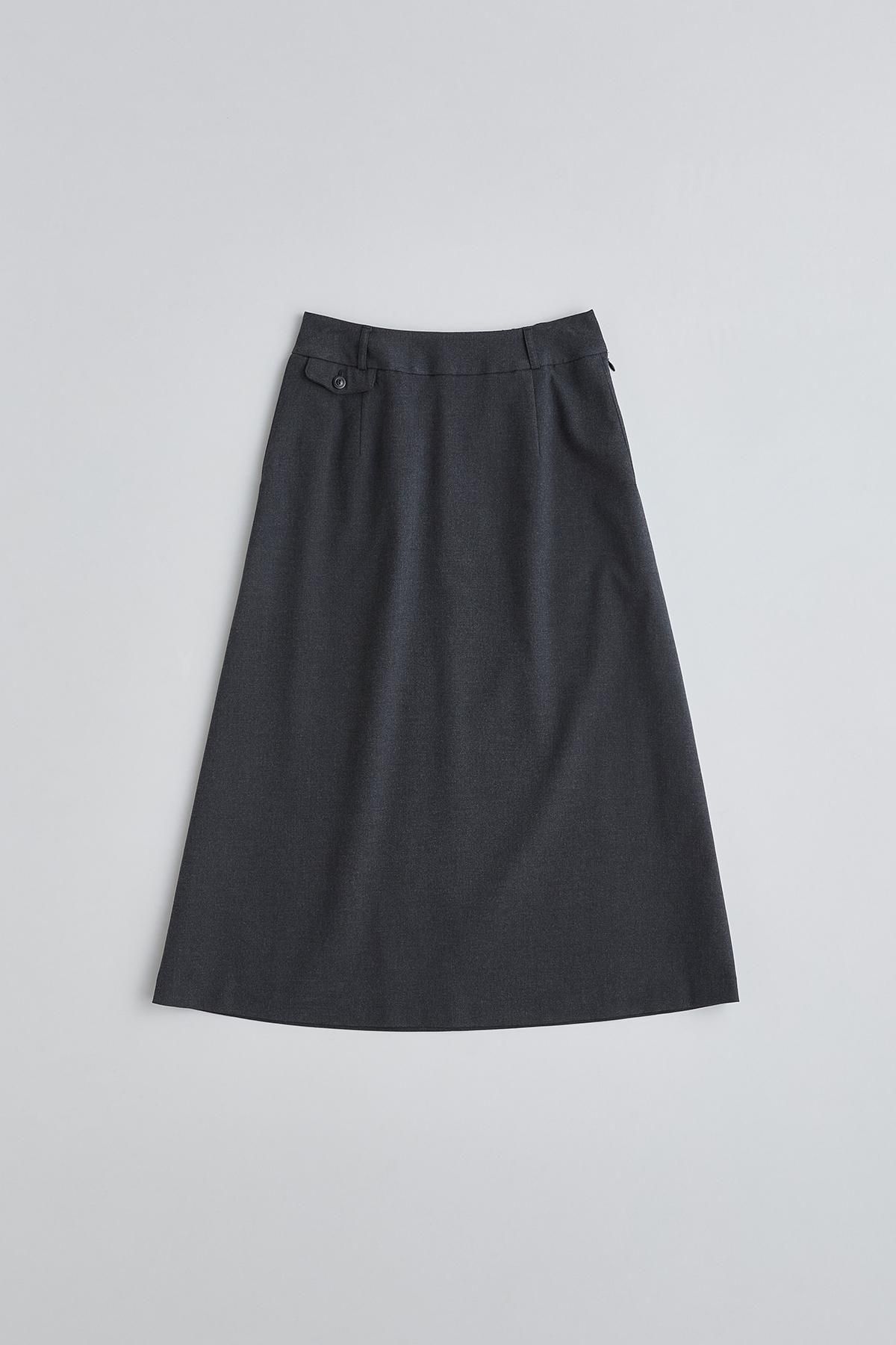レトロクラシックな雰囲気が魅力のタイトなロング丈のAラインスカート。一見シンプルなデザインながらも、右ウエスト下のフラップ付きのポケットや、左脇のコンシールファスナー開きでありながら両サイドに切りポケットを配するなど、そのディテールにもこだわったスカートです。