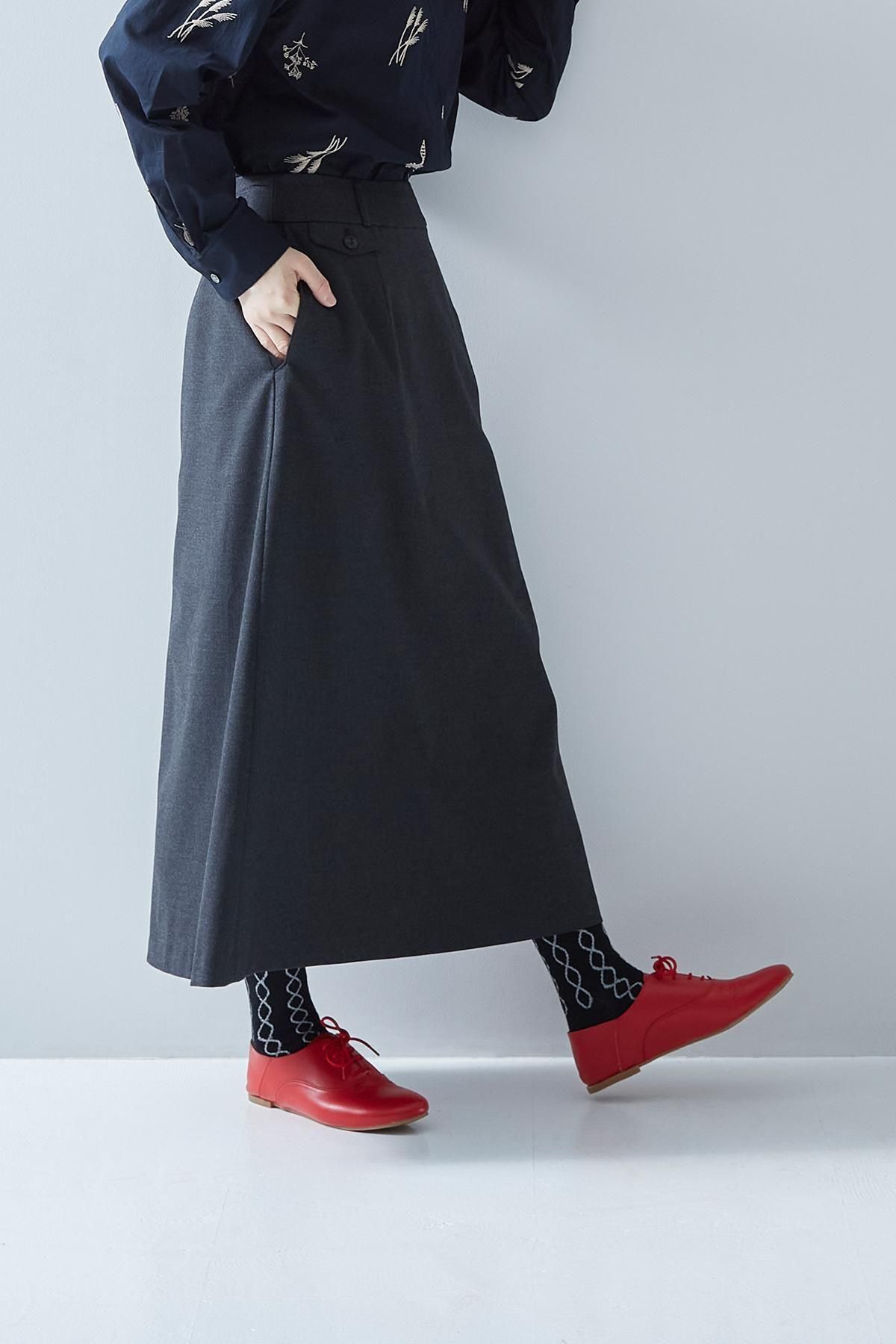 ・Aラインで動きやすい裾まわりでありながら、そのシルエットはすっきりとタイトなスカートです。
