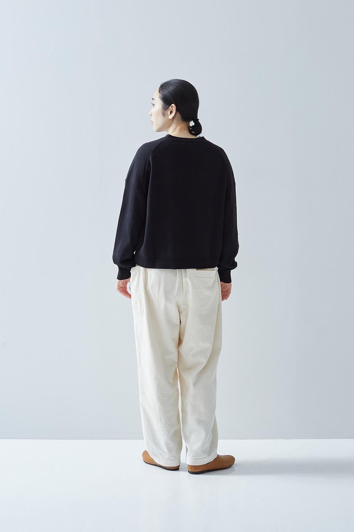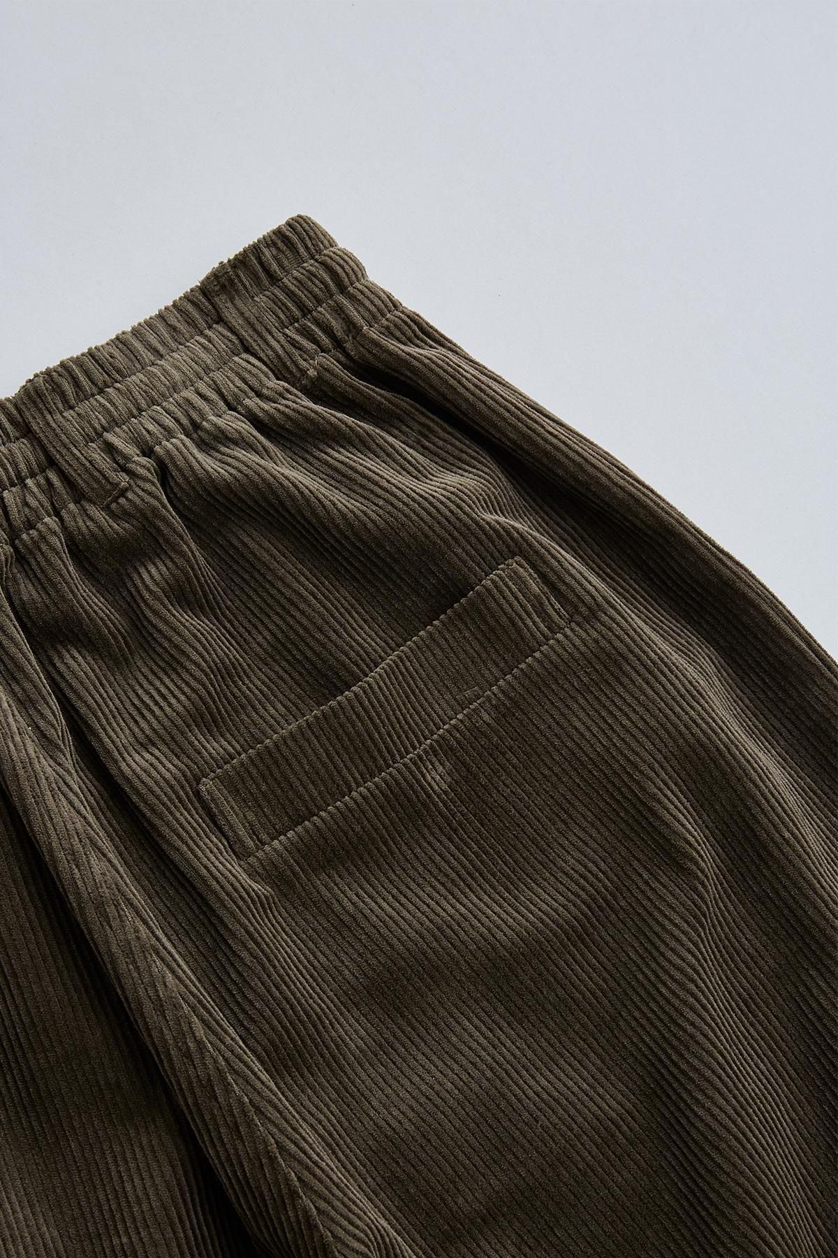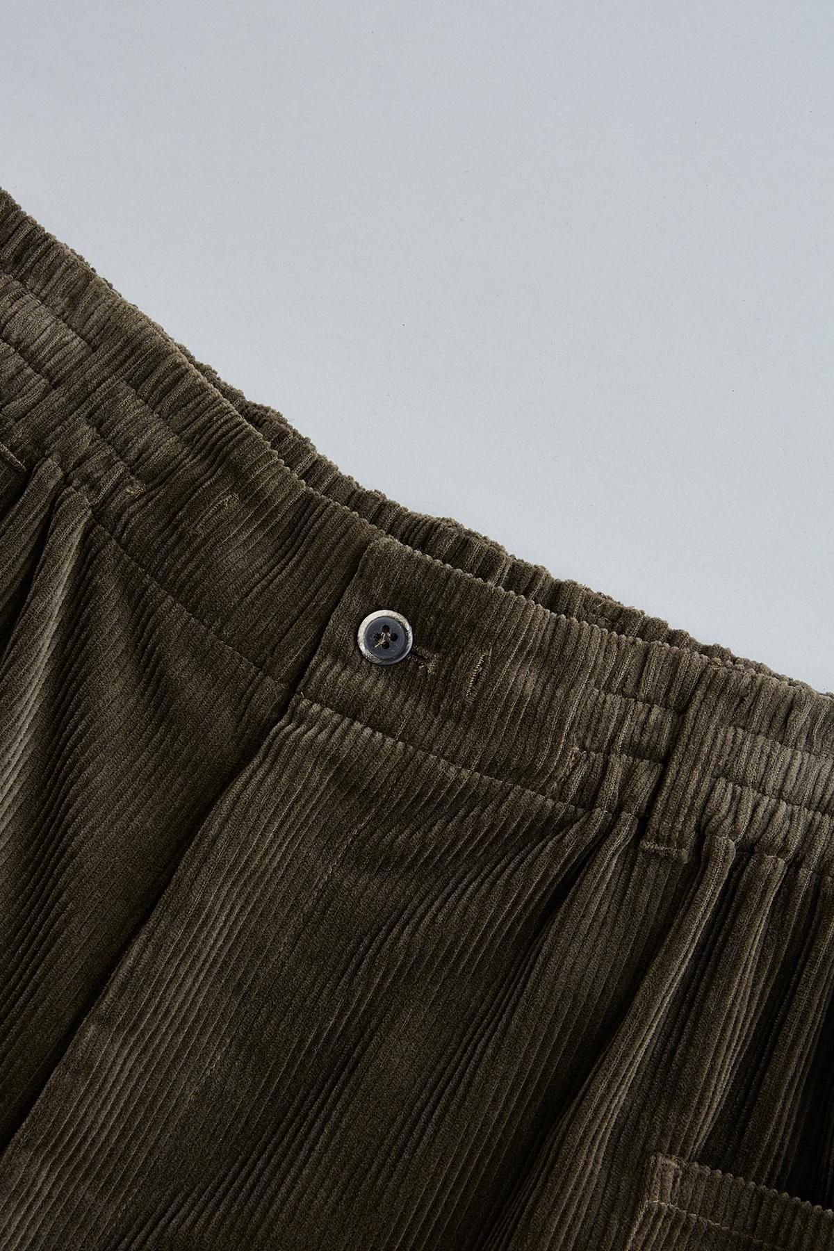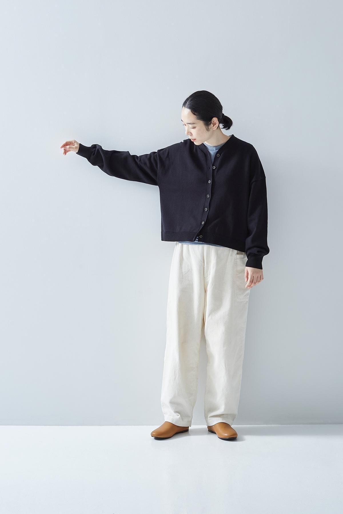 W(ウエスト)ゴム&調整可能な紐がついた、atelier naruse 定番のヒップから裾にかけて細くなるバルーン型のパンツ。こちらは、ここ数シーズン秋冬の定番として展開しているコーデュロイ(ワンウォッシュ)バージョンです。