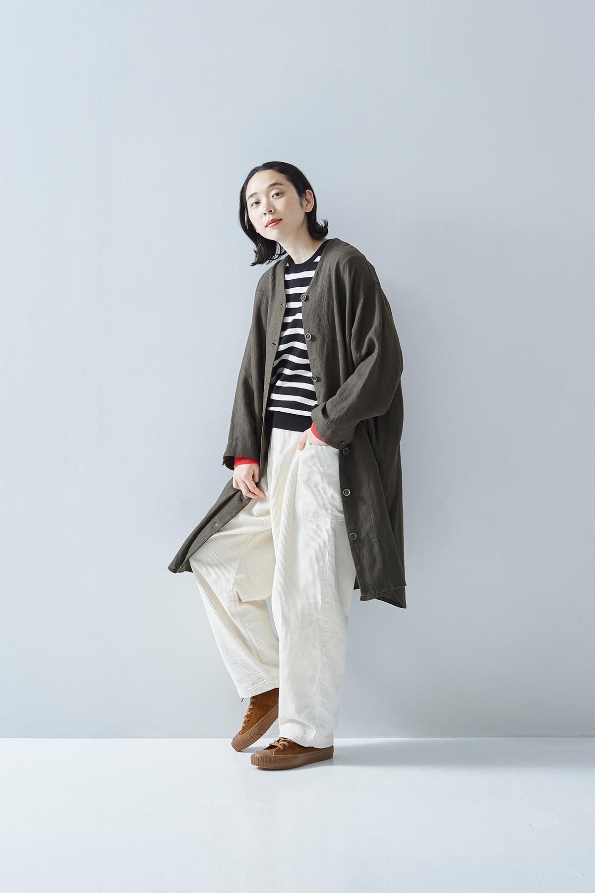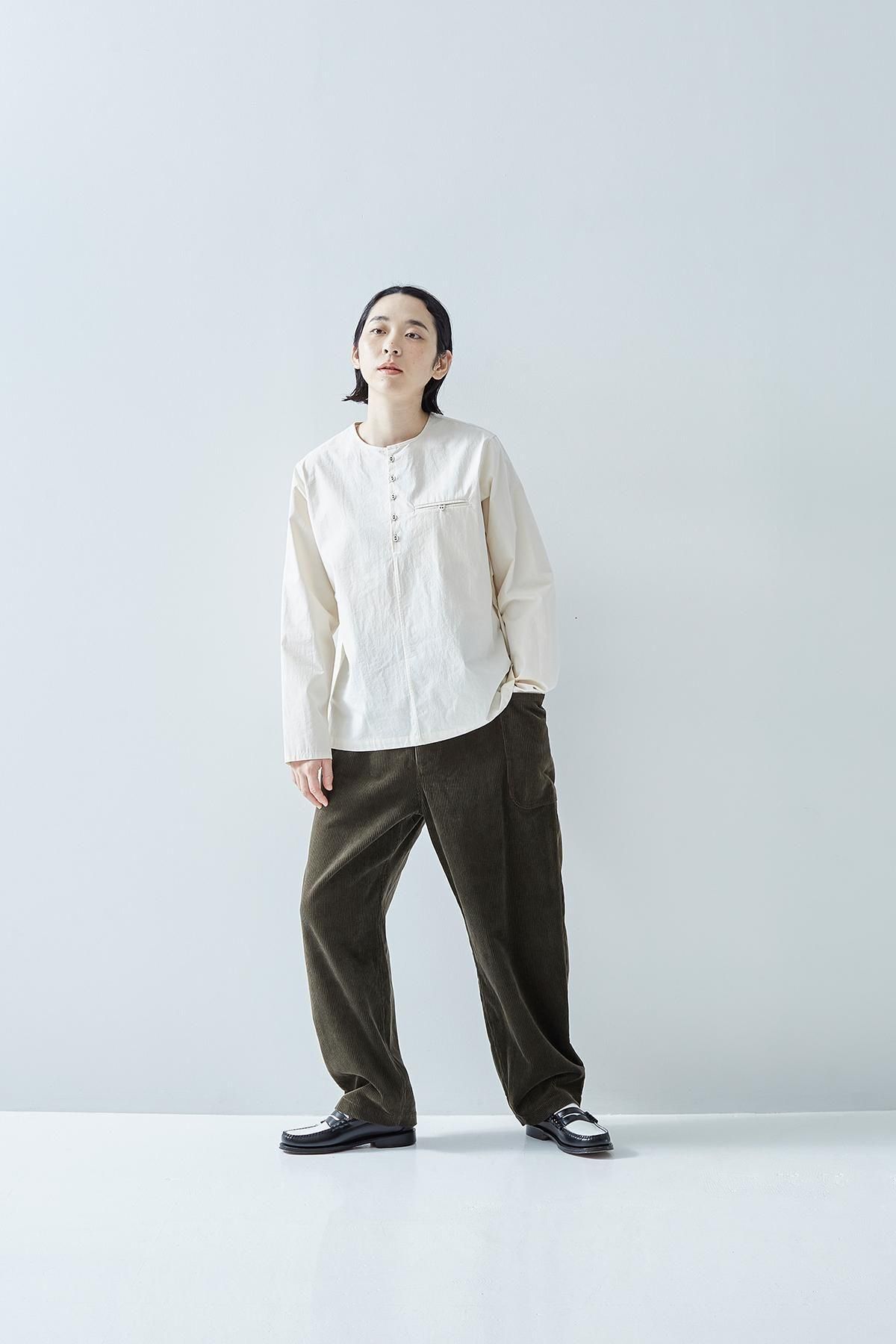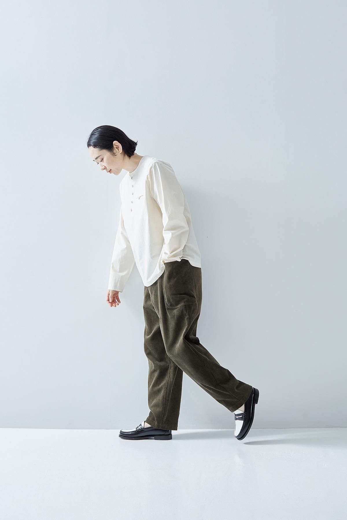 ・コーデュロイ特有の凹凸感と、硫化染めによって、洗いや着用を重ねるごとにエイジングを楽しめる素材です。