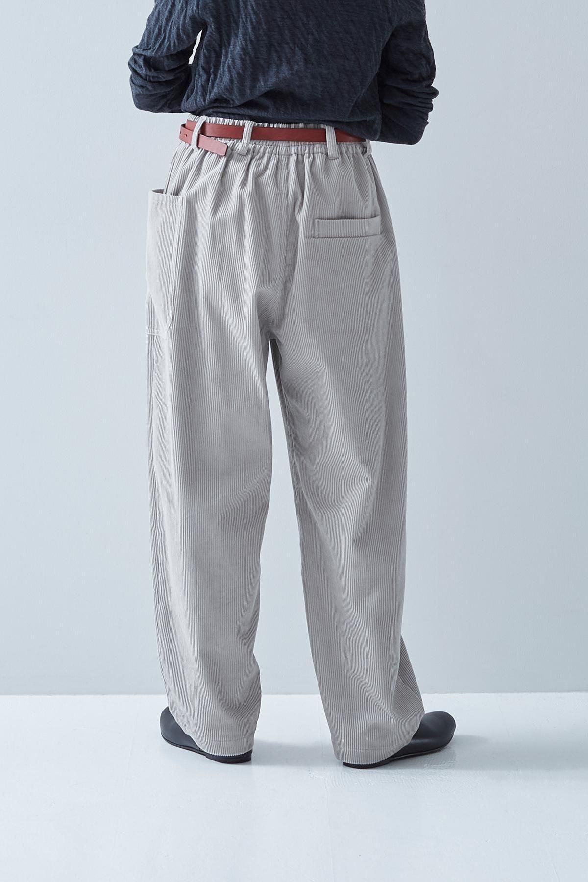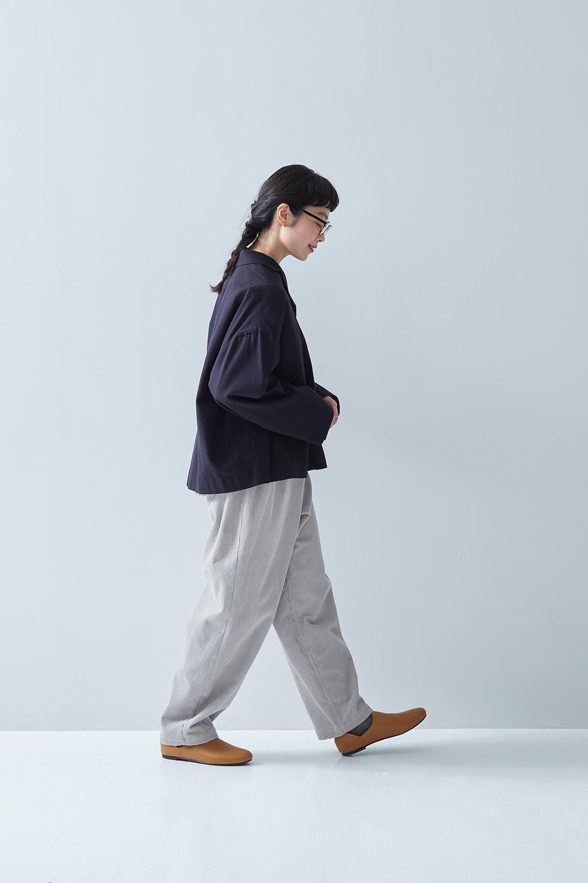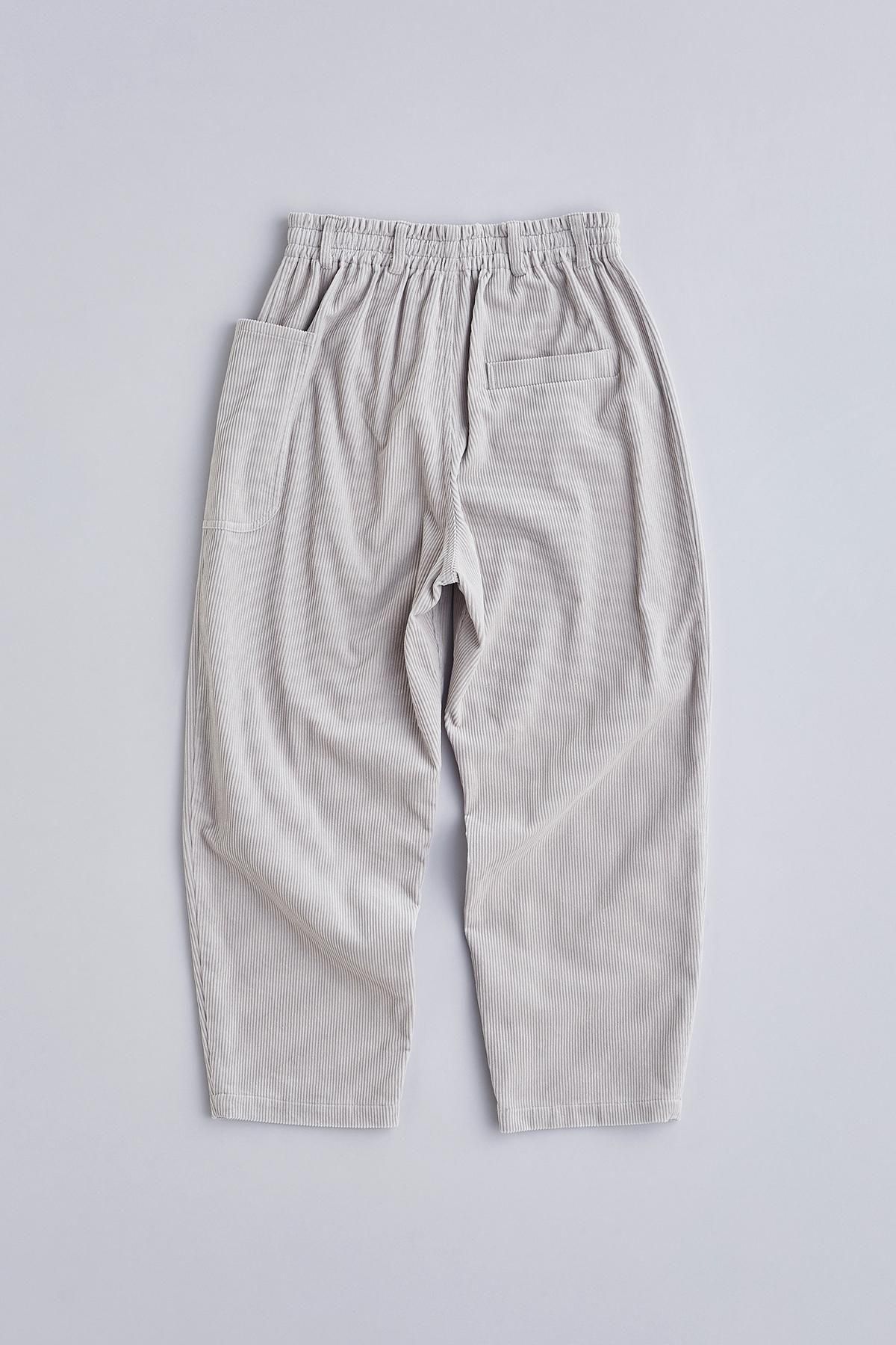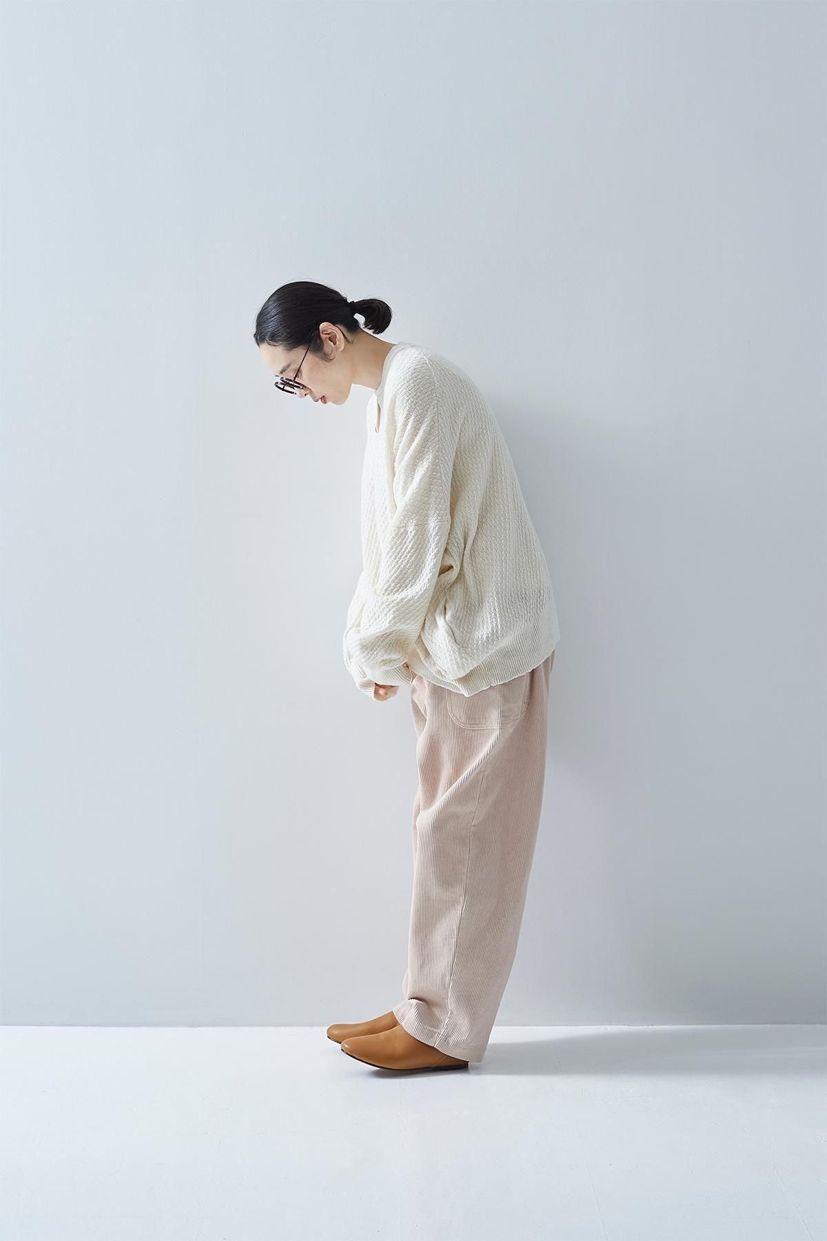 W(ウエスト)ゴム&調整可能な紐がついた、atelier naruse 定番のヒップから裾にかけて細くなるバルーン型のパンツ。こちらは、ここ数シーズン秋冬の定番として展開しているコーデュロイ(ワンウォッシュ)バージョンです。