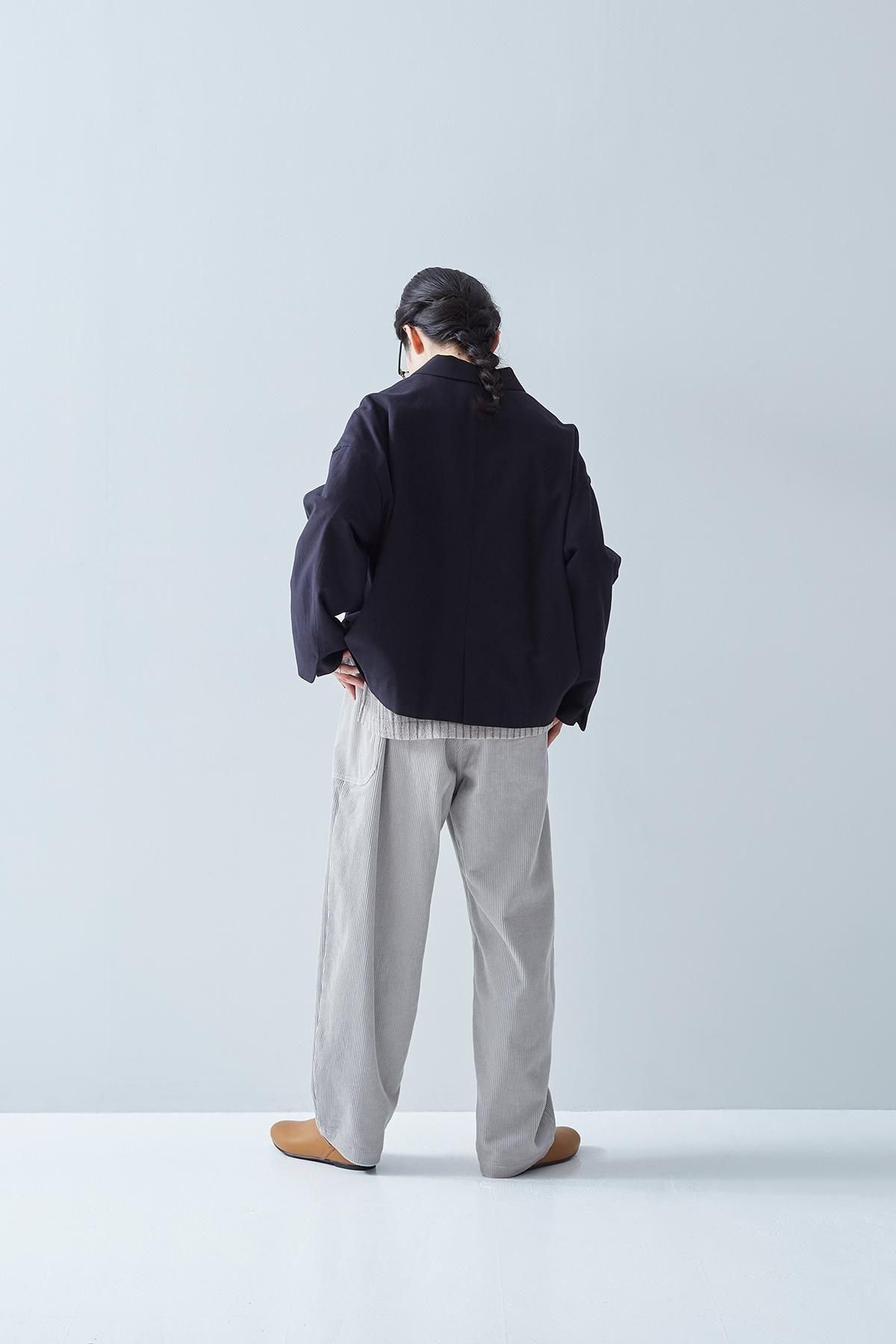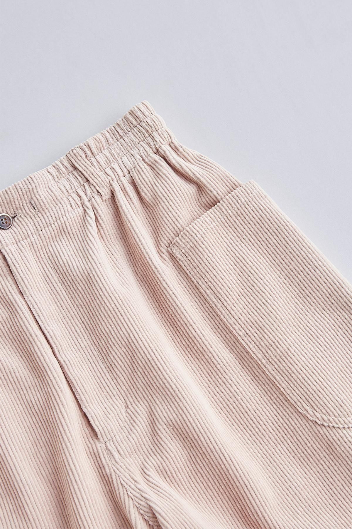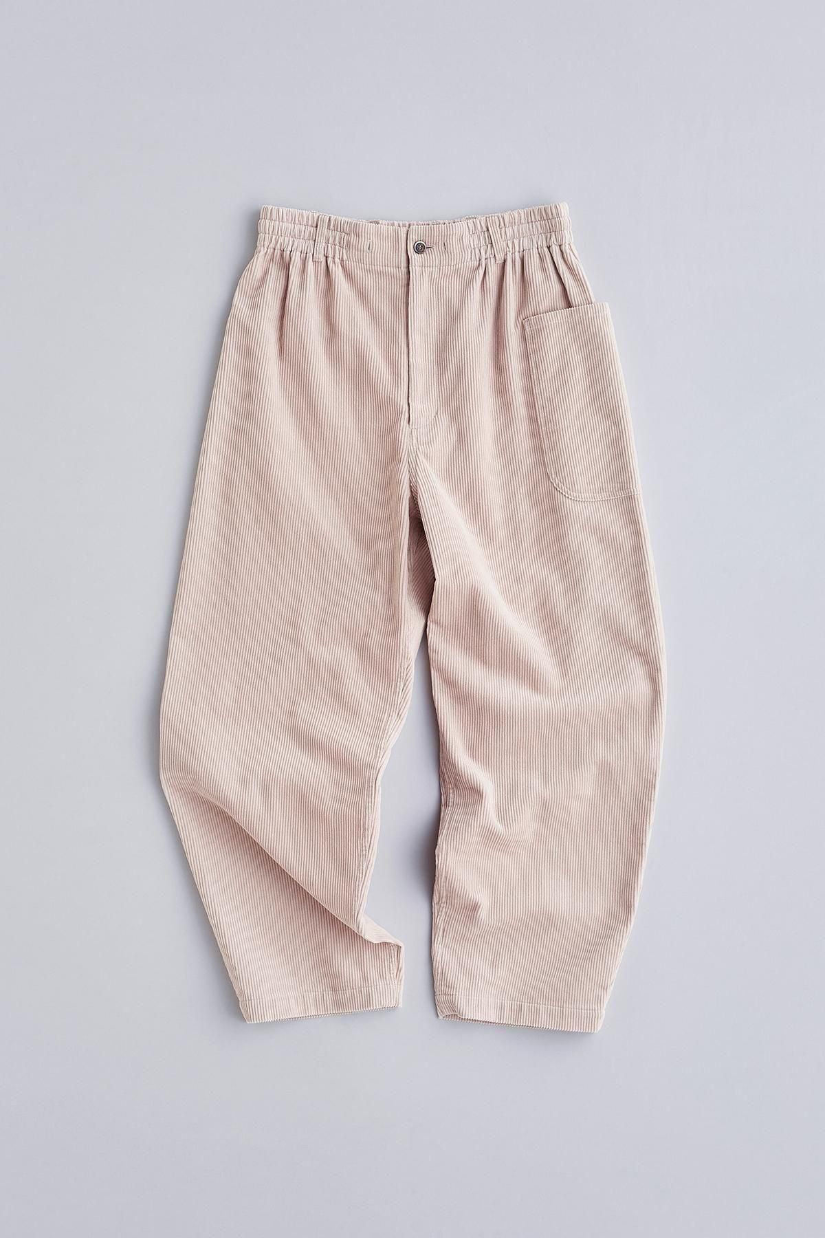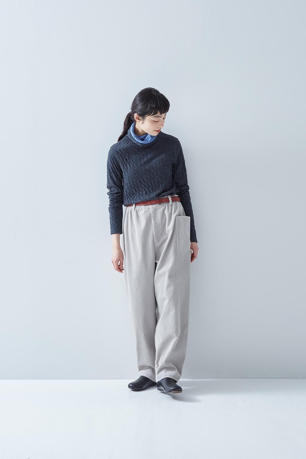 W(ウエスト)ゴム&調整可能な紐がついた、atelier naruse 定番のヒップから裾にかけて細くなるバルーン型のパンツ。こちらは、ここ数シーズン秋冬の定番として展開しているコーデュロイ(ワンウォッシュ)バージョンです。