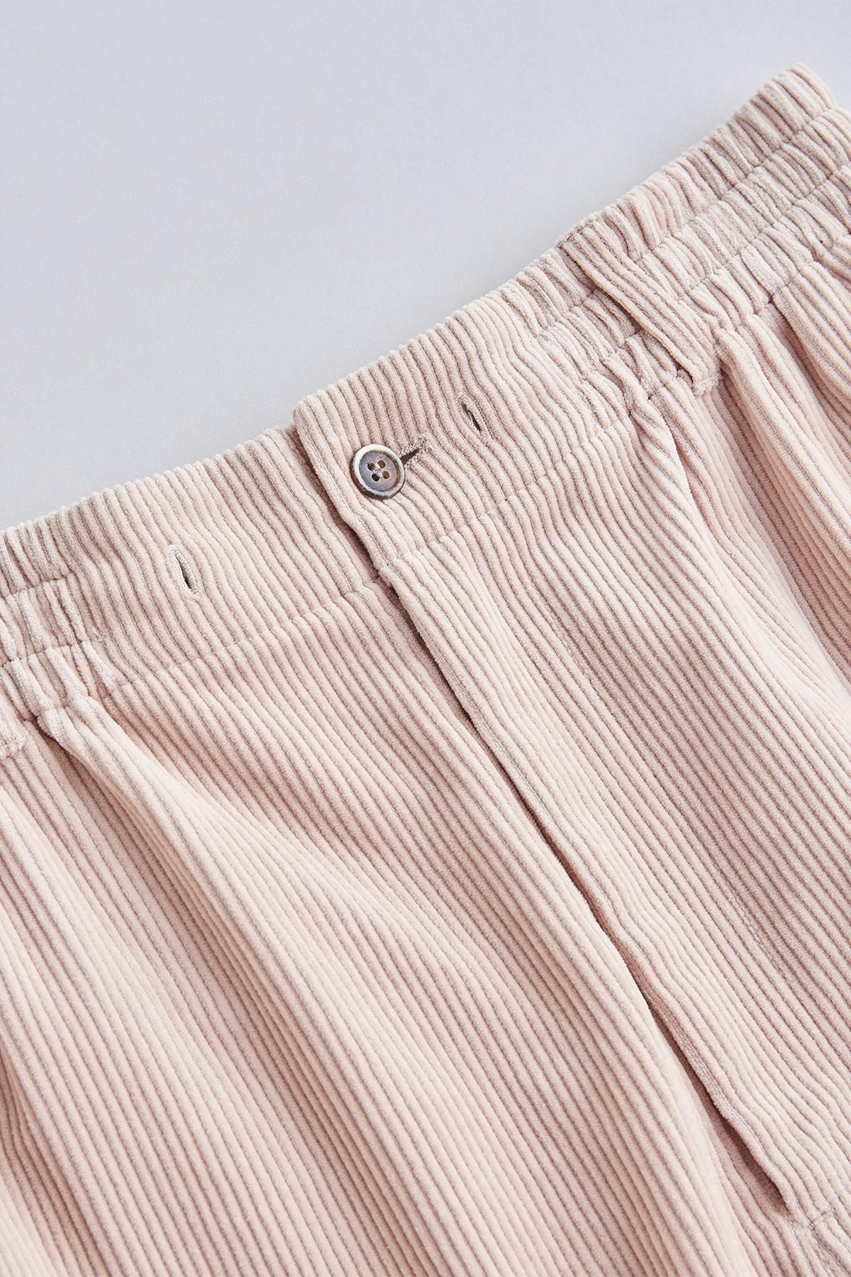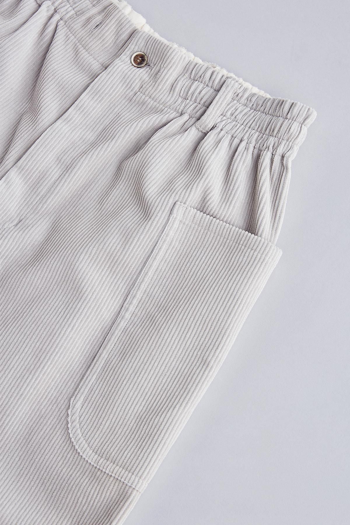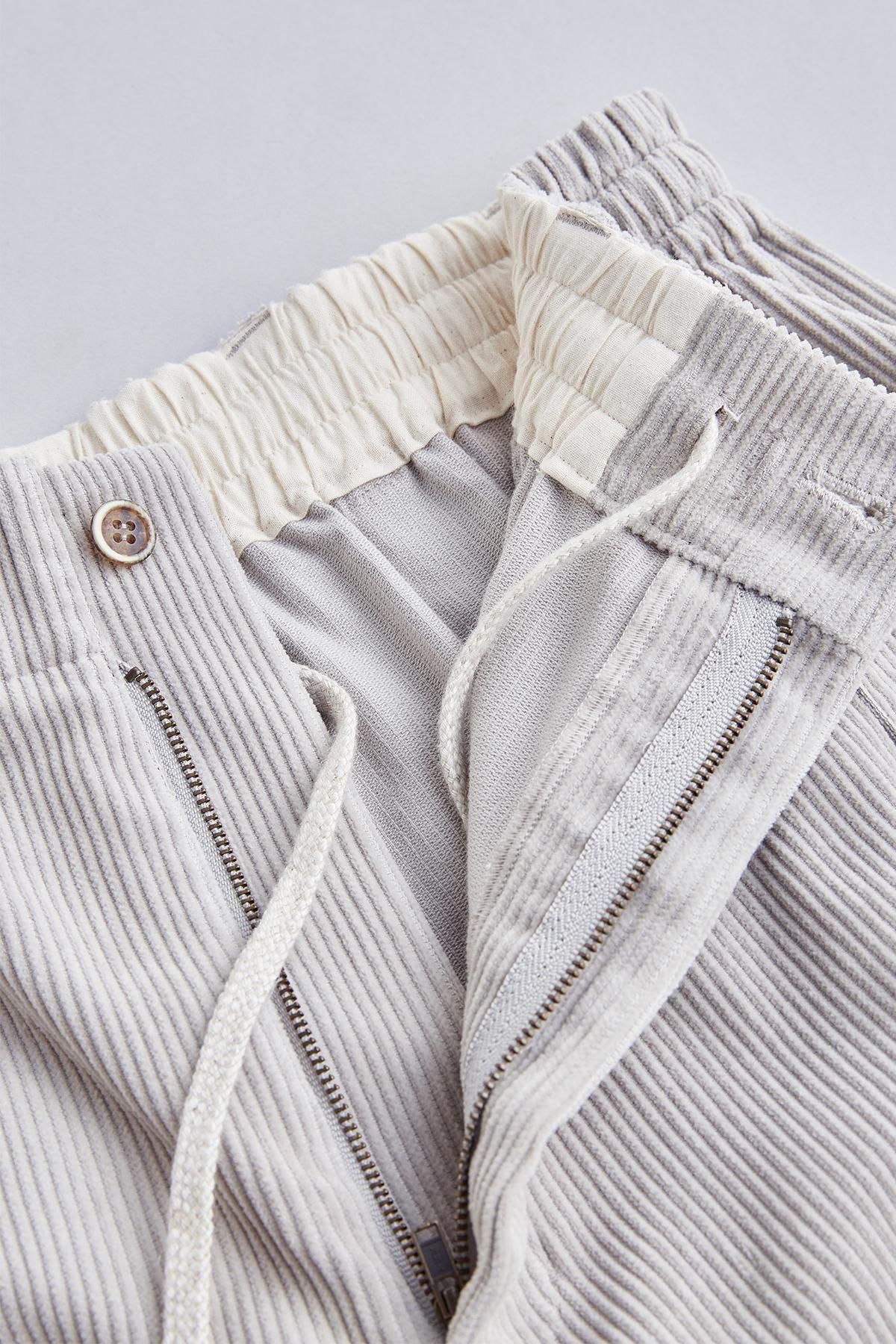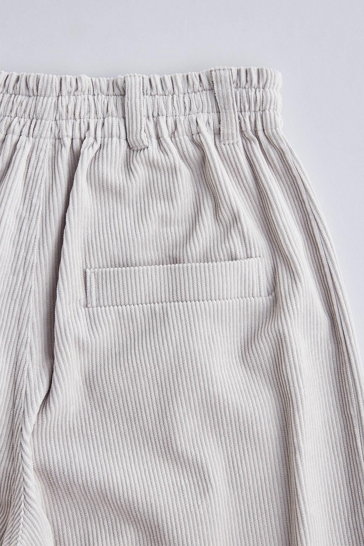 W(ウエスト)ゴム&調整可能な紐がついた、atelier naruse 定番のヒップから裾にかけて細くなるバルーン型のパンツ。こちらは、ここ数シーズン秋冬の定番として展開しているコーデュロイ(ワンウォッシュ)バージョンです。