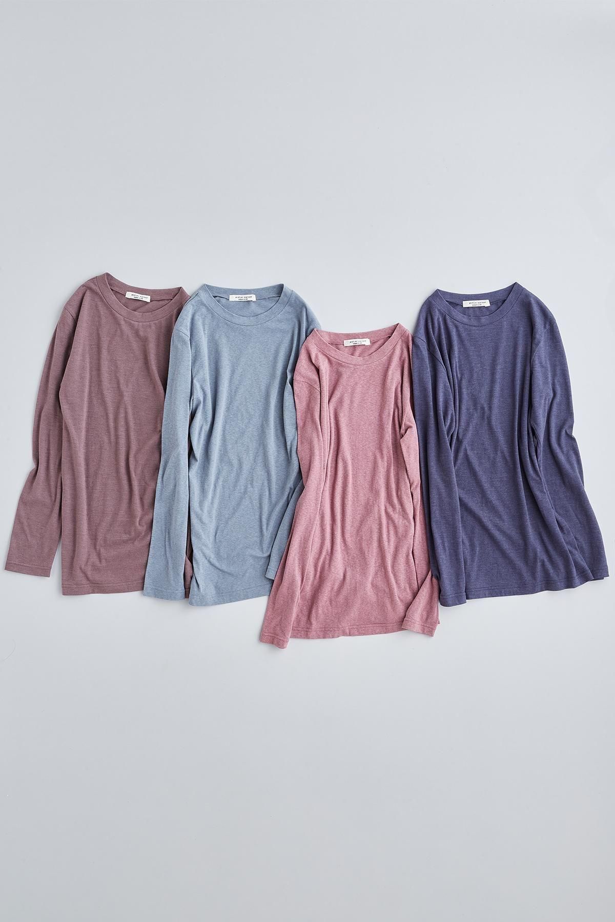・使用している生地は、マーブルソフト天竺のモダール混生地(※)。コットンよりも吸湿性が高く、また適度な伸縮性が生まれます。
